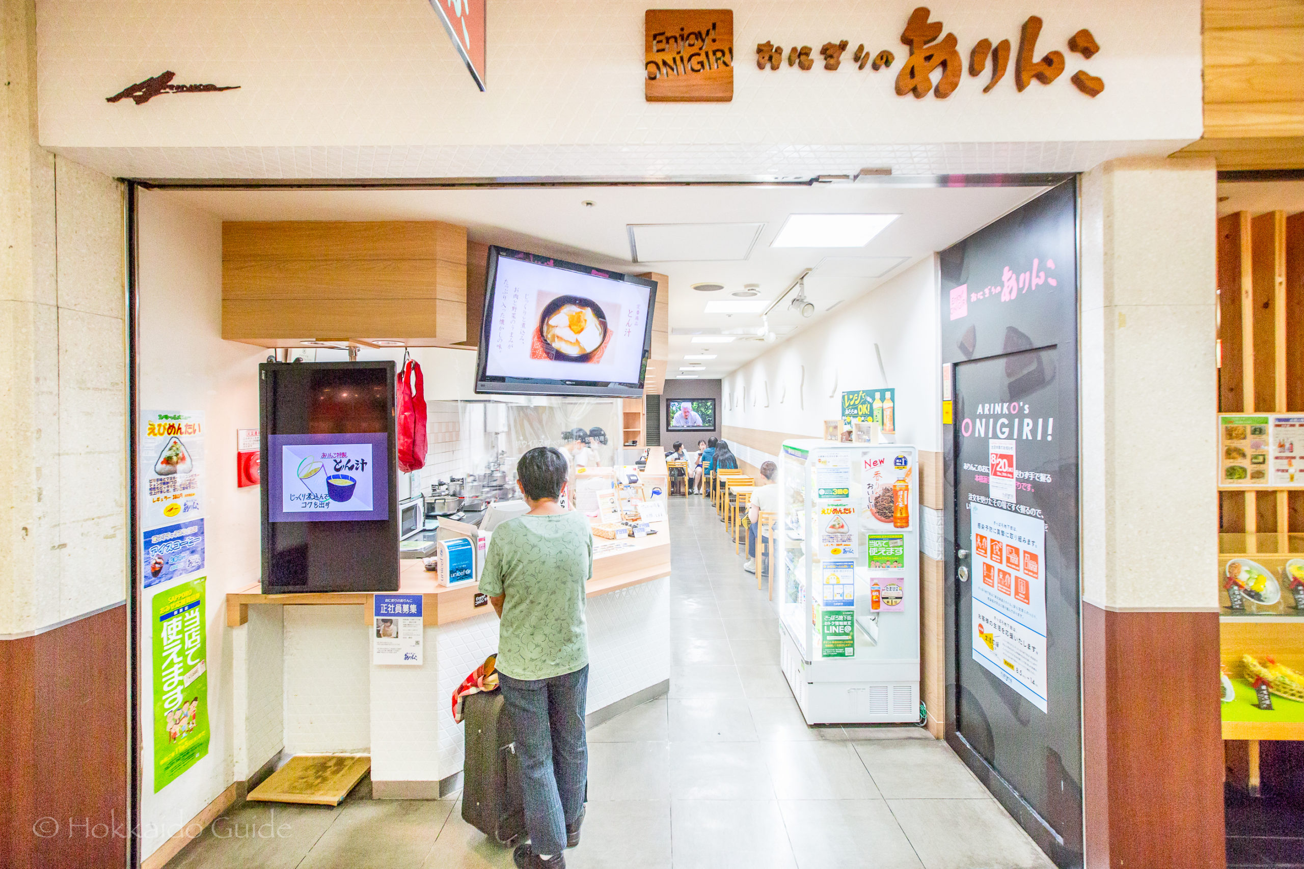 In the city of Sapporo, if you are in search of a quiet place to grab a quick bite to eat you can try out Arinko Onigiri. There are six Arinko shops in Sapporo. You can find them in popular spots such as Sapporo Station, the popular Sitatte, the Pole Town shopping walkway, or Aurora Town to name a few. An ‘Onigiri’ is simply a rice ball. It is steamed rice wrapped in dried seaweed (nori) and is usually molded into a triangle shape or oval shape. Within the center of the rice the onigiri has various fillings. Onigiri has an ancient history. It was during the Heian period (794-1185), balls of rice called tonjiki were eaten on picnics and while traveling. Onigiri was traditionally stuffed with umeboshi.
