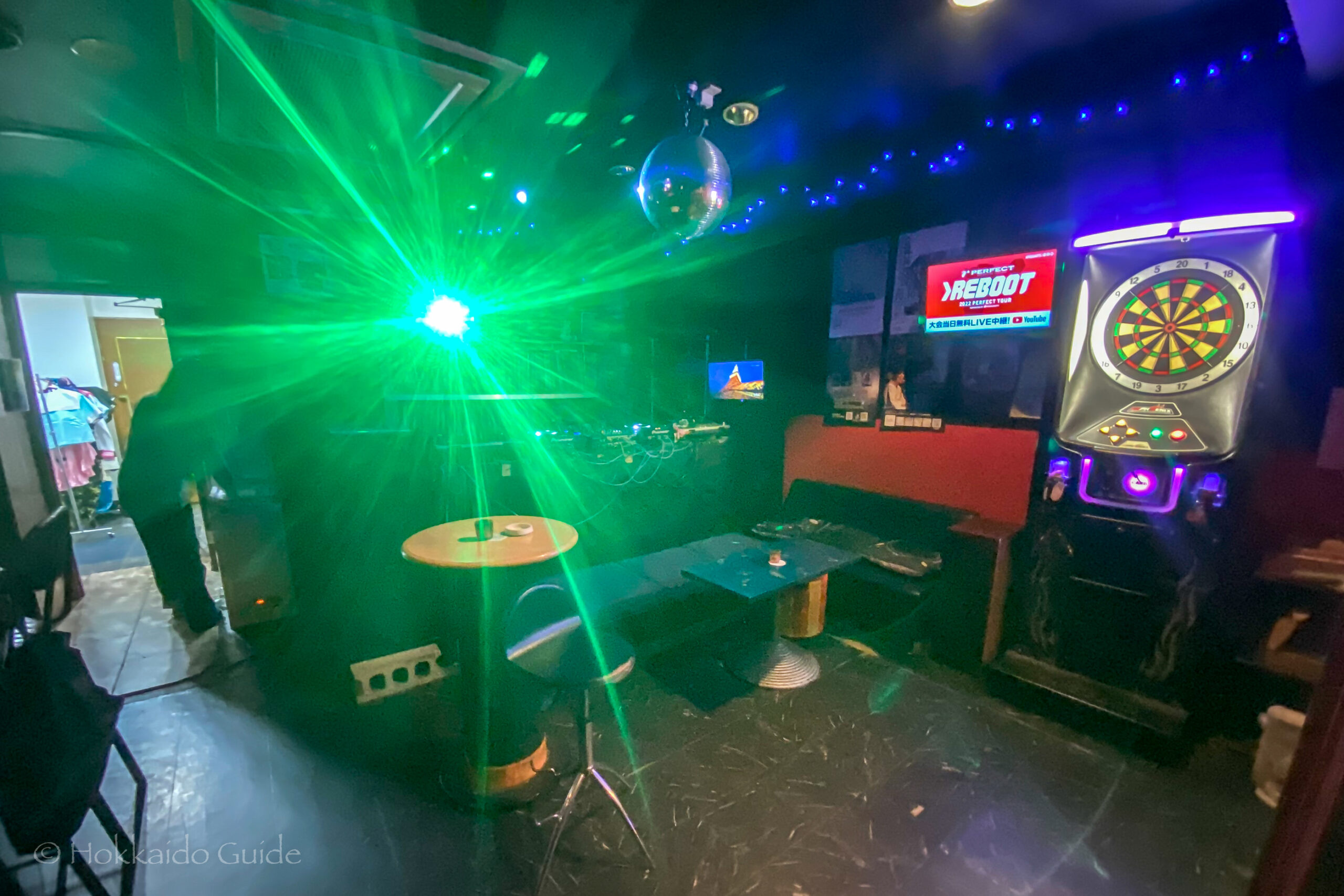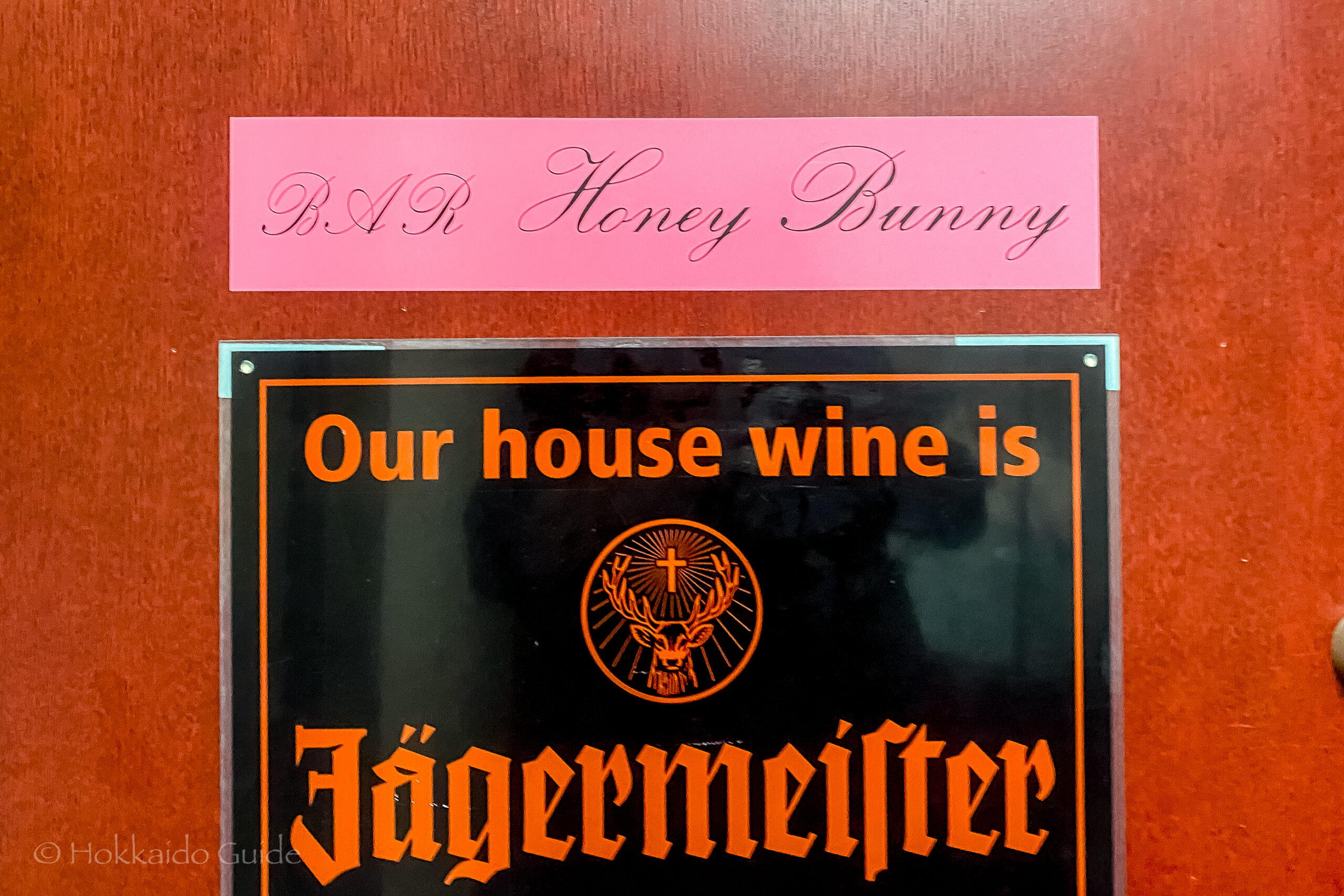 This bar is one of the many small bars that can be found scattered throughout Susukino, Sapporo. The bar is made up of a small seating area that can be turned into a very small event space, and a bright red counter top for the punters. It is a late night bar and hold live DJ events. Bar Honey Bunny doesn’t have a website so to find out when these events are, you will have to check them on social media. The ‘darts’ part of this bar is made up of one electronic darts board to the side of the bar. The sign out the front, “Our house wine is Jägermeister” sums up this bar perfectly. It’s kind of a random place that sees a lot of characters come through its doors. Jägermeister seems to be the shot of choice if you are thinking of doing shots (especially with the friendly bar owner).