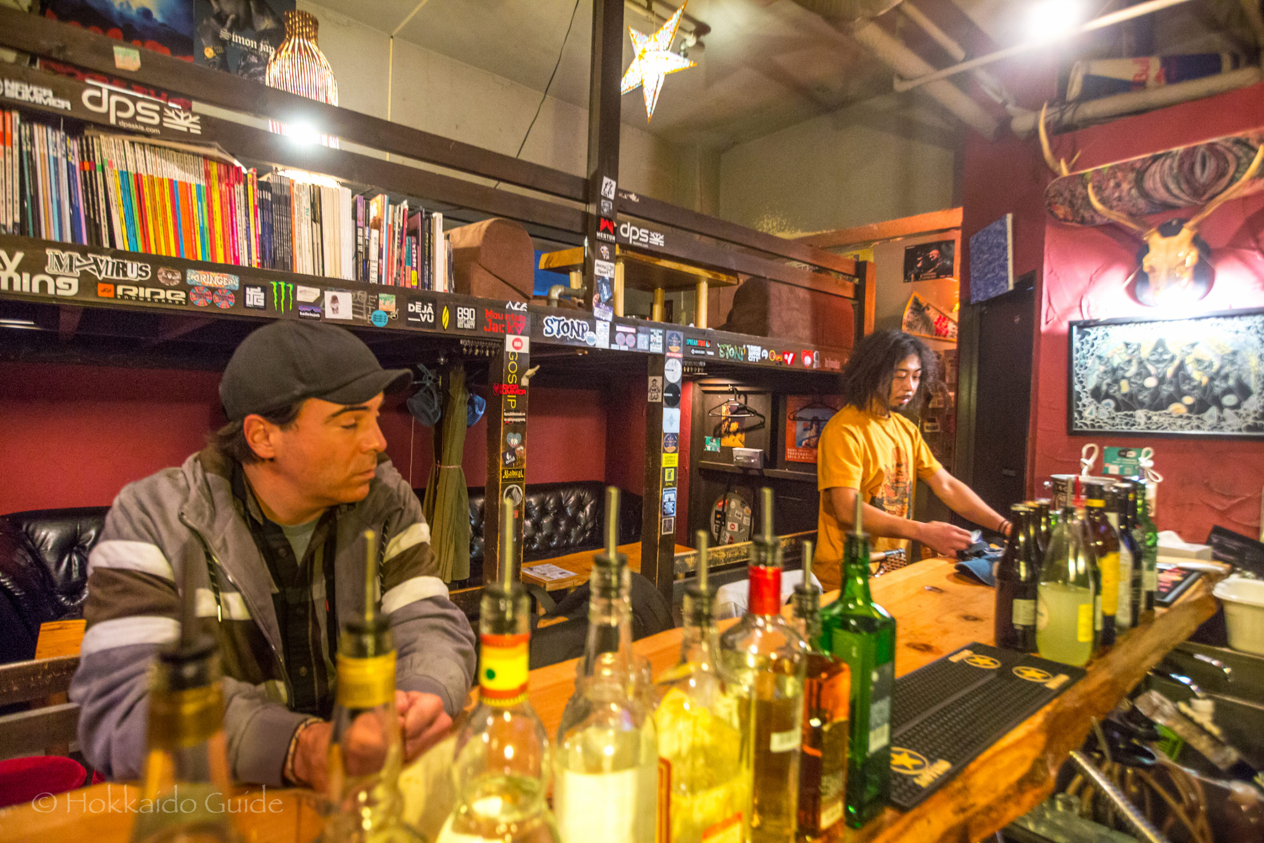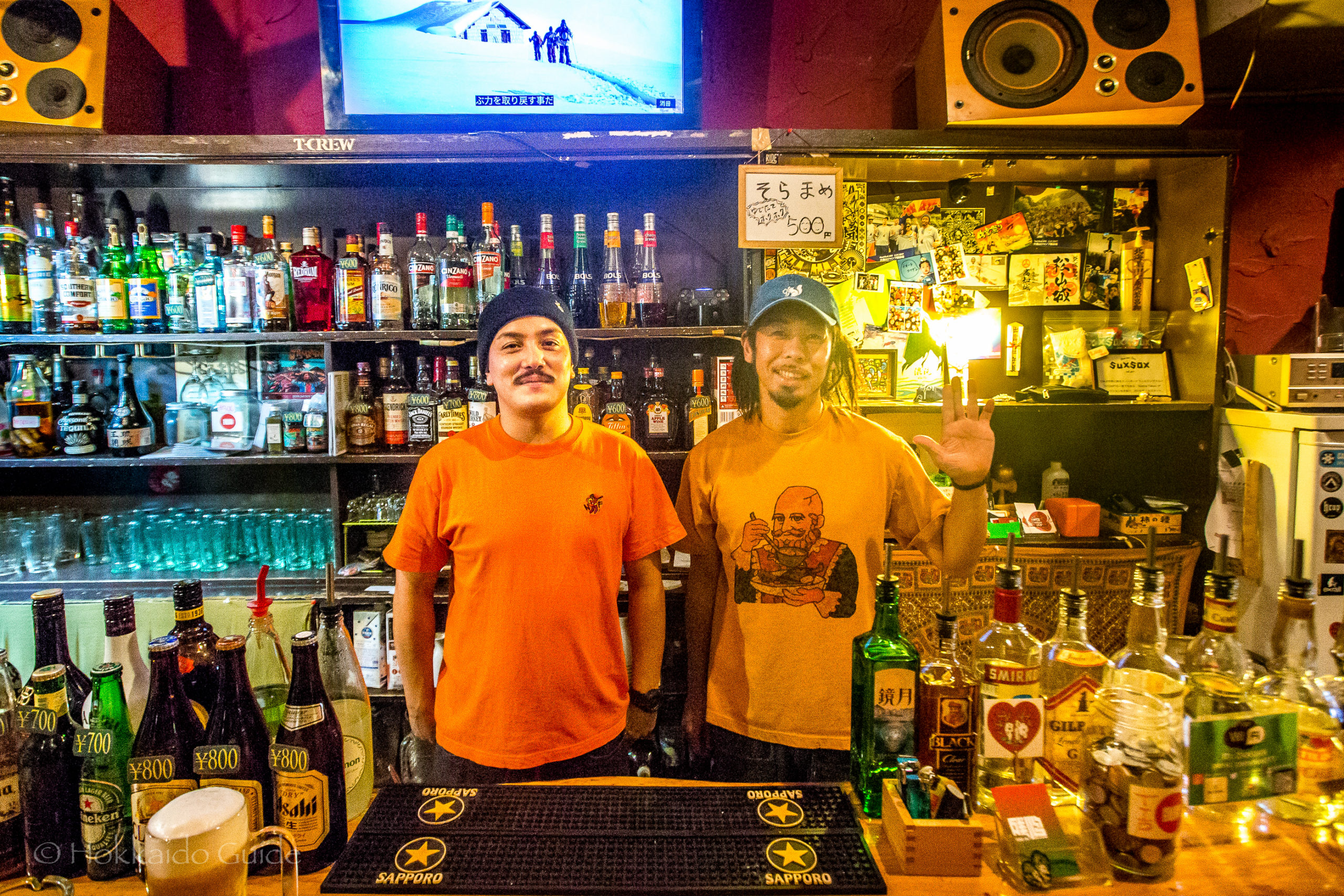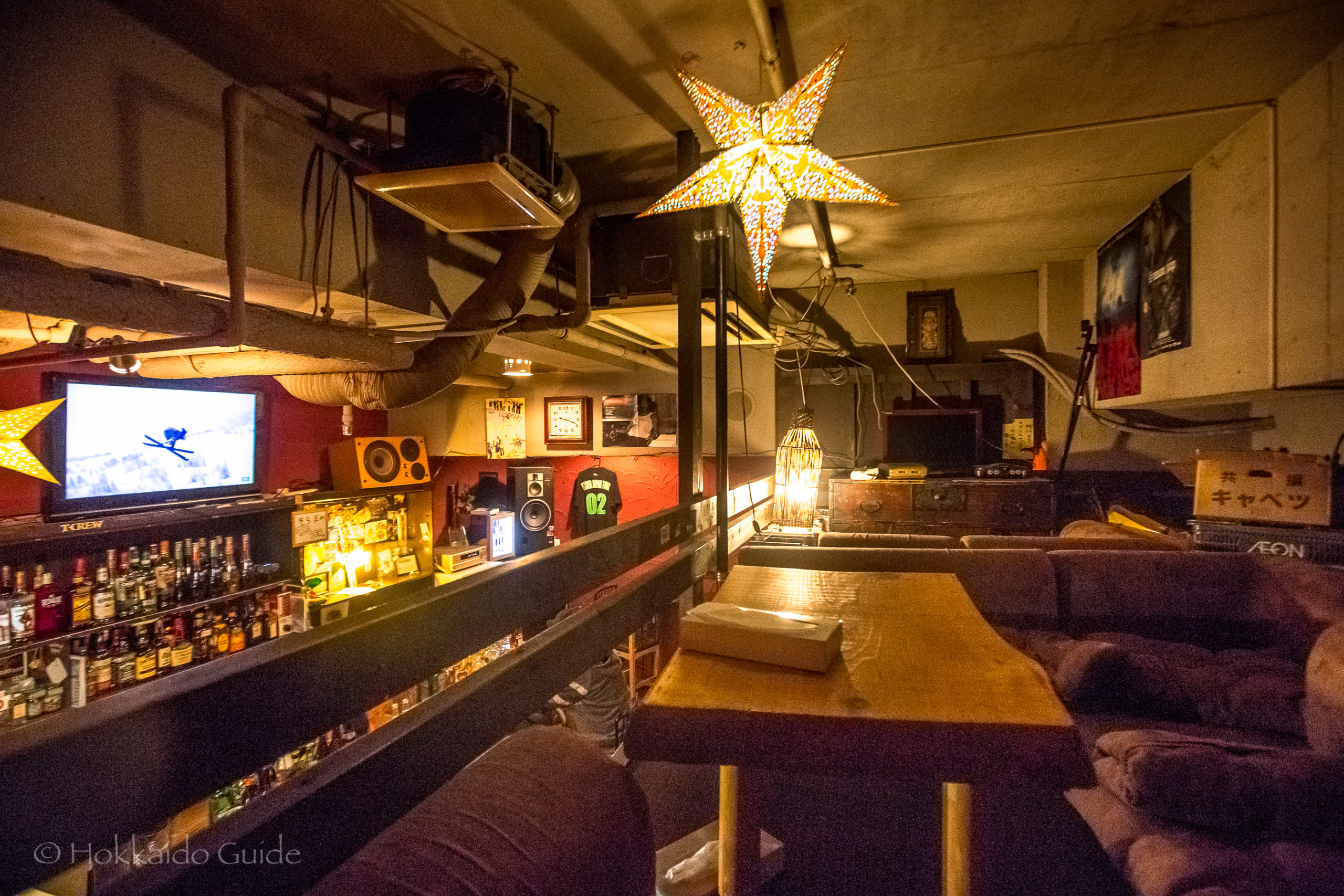 Zanshin is a cool little bar in Susukino, Sapporo. It is particularly well known to snowboarders, skiers, and skateboarders. The staff here are and were semi pro skiers and snowboarders and definitely bring friendliness and some wildness to the bar! The Sapporo classic here on tap is ¥500 a glass (a little cheaper than most places), and the cocktails are the same. A lot of the patrons are regulars and the atmosphere is very laid back and fun. There is some counter seating plus a couple of couches and tables fro larger groups.