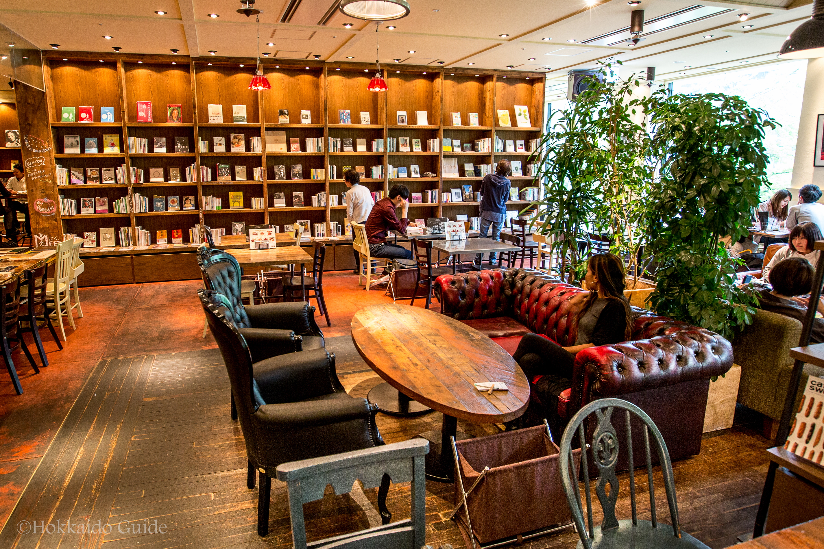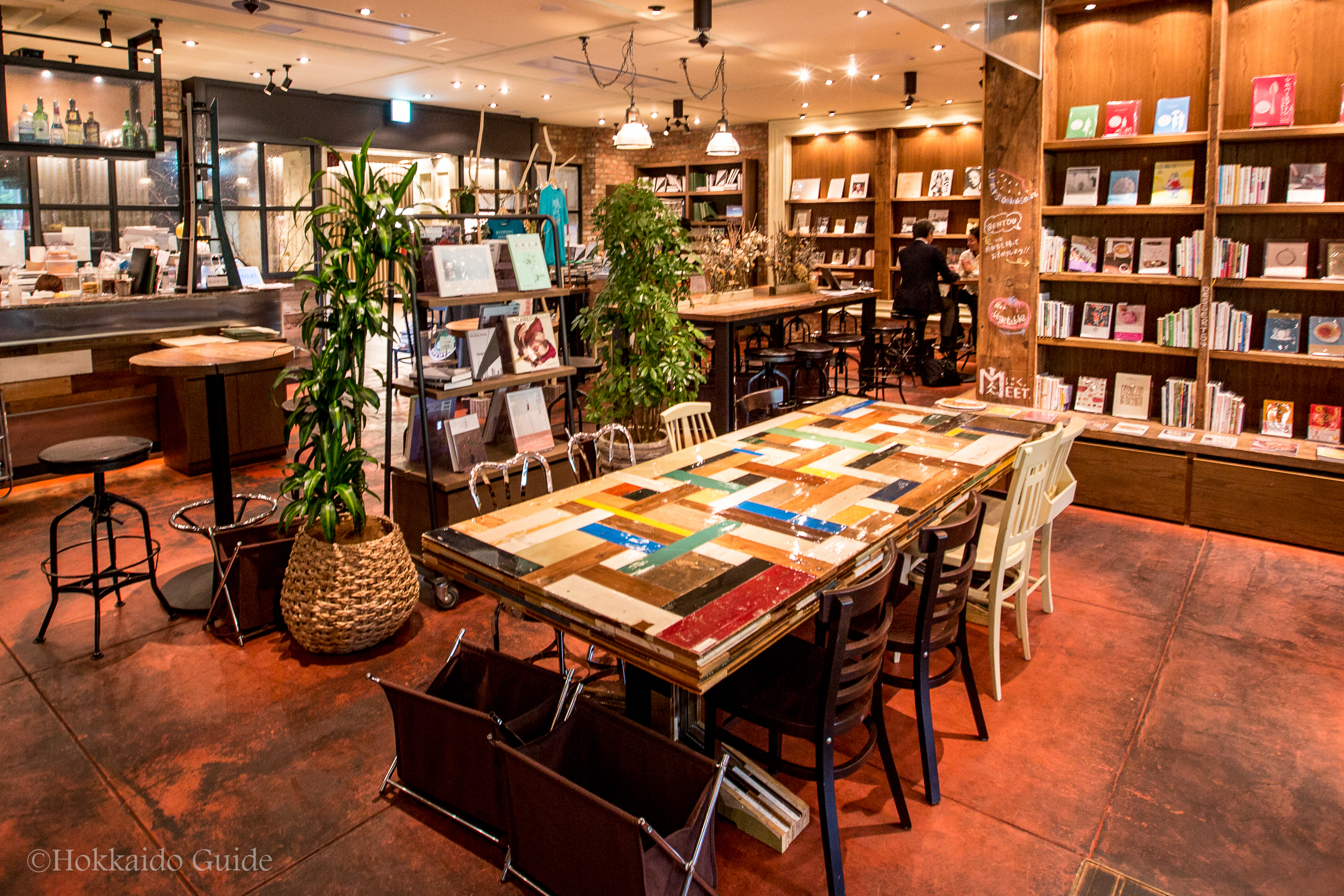 The interior design has all the trappings of a good book café back in the Big Apple, with funky tables and chairs, lots of plants and hundreds of books to thumb through at your leisure. Large windows provide a great view of the brick plaza leading up to the Douchou, the former Hokkaido capital building. Jazz music helps set the mood and on weekends local and out-of-town musicians perform on a small side stage.