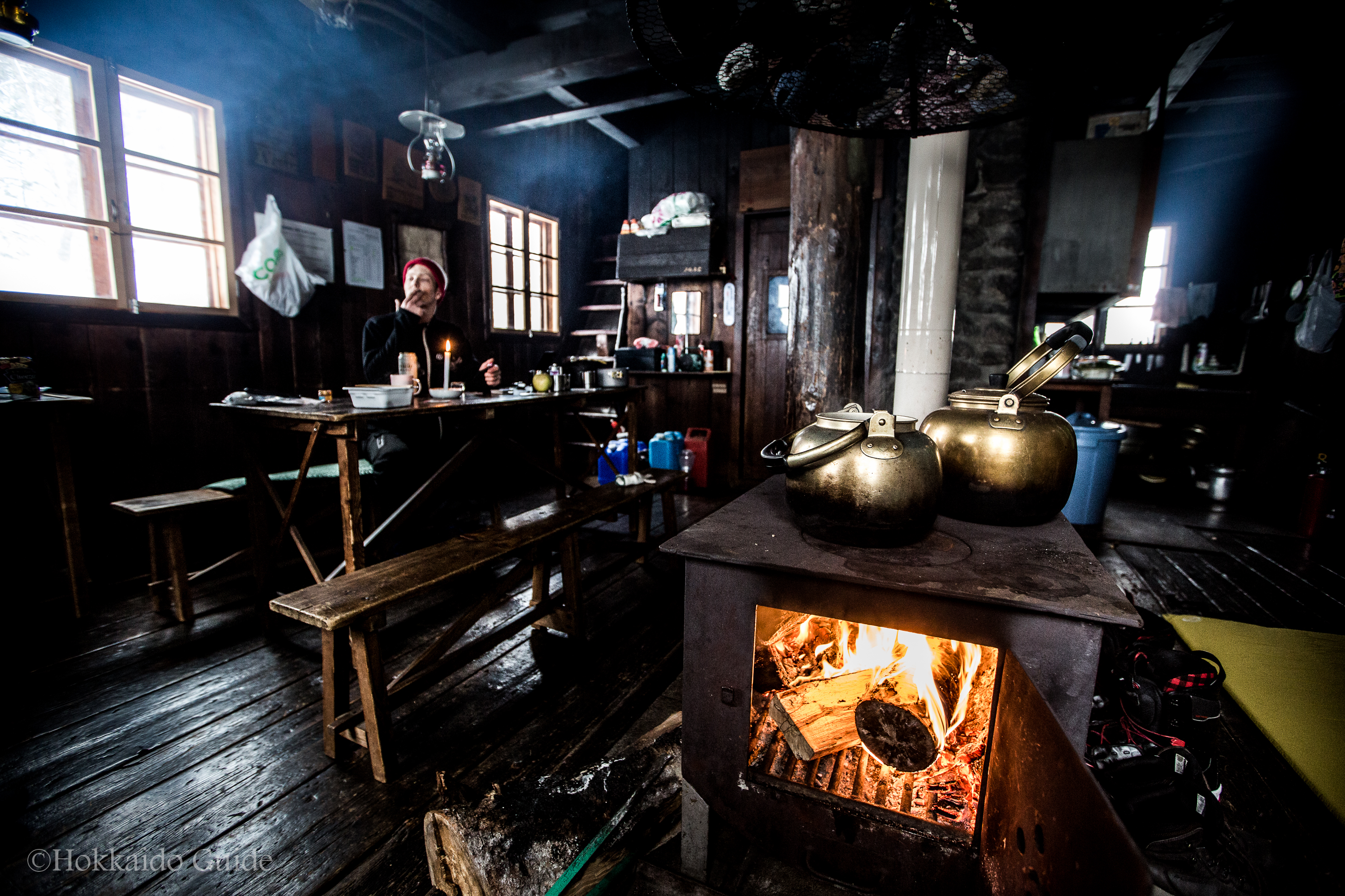 The hike can be done in a day but if you are looking for a weekend away, there is a cabin halfway up. The cabin is 2 stories and is decked out with a fireplace, a kitchen area with cups and cooking knives, tables, chairs, a toilet, and oil lamps. The cabin is sometimes locked, but if you are caught out in a blizzard or are in need of shelter the back windows are easy to open. The cabin, known as Hiyamizu Hut is looked after by a local resident and the firewood is constantly stocked up. If you do stay at the cabin then make sure you leave it clean and tidy for the next hikers!