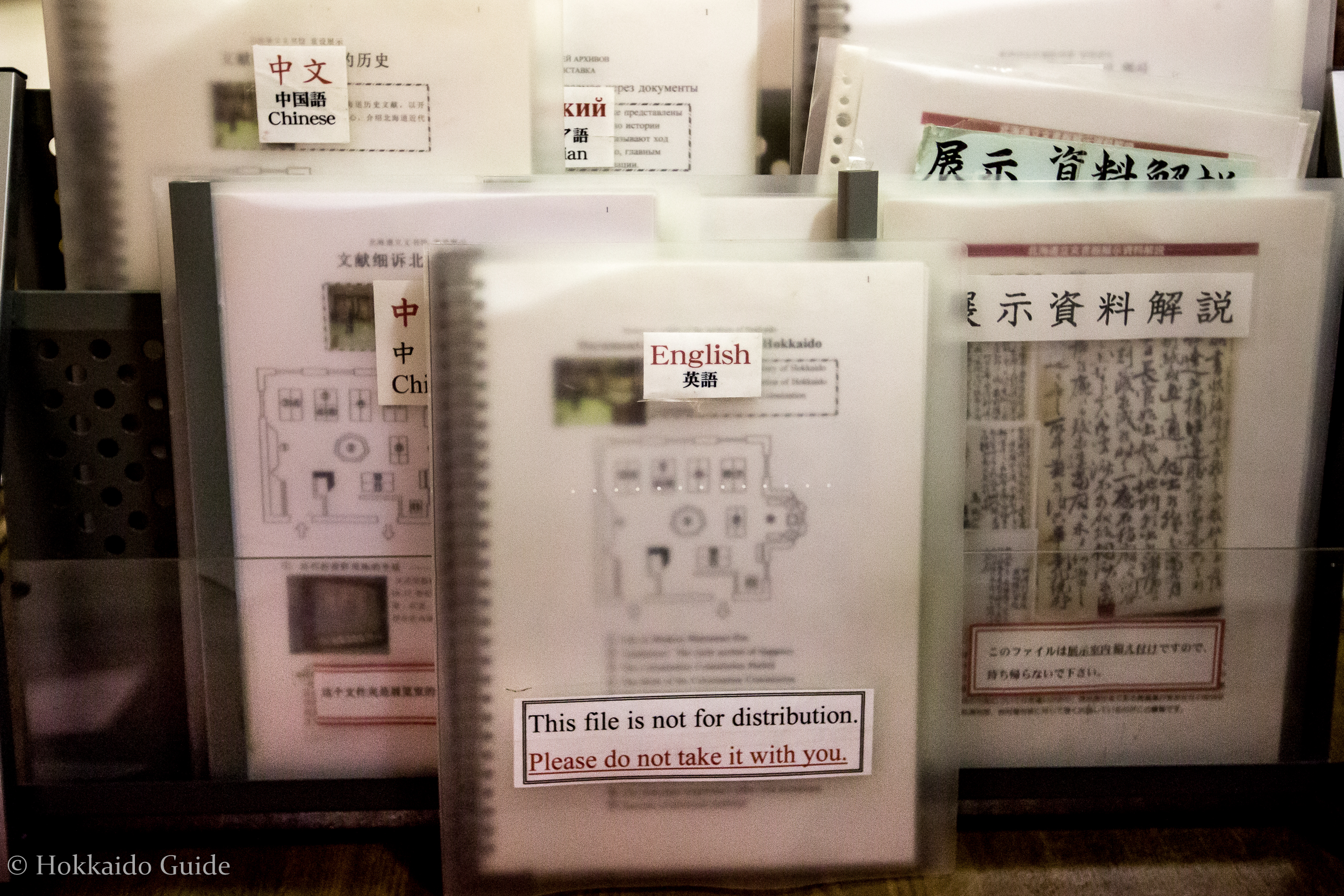 The exhibits are located on the 1st and 2nd floors. The information panels are all in Japanese but there are folders located that are translated into various languages such as English, Chinese, and Thai. They show information on the history of Sapporo, with models, photos and items from that era.