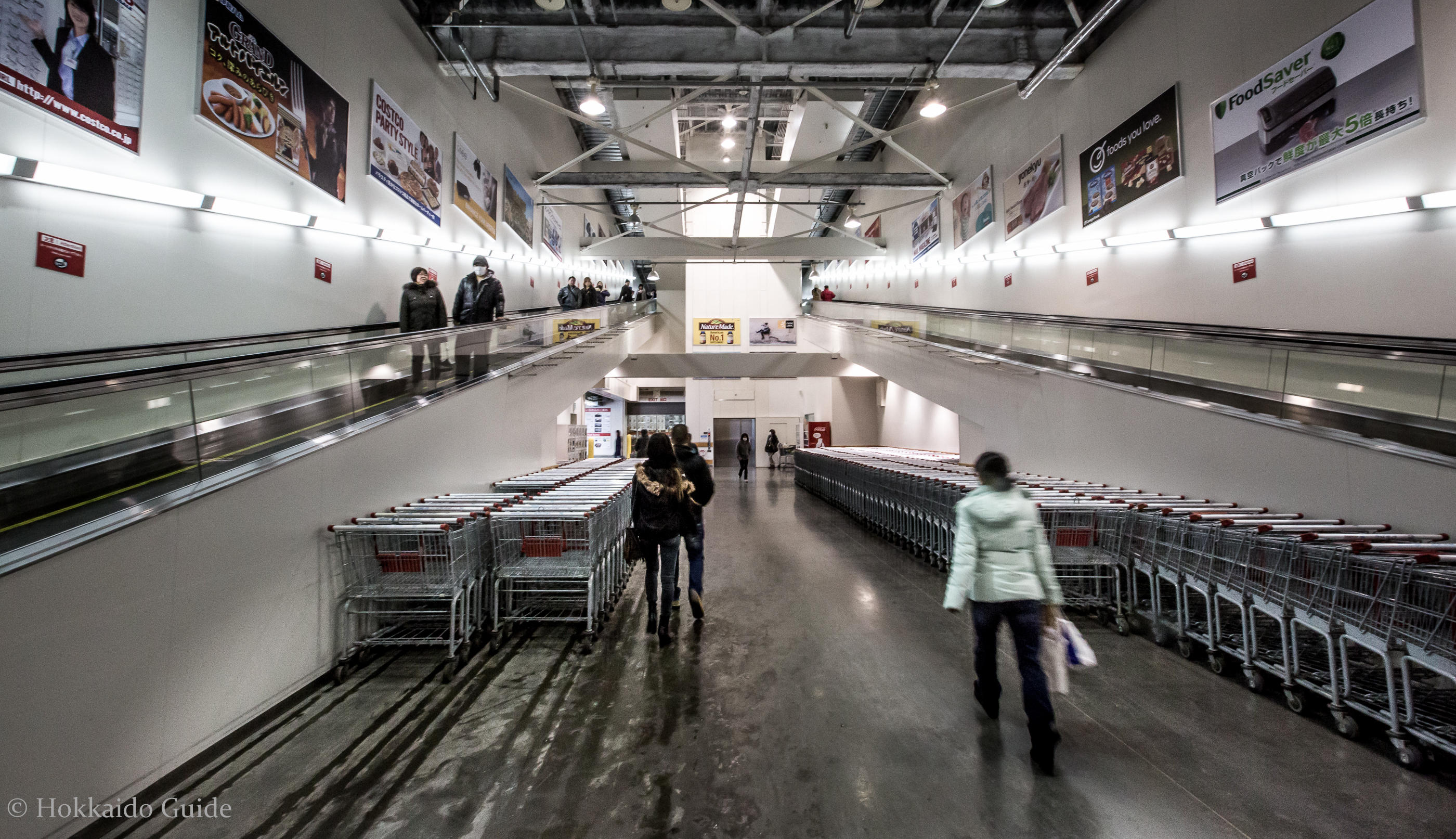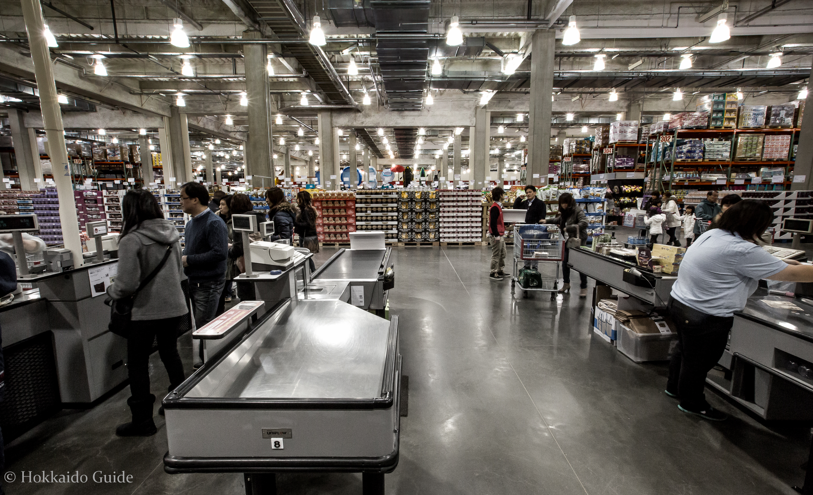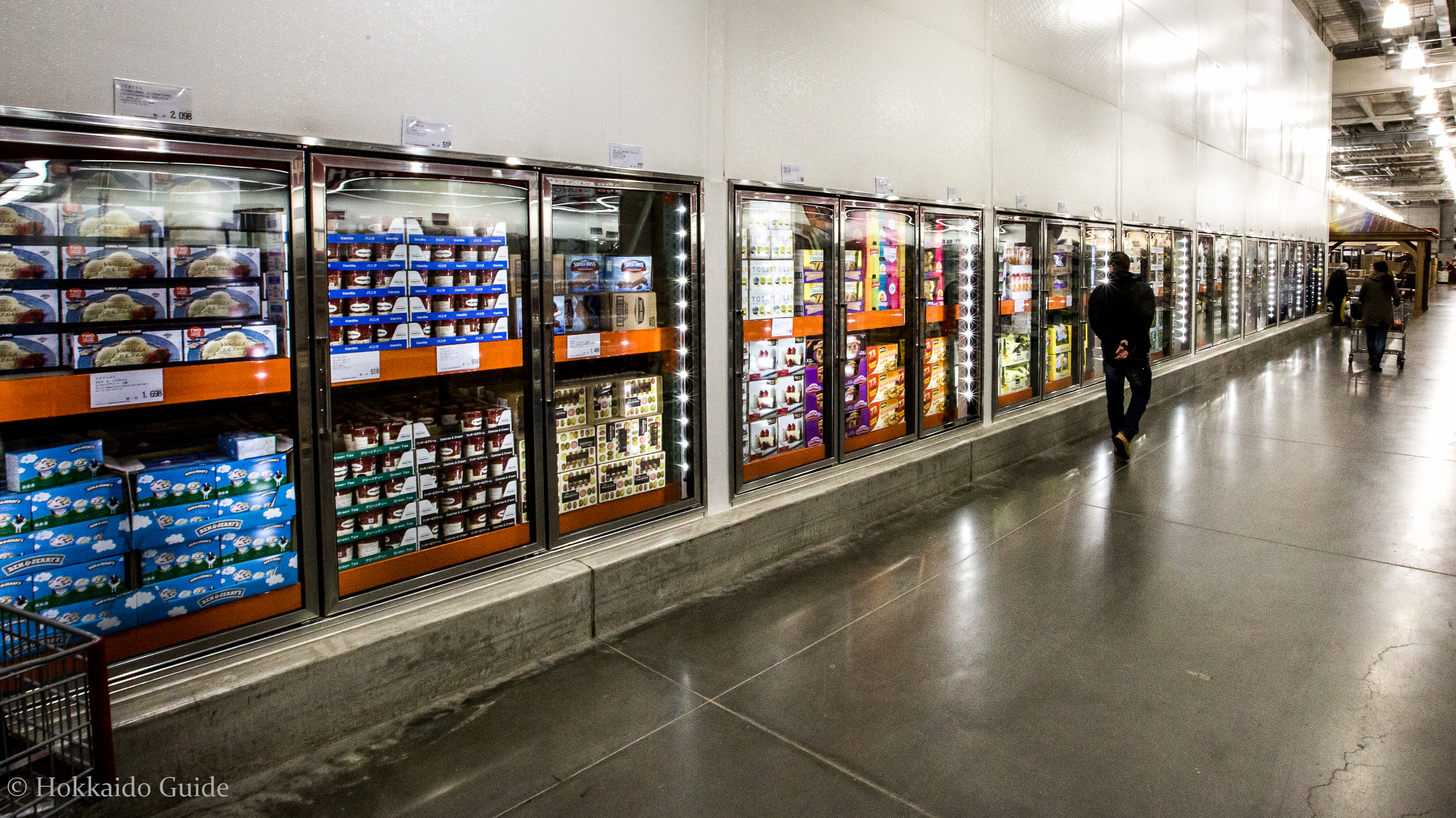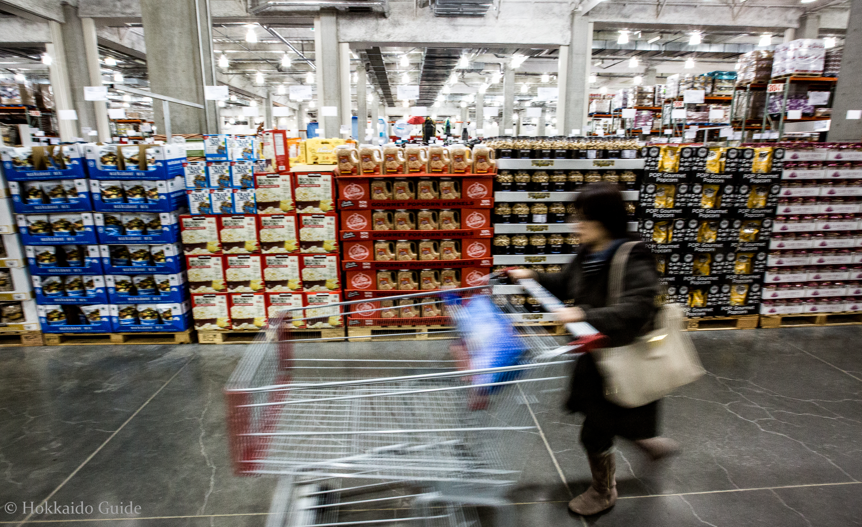 The well known U.S warehouse retail branch first opened up its first branch in Japan in 1999 and now has 24 locations nationwide. Hokkaido’s first and currently only Costco hit the scene in 2008 and has been very popular, especially among restauranteurs and expats looking for a little taste of home. Costco has it all. It is basically a warehouse size supermarket selling food in bulk at cheap rates. Consumers generally frequent Costco for its range of produce. It has a large vegetable and fruit section. Its meat section contains large cuts of steaks. Most Japanese supermarkets meat sections don’t stock thick steaks so Costco is a welcome establishment to the city of Sapporo. Roasted chickens are also made hourly and are well worth the 800 yen. You name it, Costco has it…..in BULK! Pork, sausages, frozen foods, dairy, blocks of cheese, seafood, huge pizzas, sushi, pallets of coffee, cereals, condiments, chocolates, pastas, sauces, juices, wines from all over, beer, spirits and more! Simply pile it all into the giant shopping trolleys!