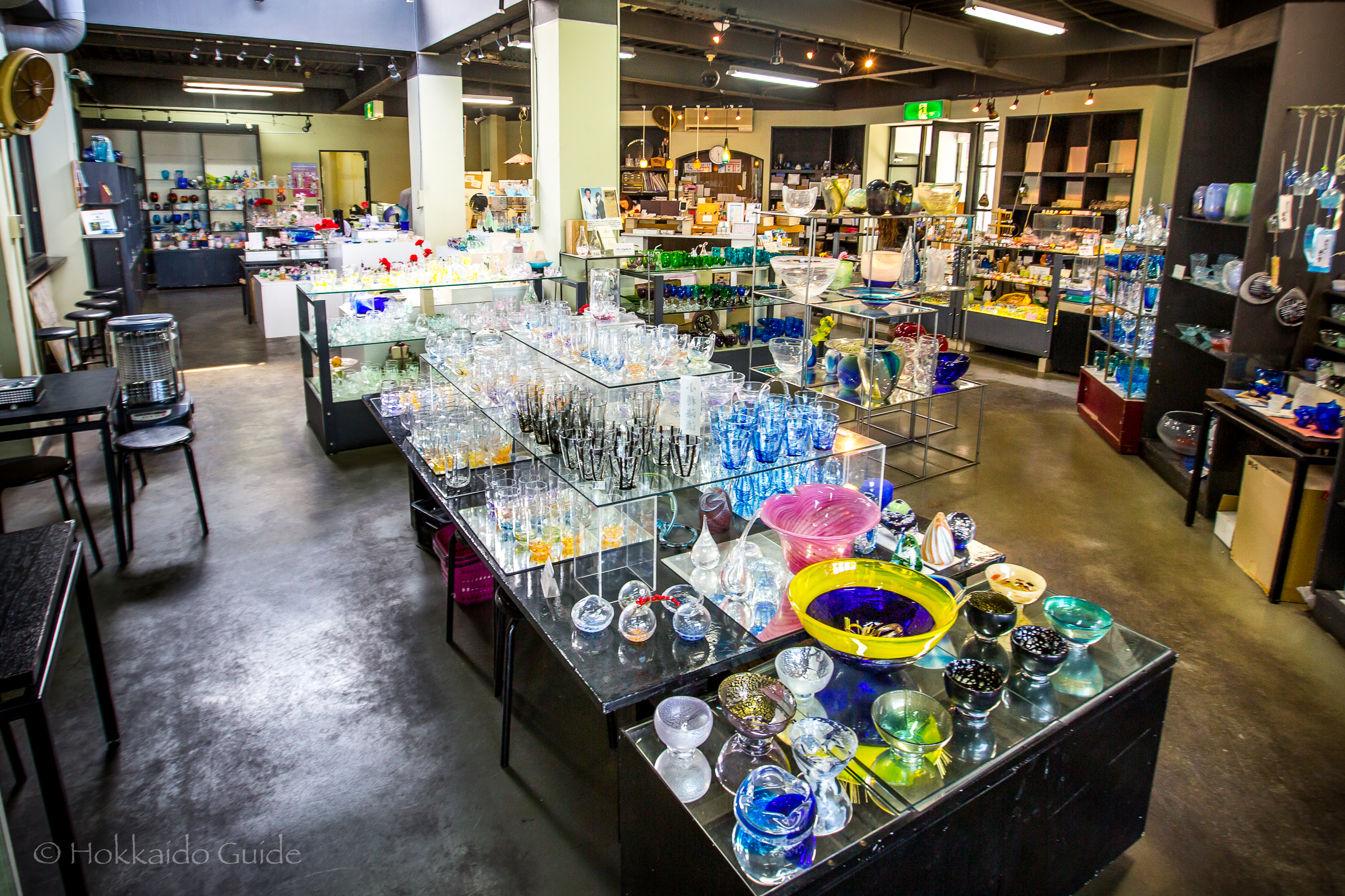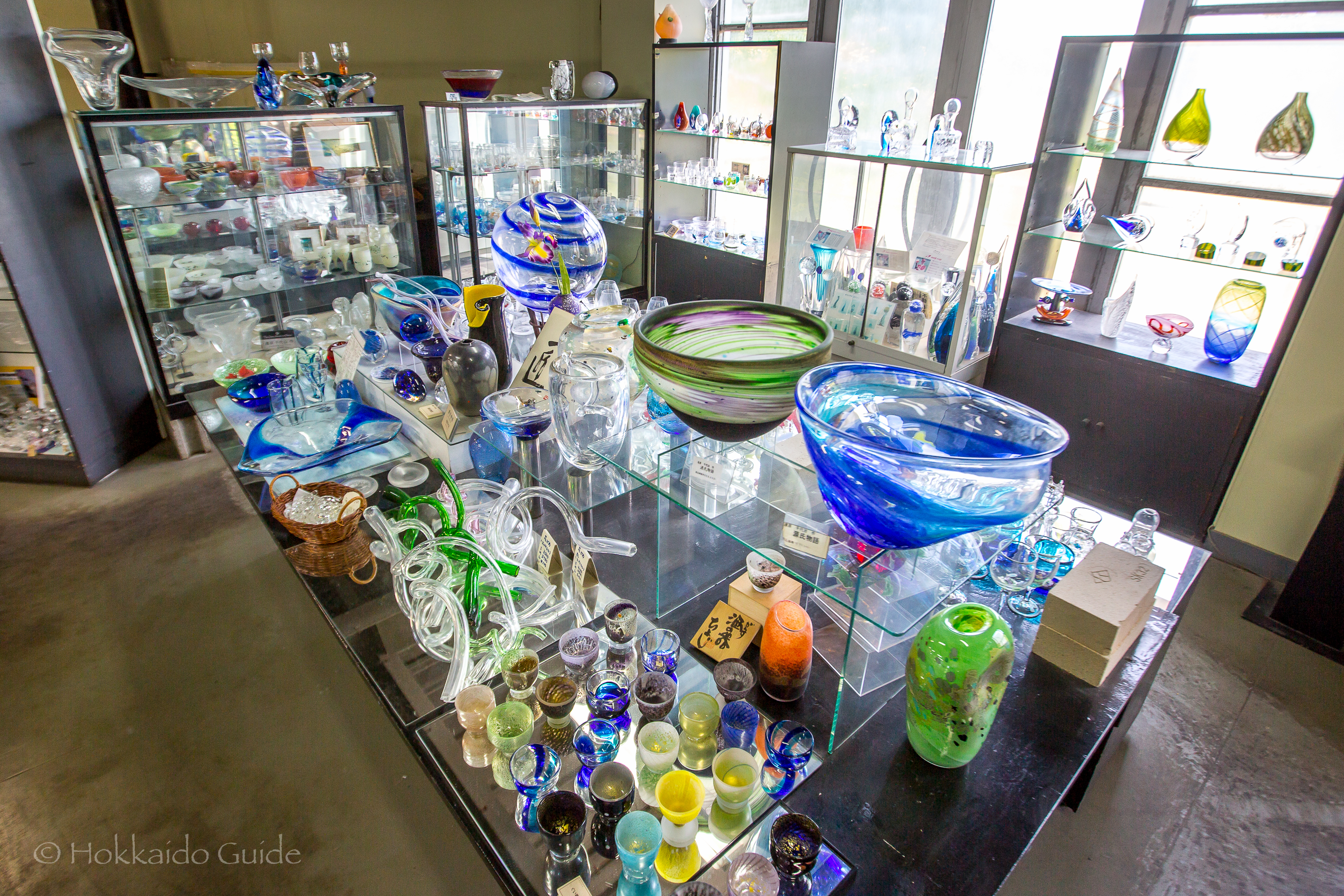 Glass Studio in Otaru consists of two floors. The first floor is a large space that is full of wares, that have been expertly crafted in the studio. It is here that you can purchase these glass ornaments. They make for a great gift or a souvenir to take home. The ground floor is where the studio is located, and is available for viewing. It is here, in the heat of the furnaces, you can see the glass makers creating their work. It is fascinating to watch them spin, heat and mould their creations. It is just a short walk from the bus station, so drop in and take a look!