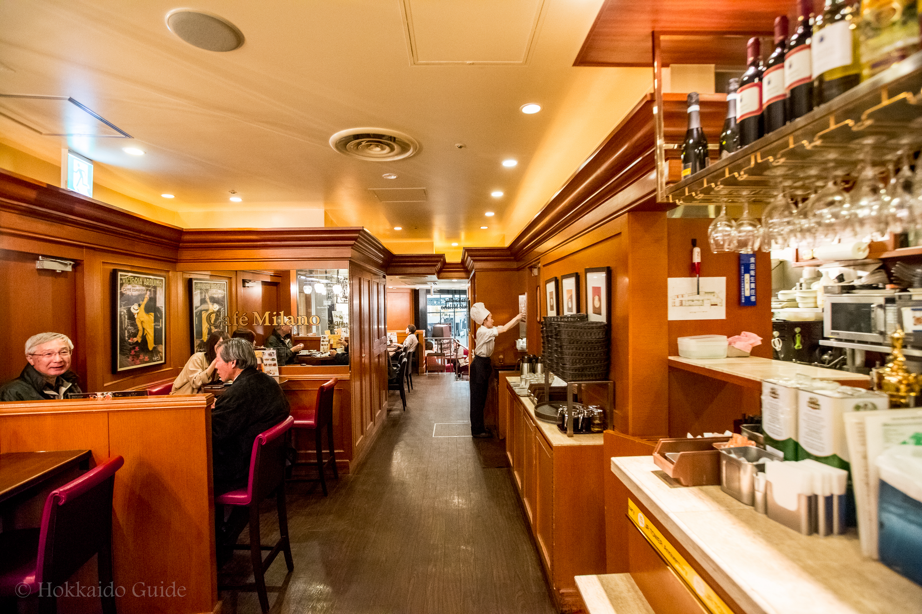 And for dinner, there is a good choice of beer and wine that will compliment any Italian dish, with a choice of ten kinds of spaghetti dishes to choose from. Italian Bar Café Milano also has a sausage based pizza and antipasto from which to select a delicious appetizer. For those with a sweet tooth, you can enjoy cakes or baked confectionary to go with a tea or coffee. This restaurant has an English menu and the staff do their best to communicate in English if needed.