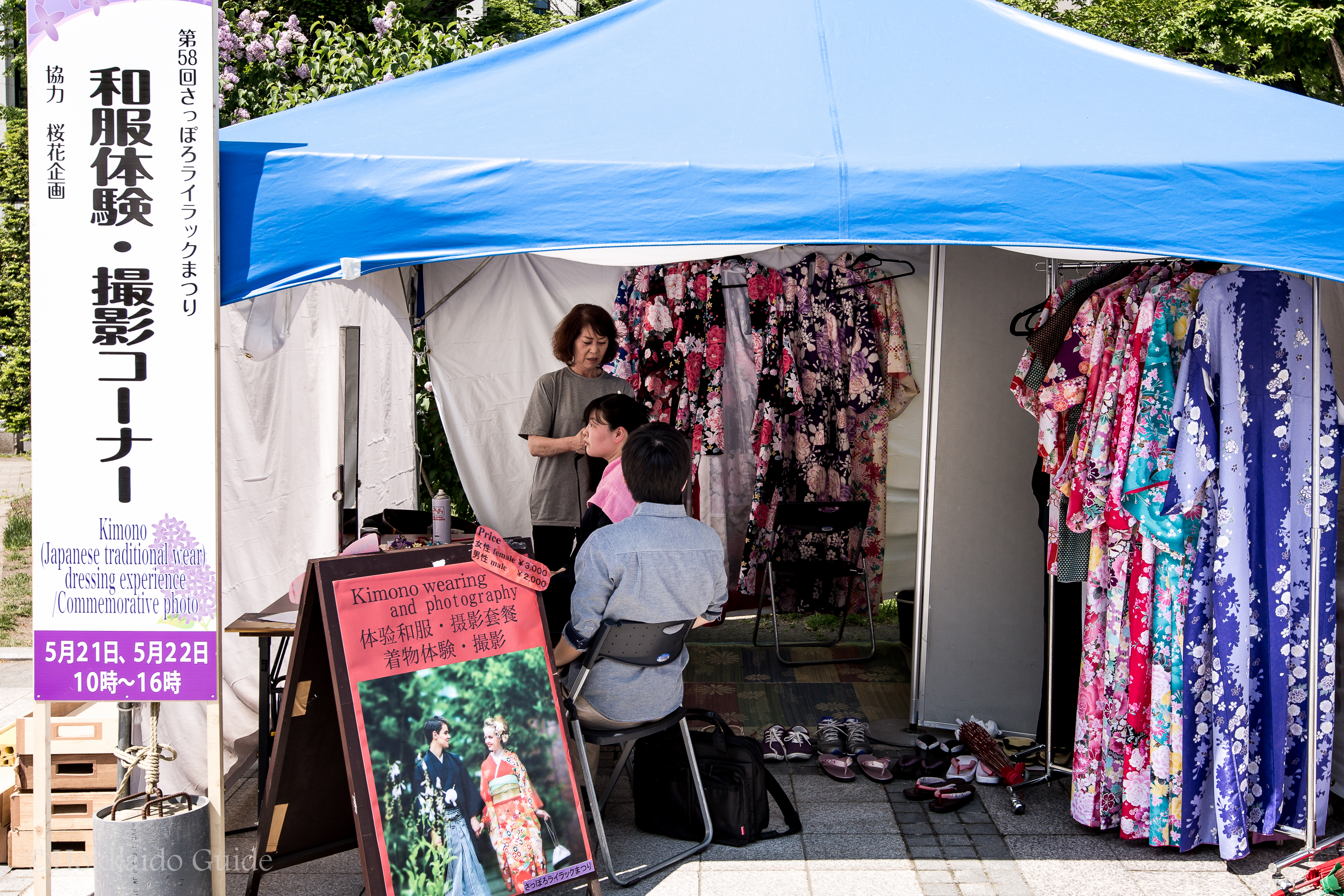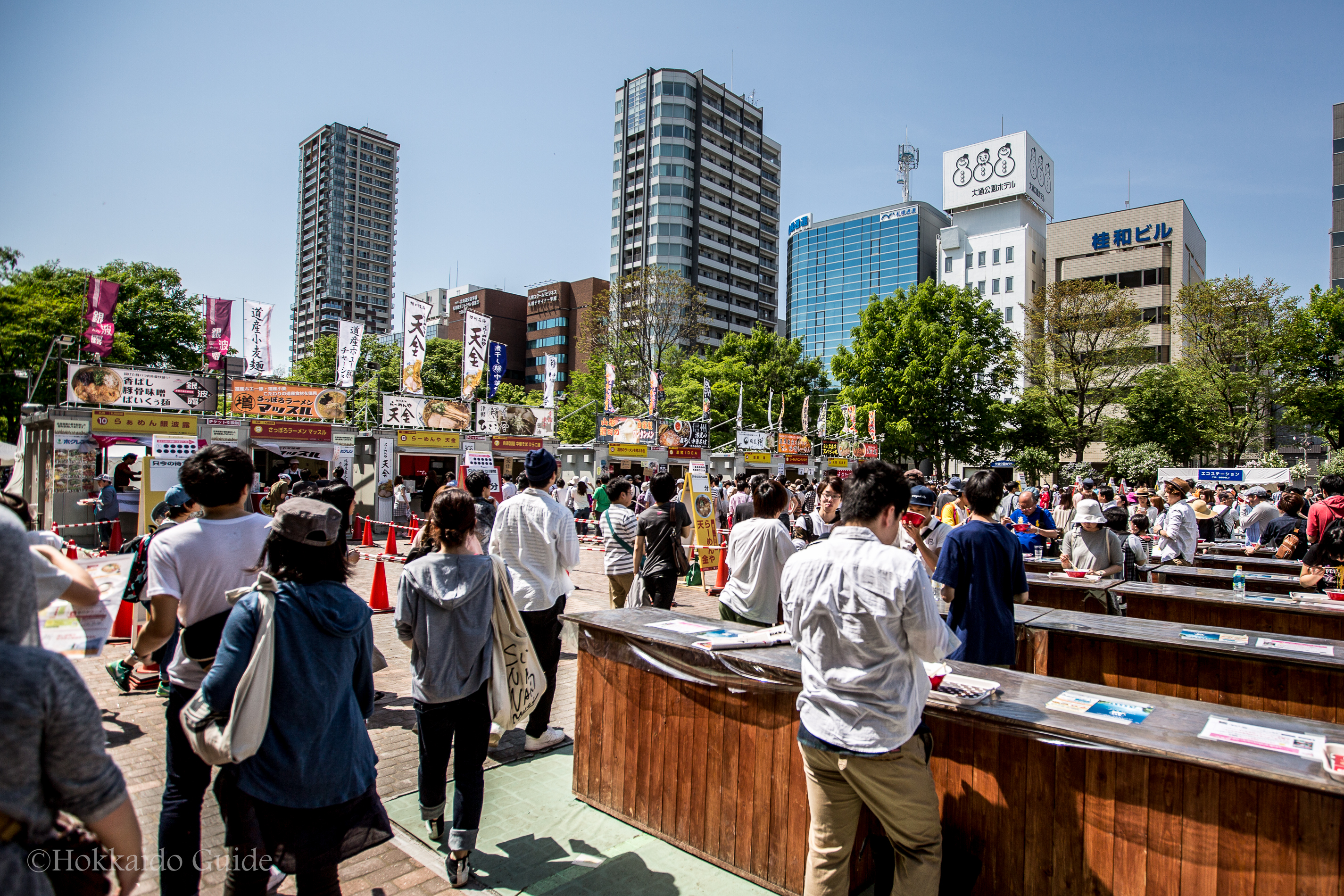 Odori Park is the main attraction and its recommended to check out the 3 blocks of festivities here first. There is a variety of attractions you can enjoy while strolling around the park, such as the “Wine Garden 2016 Lilas Mariages” where you can sample wines from wineries from about 23 areas of Hokkaido in the spring weather. There are a large assortment of places to eat, though be warned, it gets crowded! There are also hands-on activities such as the origami classroom and the Hokkaido wheat straw ornament-making experience.