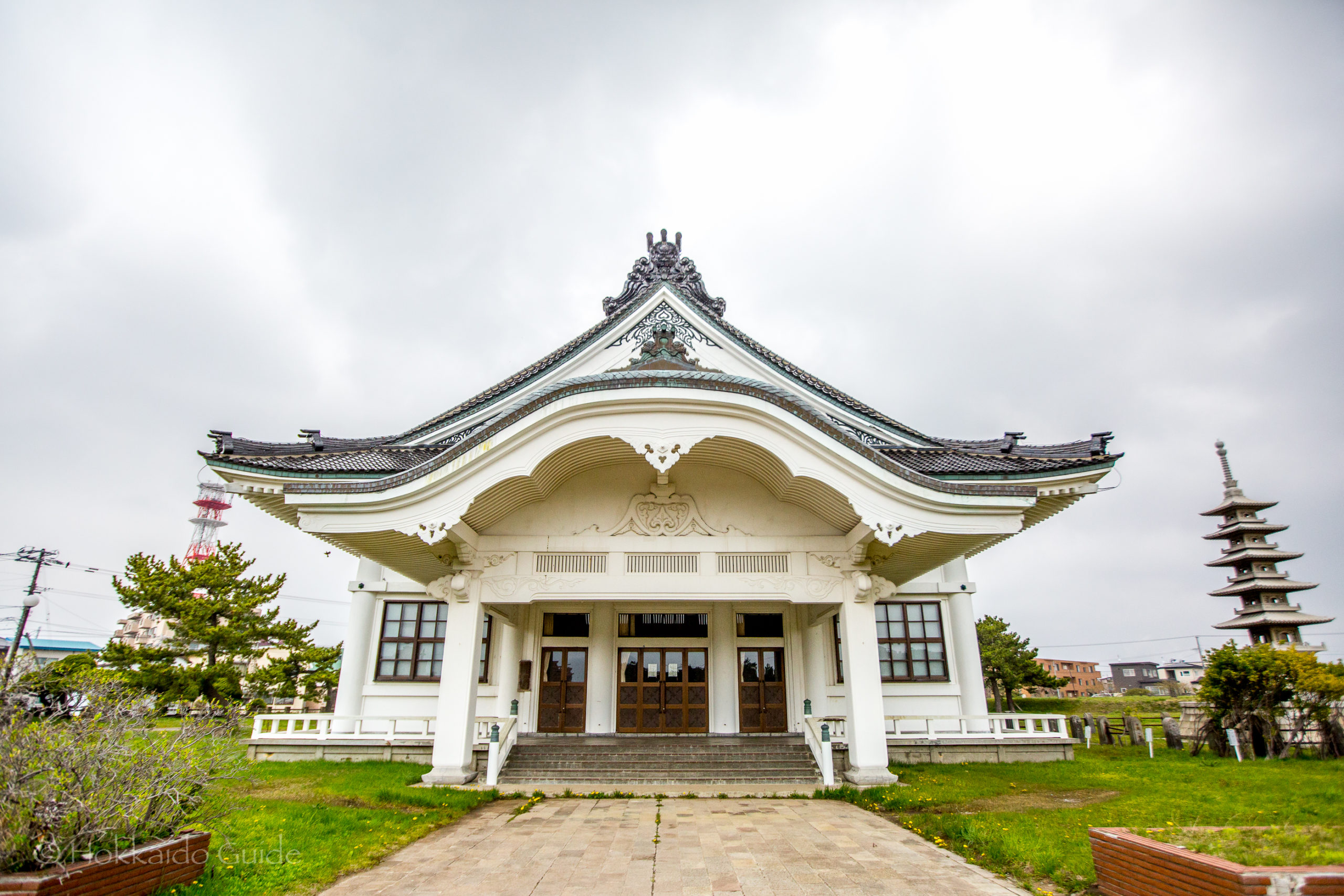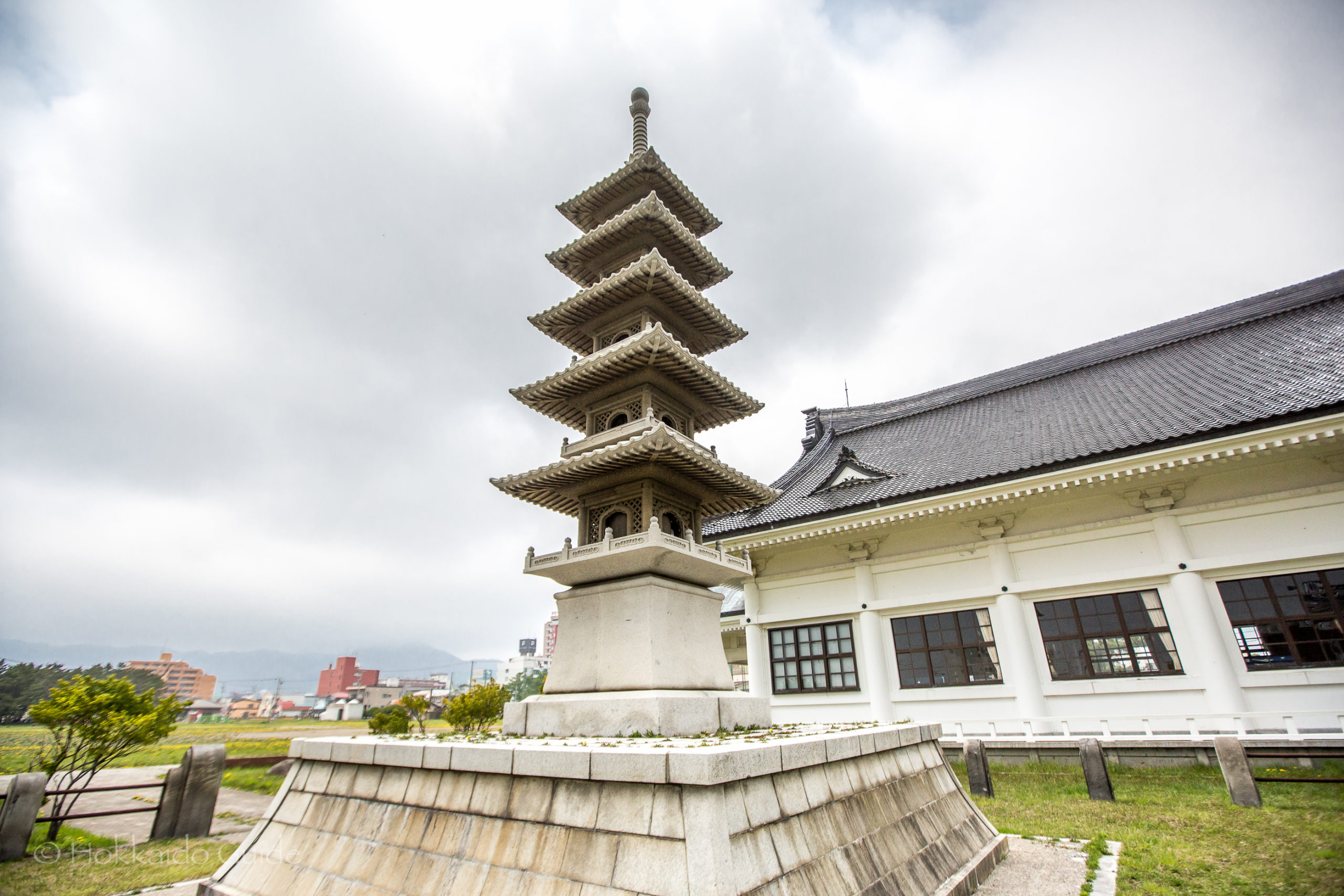 The memorial hall was constructed in 1937 with the five tier pagoda being built later. Takenosuke Miyamoto (a local businessman), was behind the construction of the pagoda using his own funds and property. The area has some historical significance and there is a large plaque (in Japanese), talking about the dark event that took place here many years ago. On the evening of March 21, 1954 a fire spread through the city and was fanned by strong winds from the ocean. The fire affected 102,000 with almost 3,000 reported missing. The Omori Bridge was terribly burned and many people were killed in and along the Kameda River. This river flows right by the memorial hall and pagoda.