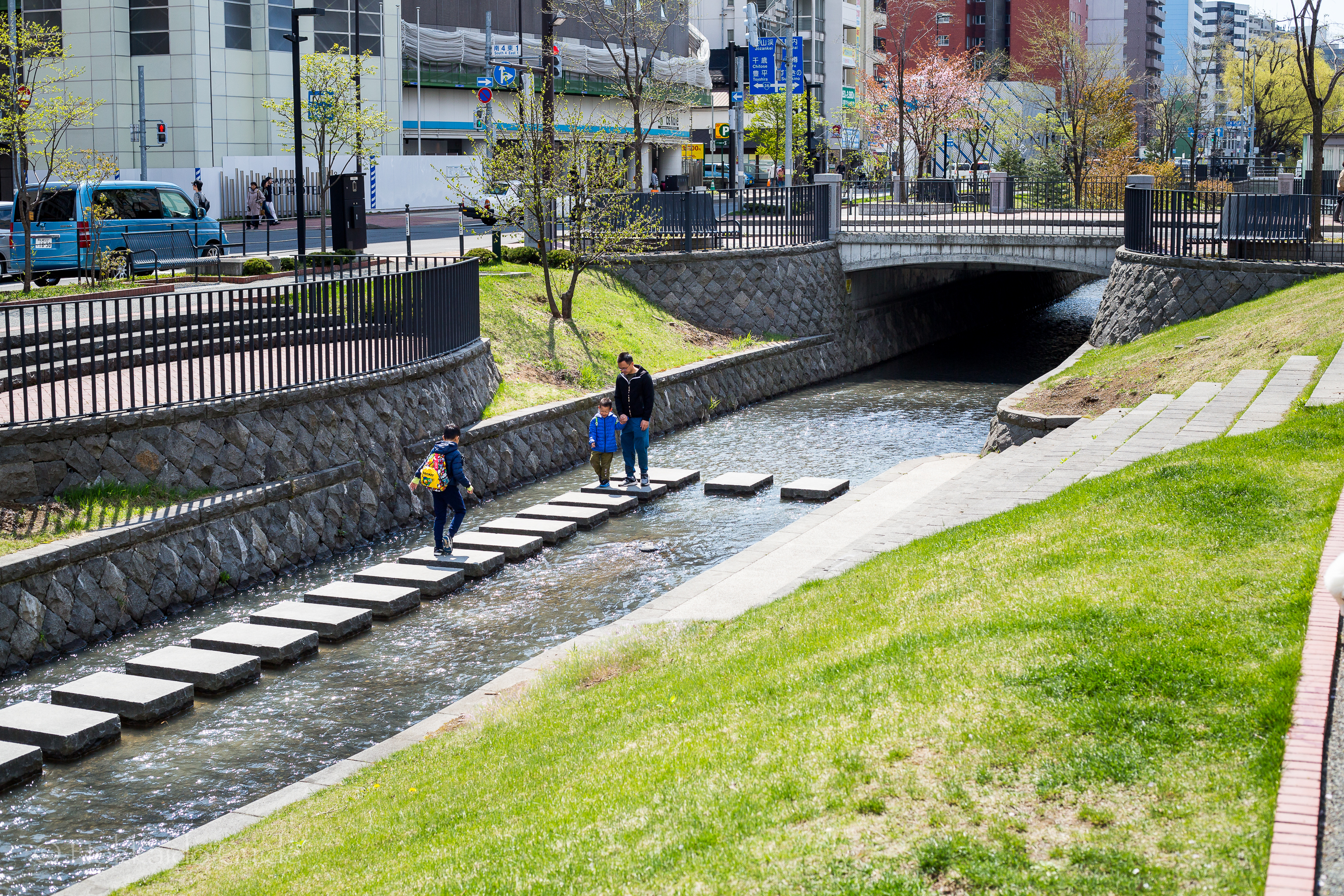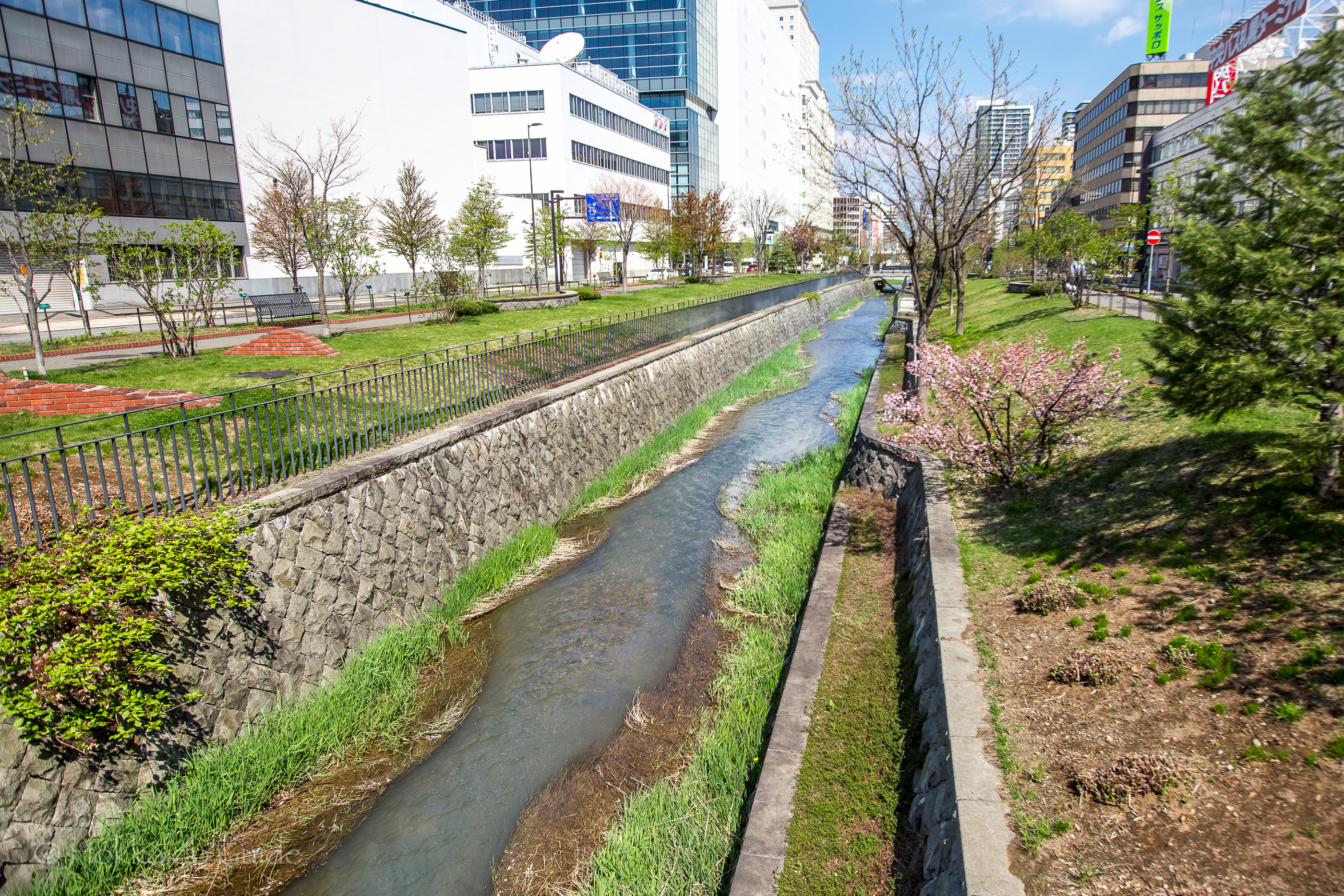 - Sosei river running through the park