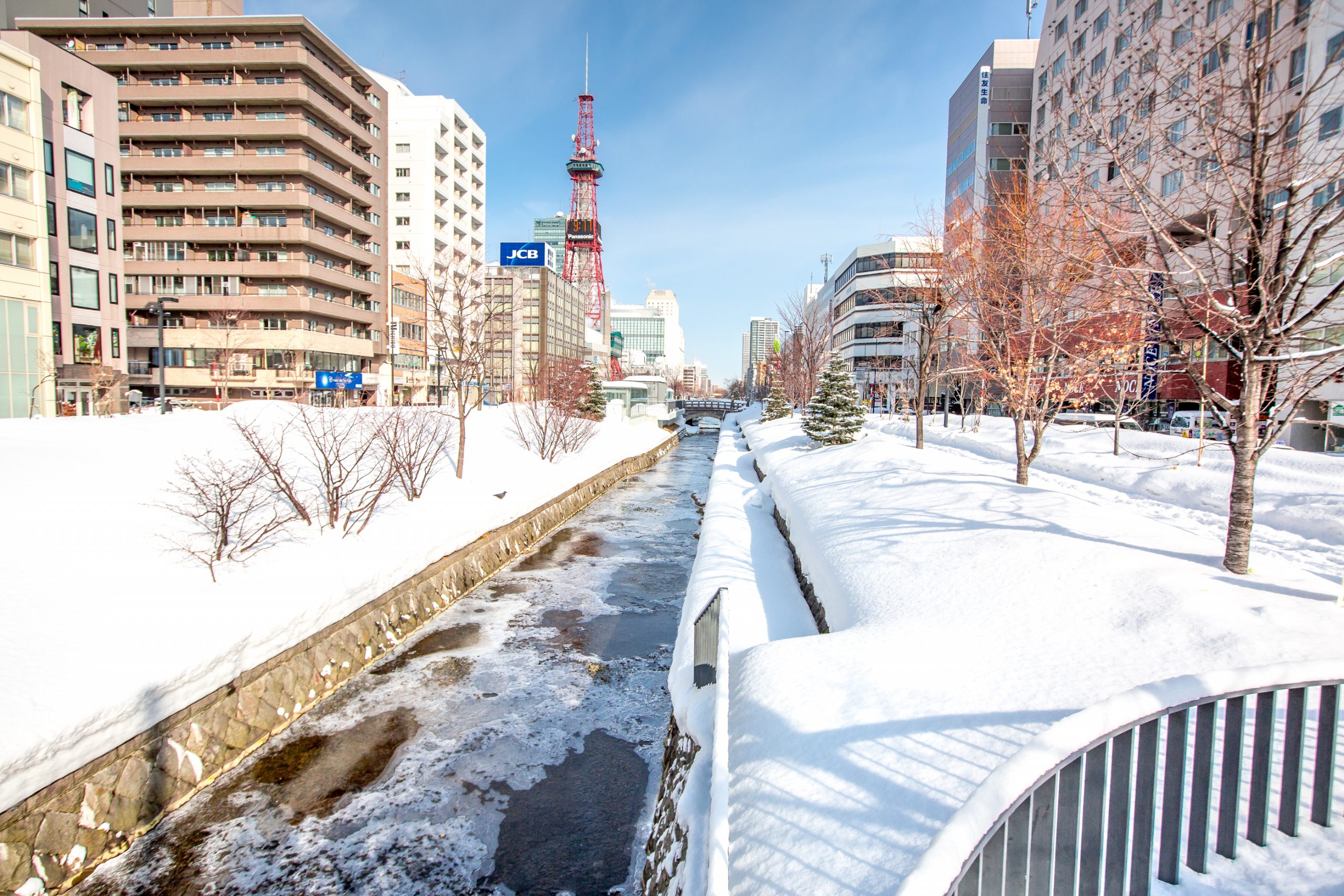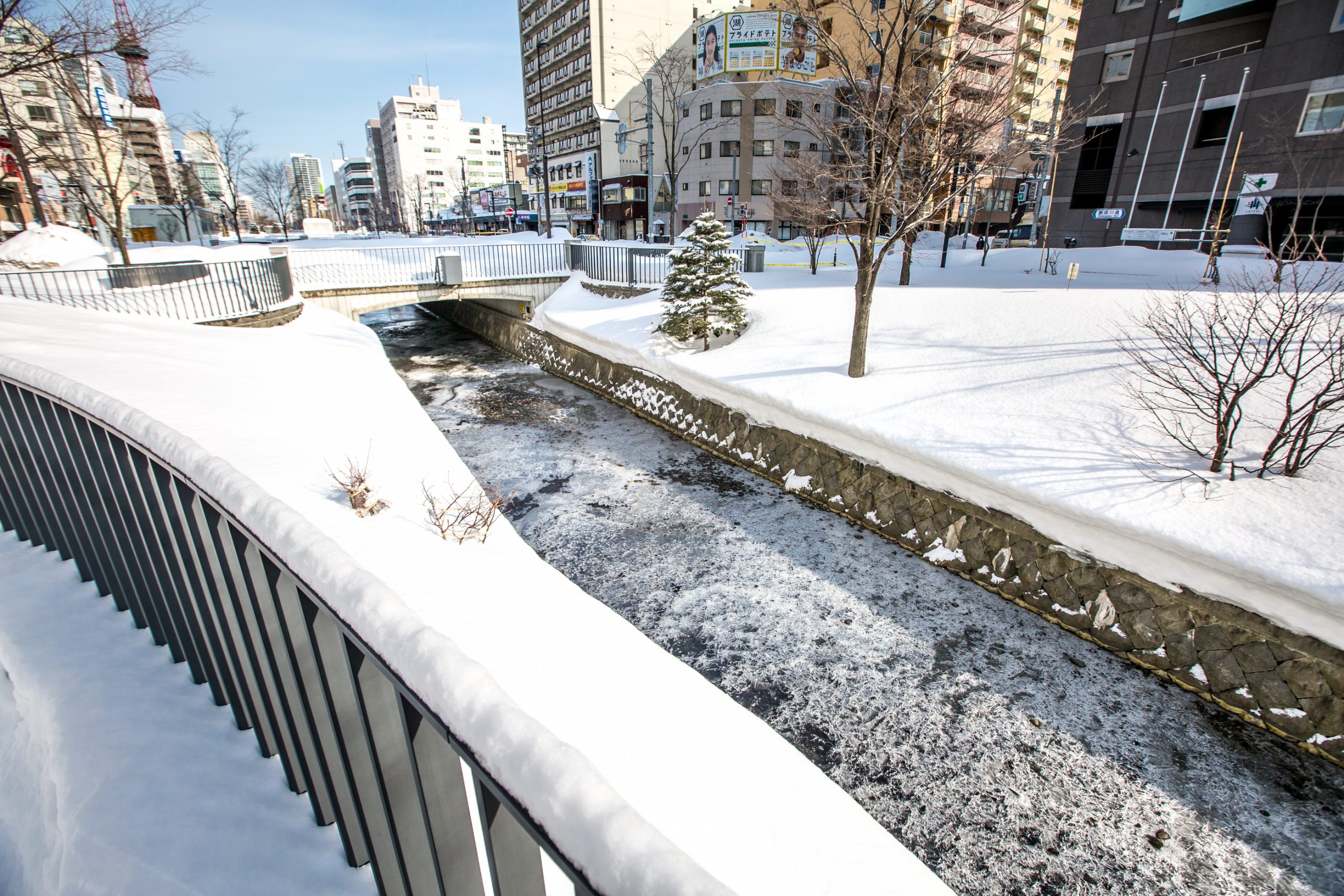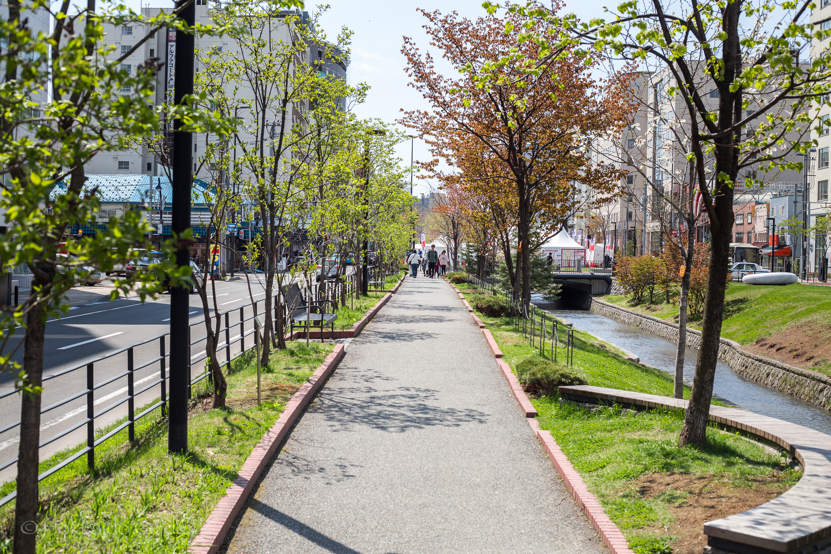 Soseigawa Park runs by the Nijo Ichiba Fish Markets and also the TV Tower at the eastern end of Odori park. There are around thirty different lilac trees planted throughout the park, twenty kinds of ‘Day Lilies’, and thirty seven German lilies. Along the walkways, you can find sculptures by three Japanese artists, Yasushi Yasuda, Yasuzo Nishino, and Eiki Danzuka. Throughout the year, Soseigawa Park is home to numerous festivals and events especially during the spring and summer. These events are a great spot to unwind and take in the beauty of Soseigawa park.