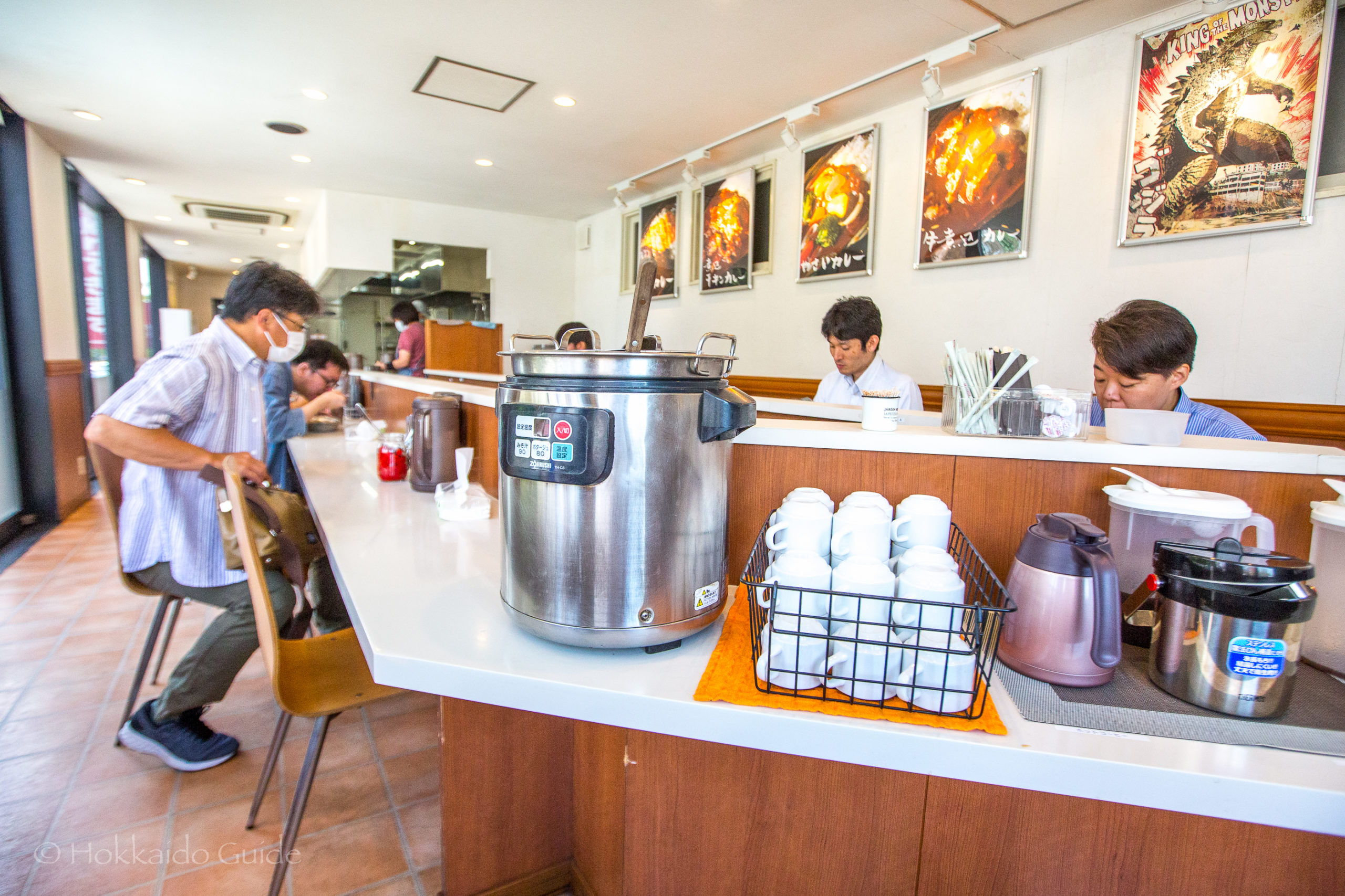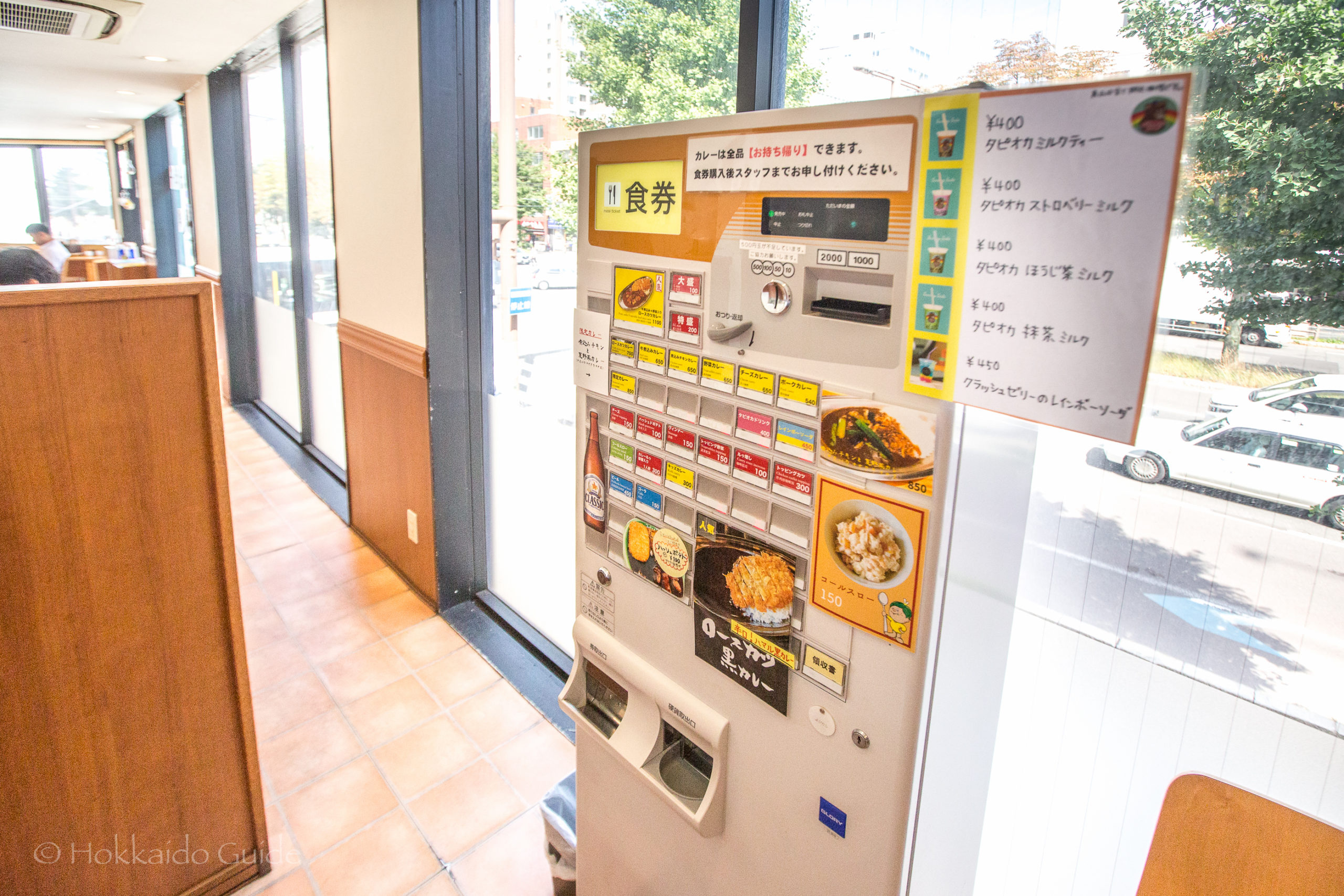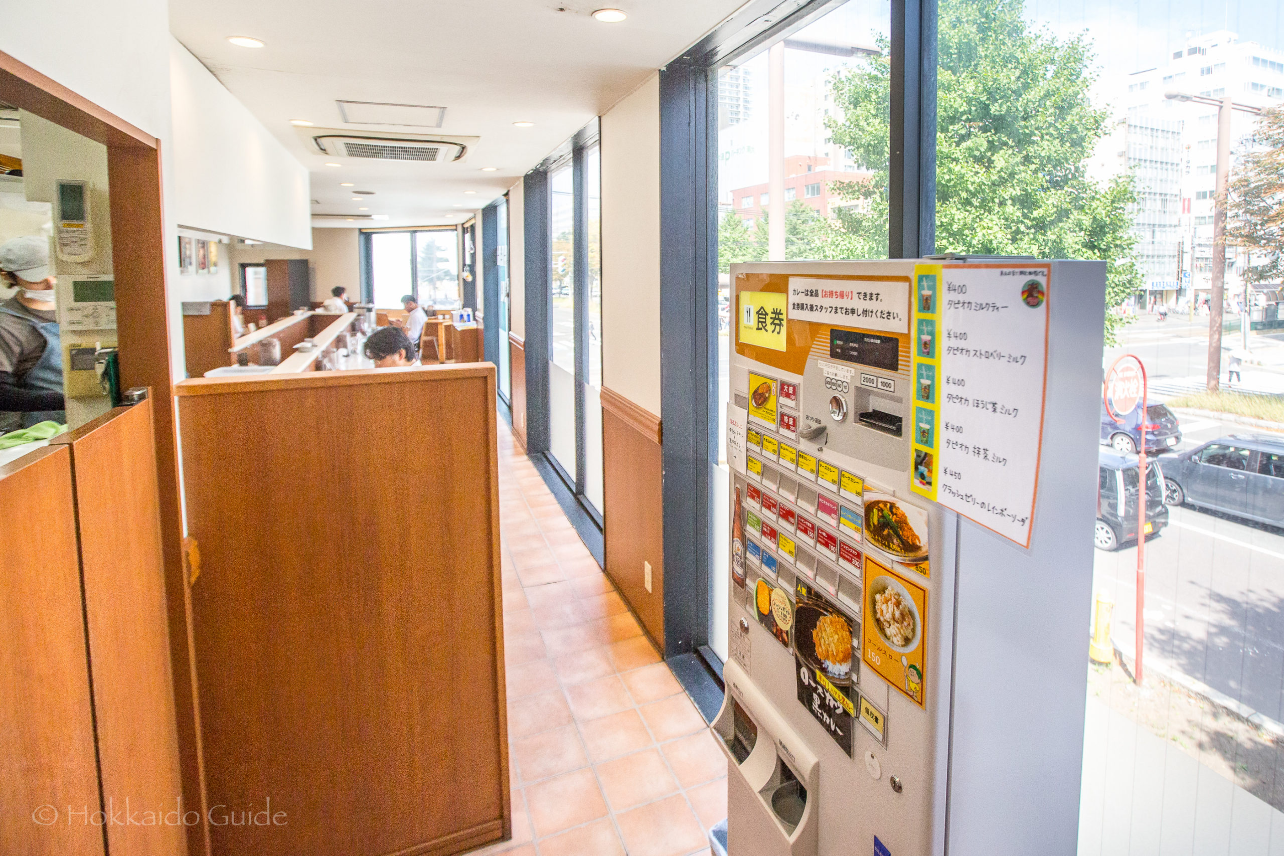 Spice Monster is a cheap and easy curry restaurant. It is in one of the main districts of Sapporo amid the hustle and bustle. Being on the corner it overlooks one of the key streets in Sapporo. It is right by the Prince Sapporo Hotel, the Sapporo central ward city hall, and it is a one minute walk from Odori Park. This restaurant is a simnple curry shop. The ordering system is on a self service basis. There is a large ordering machine right by the entrance after coming up the stairs.