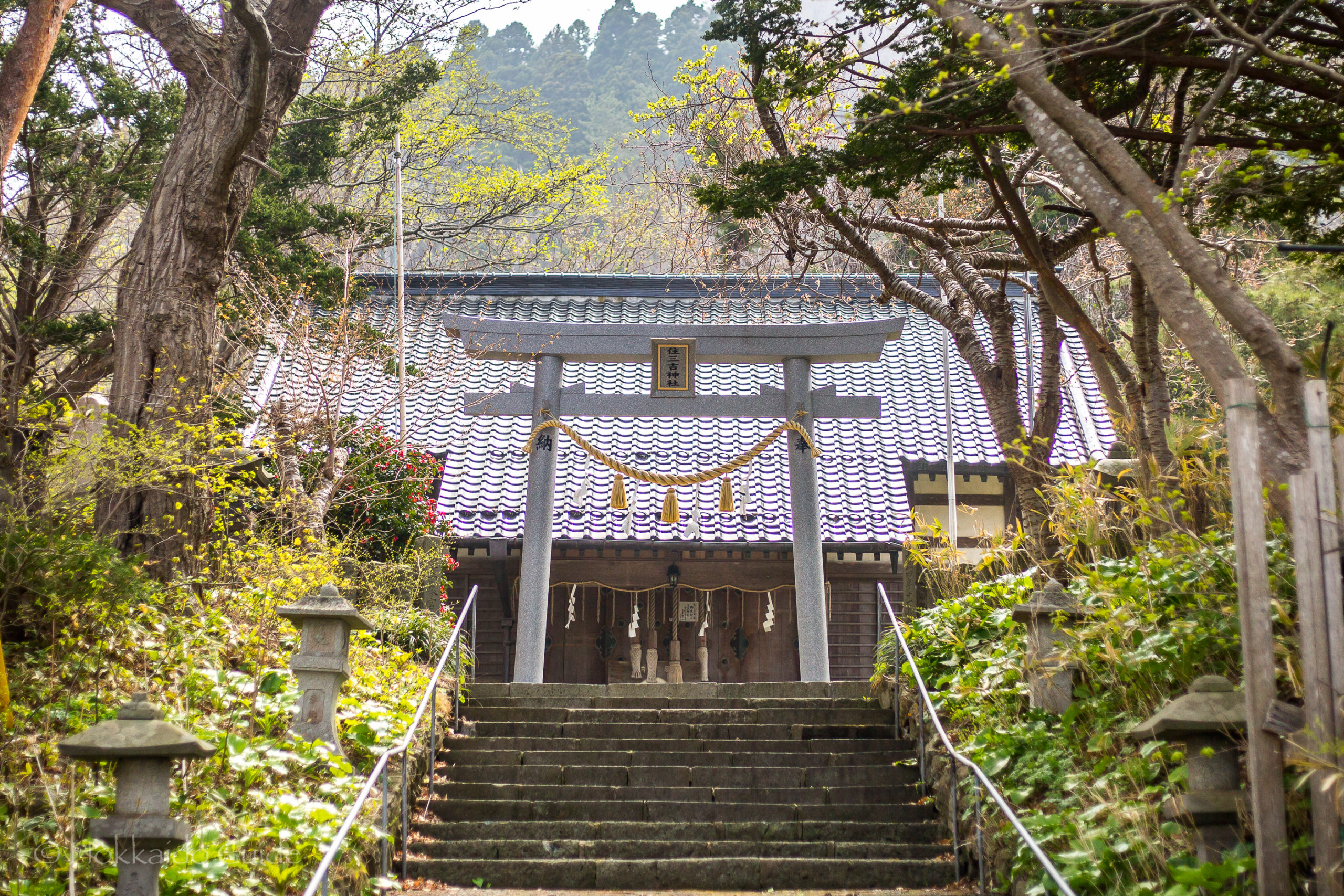 Sumiyoshi Shrine is a shinto shrine in Hakodate. It is located on the cape near the base of Mt. Hakodate. It is not a far walk from the ocean, on the eastern side of the headland. The founding date of the shrine is unknown, however according to local stories passed down, the shrine was built during the Kamakura period, which was established in 1192 (bringing the start of the samurai). The shrine (known then as Miyoshi Shrine), was rebuilt 600 years later during the An’ei era. The shrine was then rebuilt again in its current location, after it was burnt down in a great fire in 1937. The shrine was renamed Sumiyoshi Shrine.