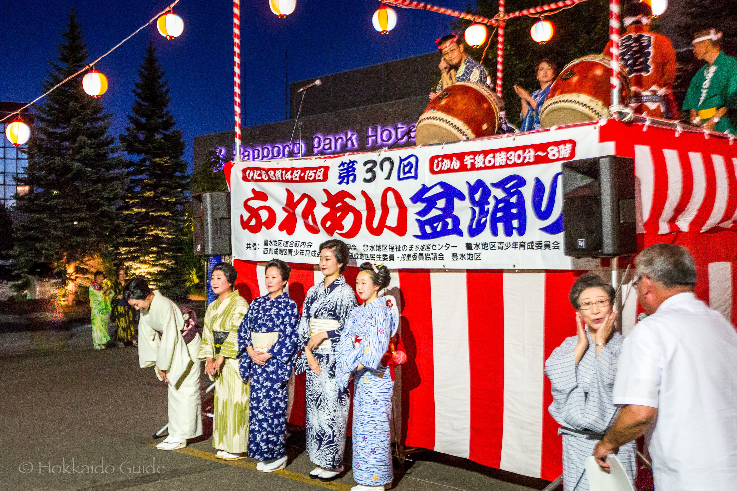 These small festivals are held throughout each city in various places and districts. If you are in Sapporo, the main Bon Festival is held in Odori Park. Plus, there is another in front of the Park Hotel. At these Bon dances, there are stalls selling food and drink and this goes all day. In the evening the lanterns come to life and the music starts. Anybody is welcome to join the line dance that circles the yagura. This is a great way to get involved with centuries of Japanese culture and make for a great spot to get some video or photos.