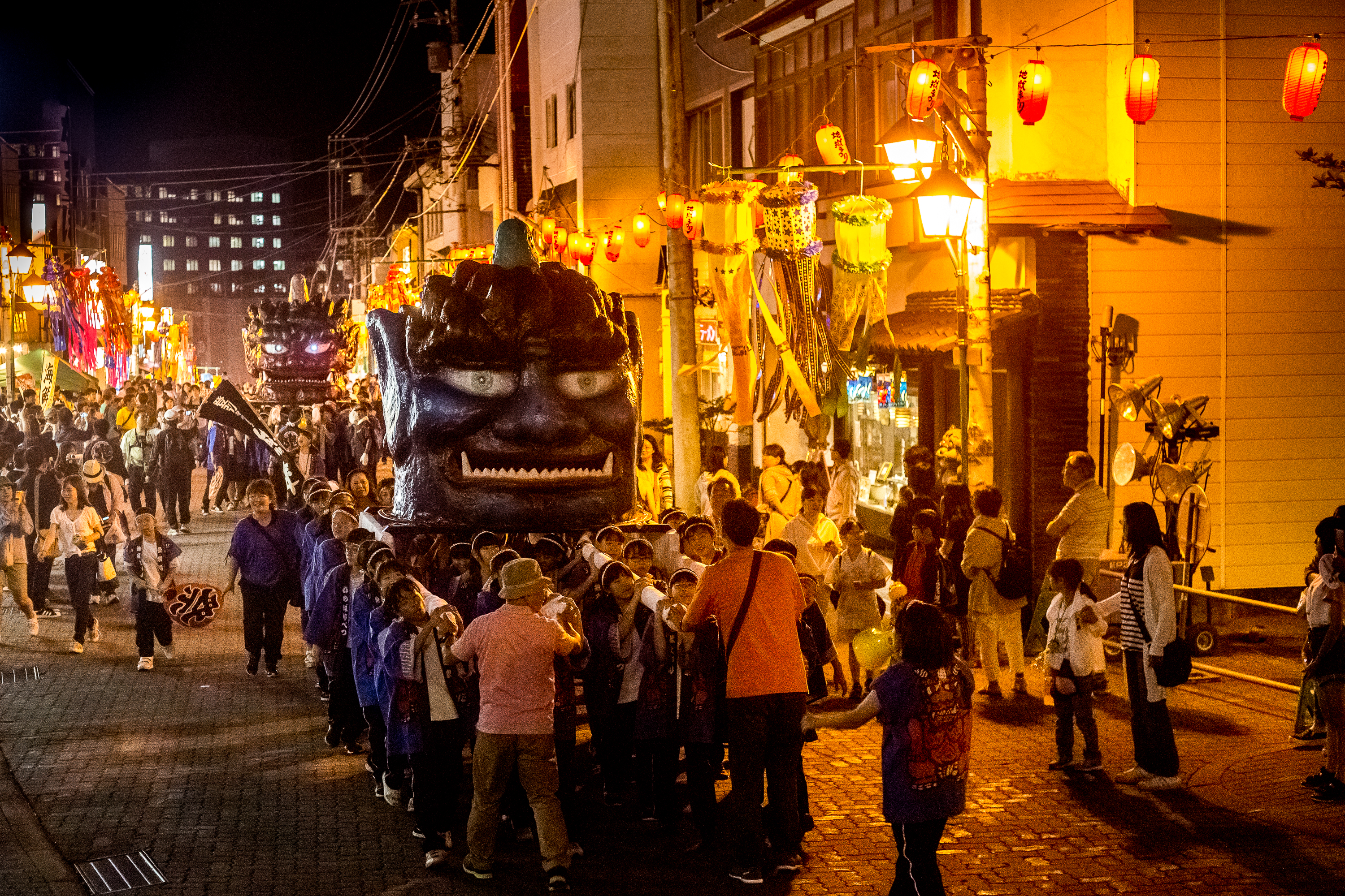 The iconic center piece of this festival is the giant Demon Mikoshi Gokuraku (shrine) which is a giant demon face upon which stands the demon king. As it proceeds down the street, smoke pours from its mouth and the eyes light up, as it spews forth golden ribbons. A truly impressive sight! Ogre shrines of ‘Enma’ precede the demon shrine and are carried by school kids. Masked ogres dance in groups in honour of the demon king’s visit and local folks perform for the crowds. A colorful fireworks show on the final night, bids the demon king’s farewell until the following year.