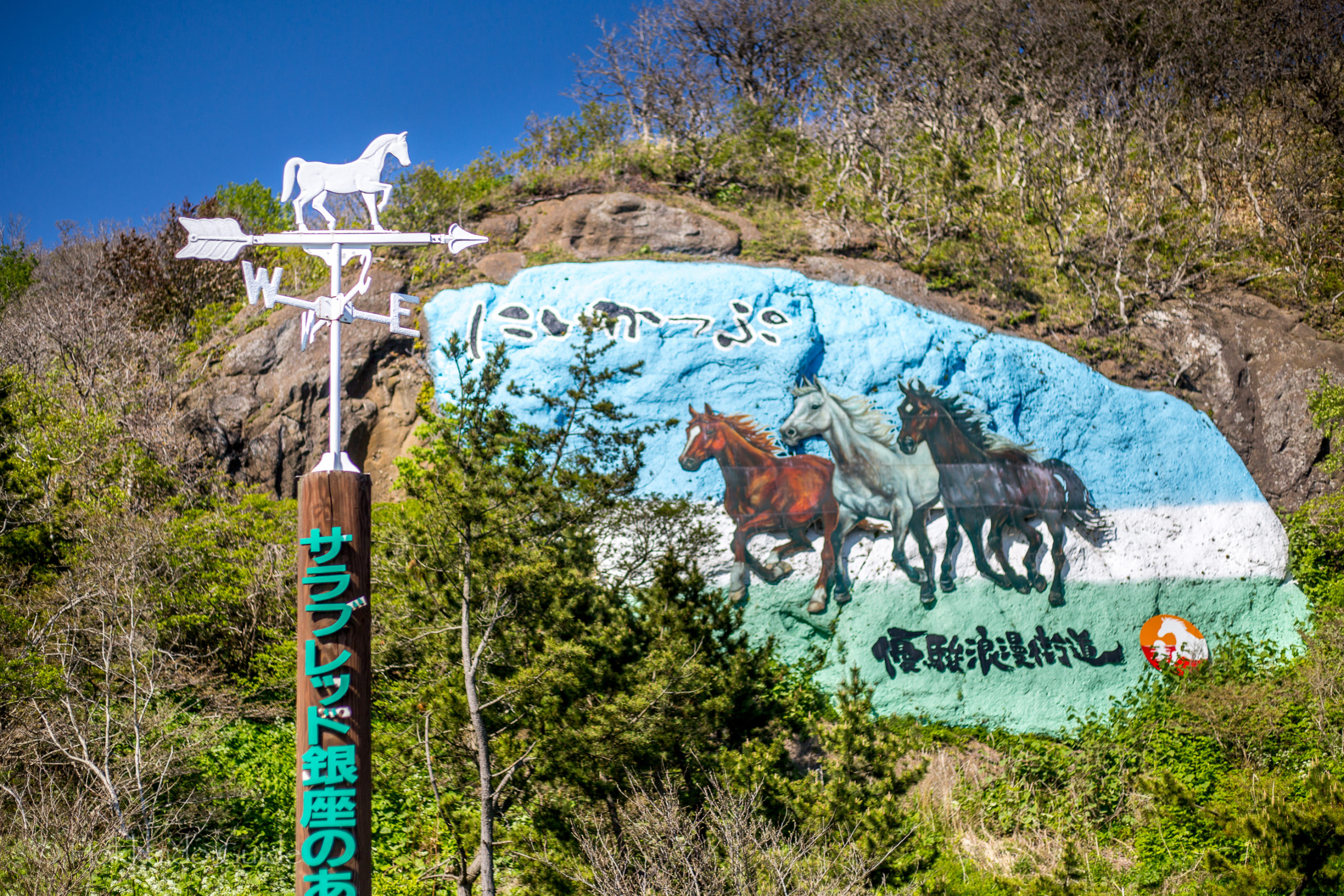 Niikappu is a town and sub prefecture on the south coast of Hokkaido. The area is known mainly for its production of racehorses. You can find statues and symbols of horses all across the town. On the border of the town of Niikappu and along the ocean drive there you can see the Niikappu mural. It is easy to see and it’s also the mark for where the rest stop is. This area is home to three restaurants that are open for lunch and dinner. Travelers have the option of a coffee shop, Chinese, or BBQ.
