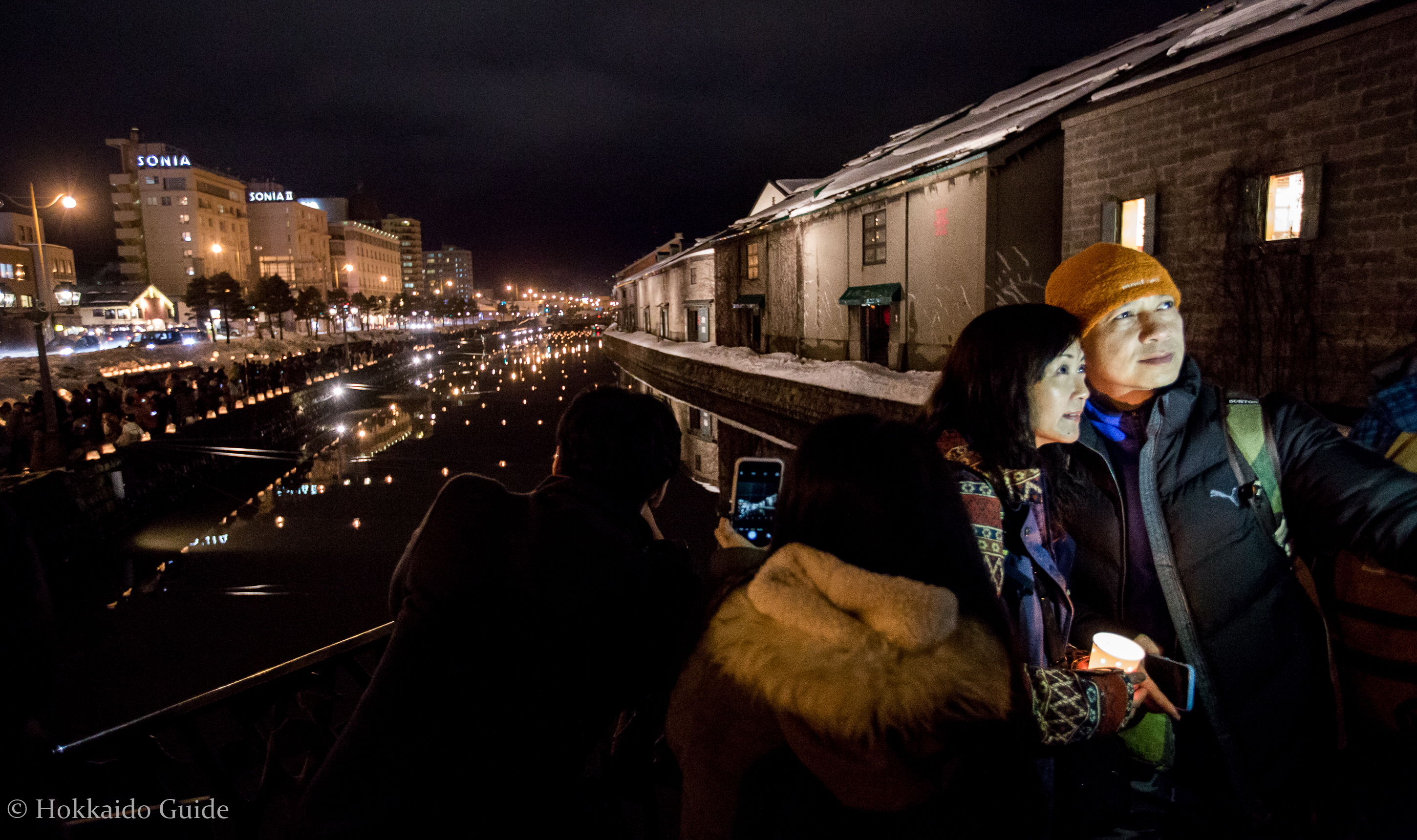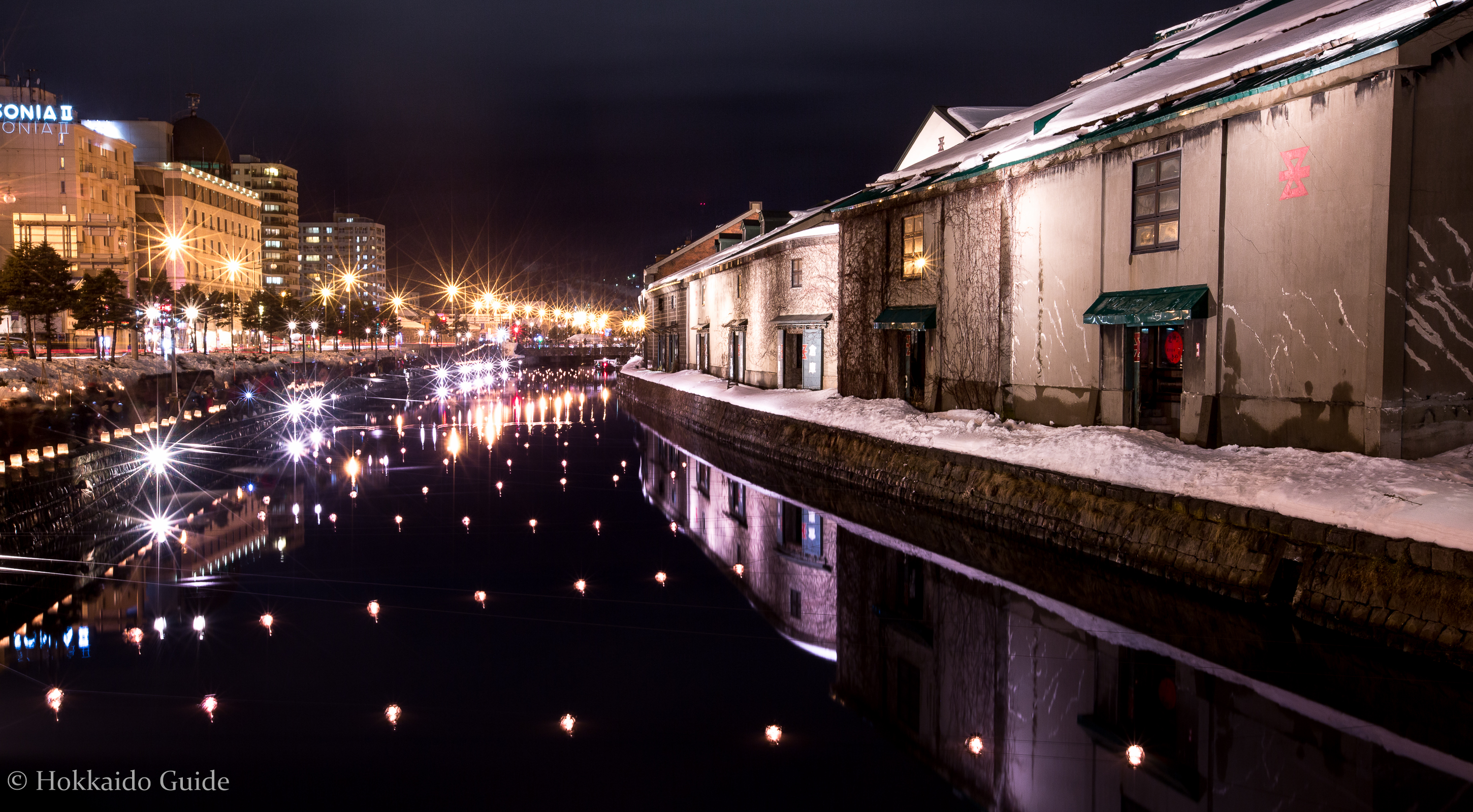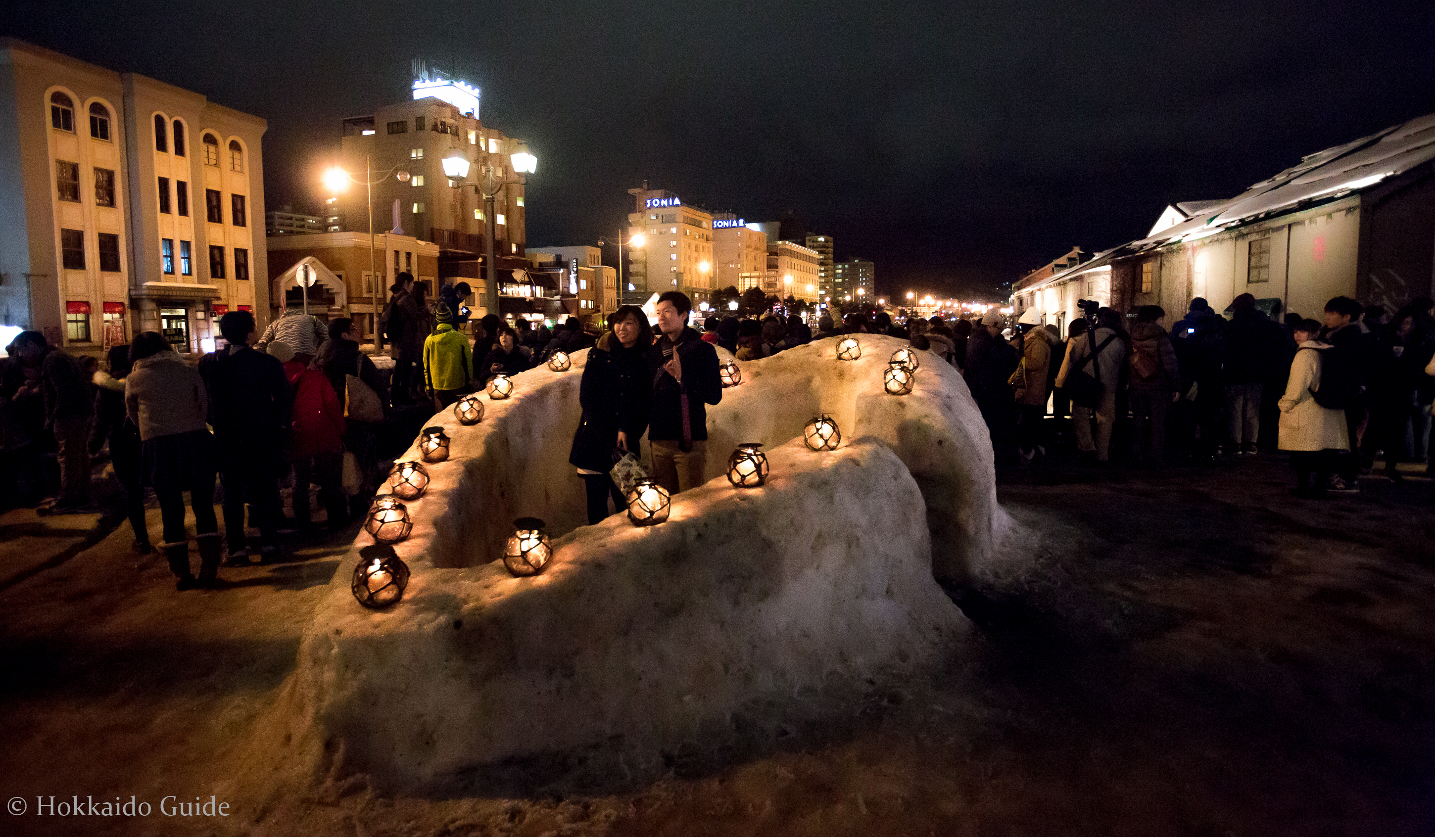 During the festival the city is decorated with lights, candle lit lanterns, and snow sculptures. The main venues are the historic OTARU CANAL and the former JAPAN NATIONAL RAILWAYS TEMIYA LINE. The canal is lined with candles and offers a great place to take photos and take in the sight of the warehouses reflected on the calm water. To get to the canal from the train station simply take the main exit and head directly straight for about 8 blocks. Just keep following the incline down to the small canal.