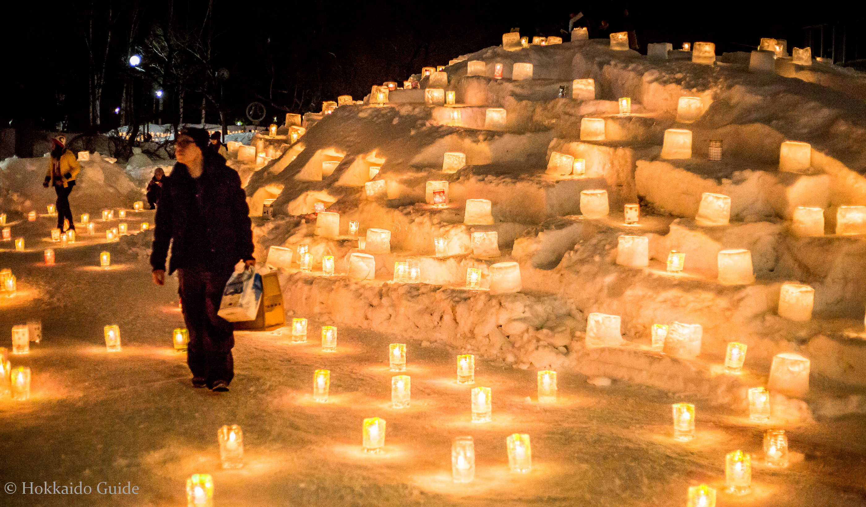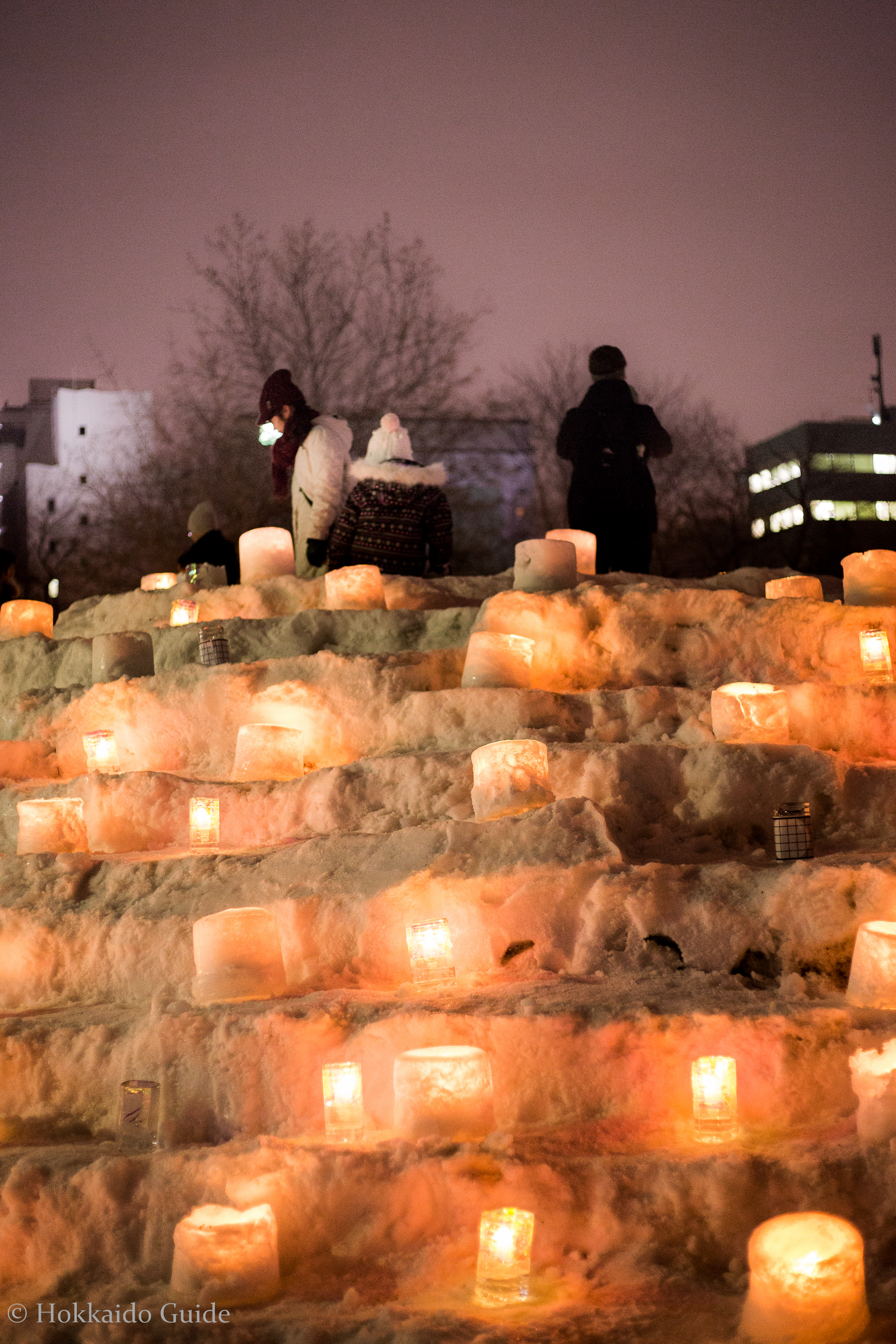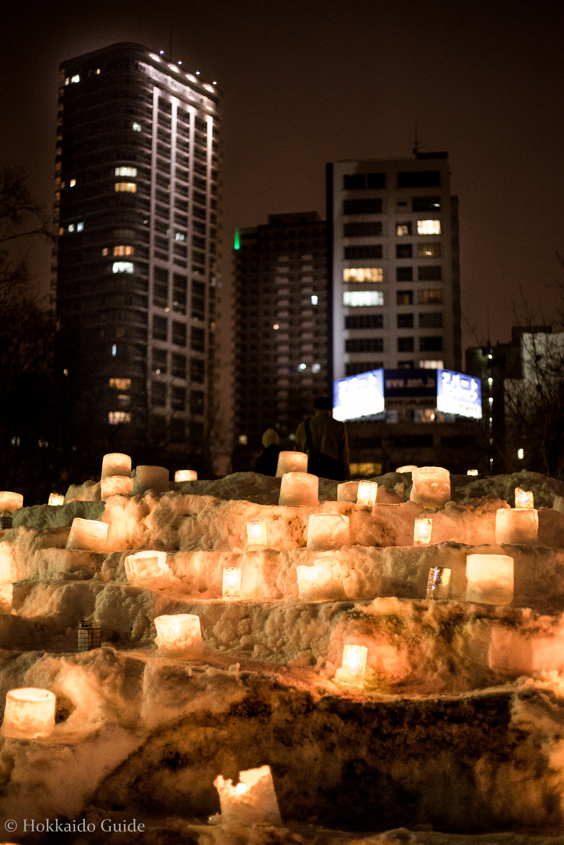 Although, technically, not part of the snow festival, NAKAJIMA PARK has its own attraction. In the evenings the park lights up with hundreds of candlelights placed in the snow. Nakajima park is only a 5 minute walk from Susukino so its easy to take in all these sights. Be warned, the temperatures at this time of year hits freezing so rug up, stay warm and enjoy all of the sights of the Sapporo Snow Festival.