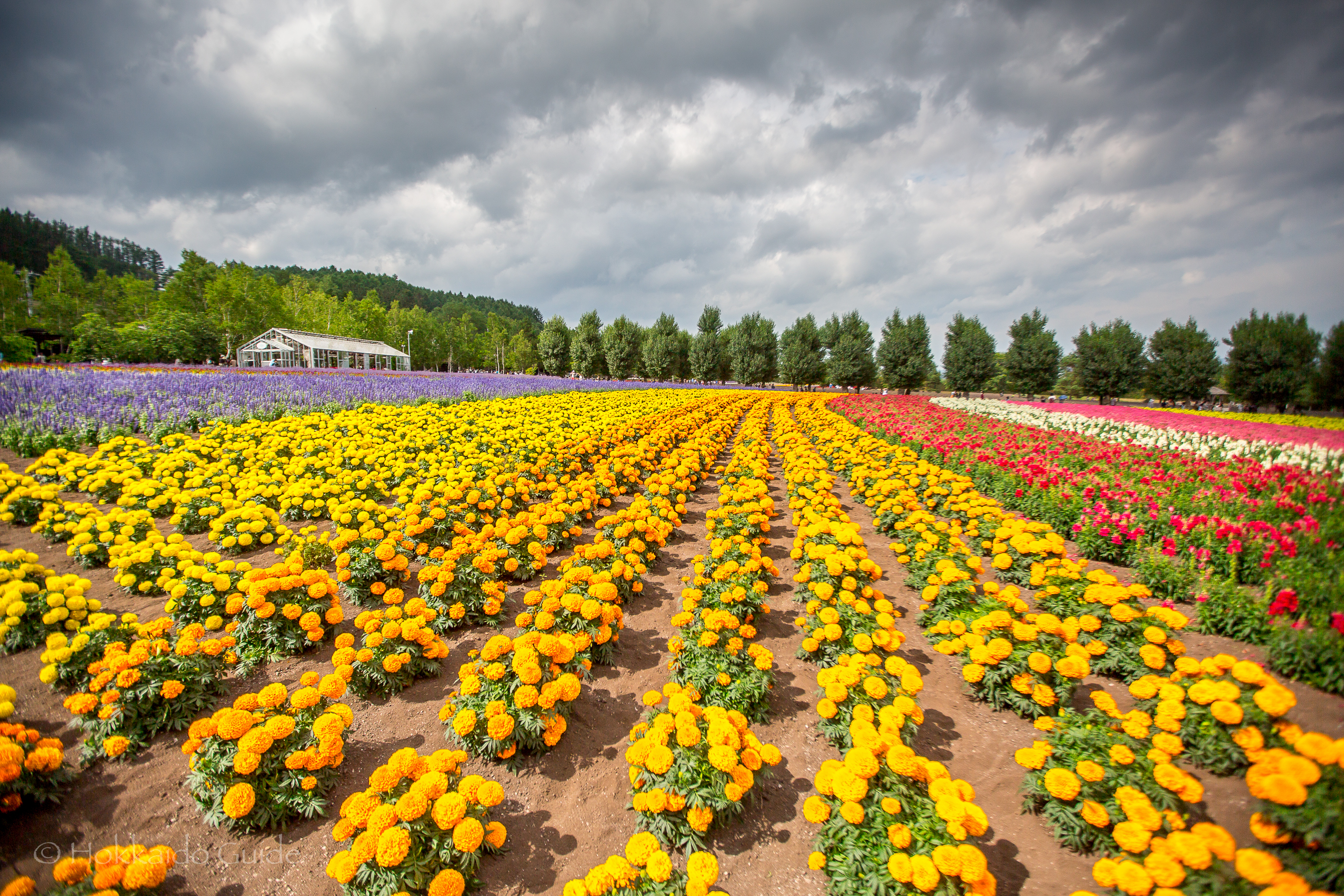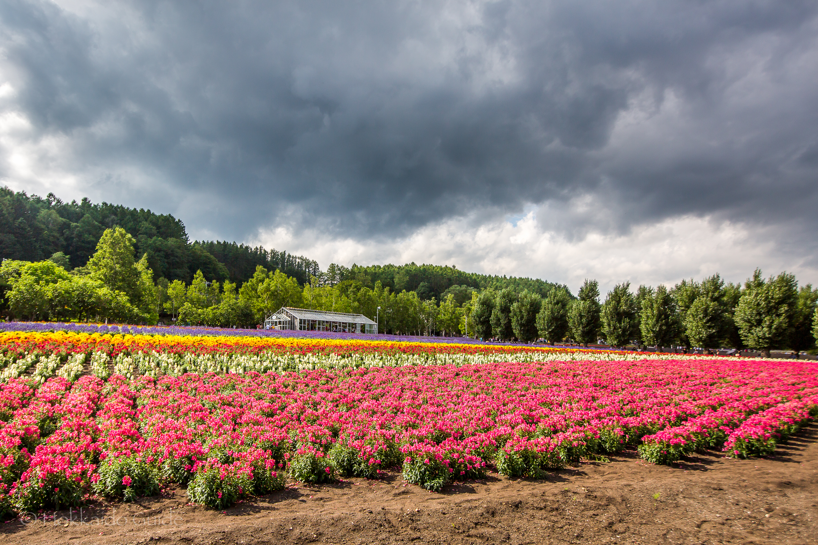 The most prominent flowers at the Tomita Farm are the lavender fields which bloom early and are best seen early July. The lavender field here was the first lavender field in Japan and was foundation for Tomita farm. The souvenirs and the numerous shops sell many lavender based products, from soap and scent packs to lavender ice cream! Apart from the lavender, Farm Tomita has various flower fields, a forest covered field, a herb & perennial garden, a greenhouse, and a birch forest. Take your time and enjoy the splendid views as each garden offers colorful beauty.
