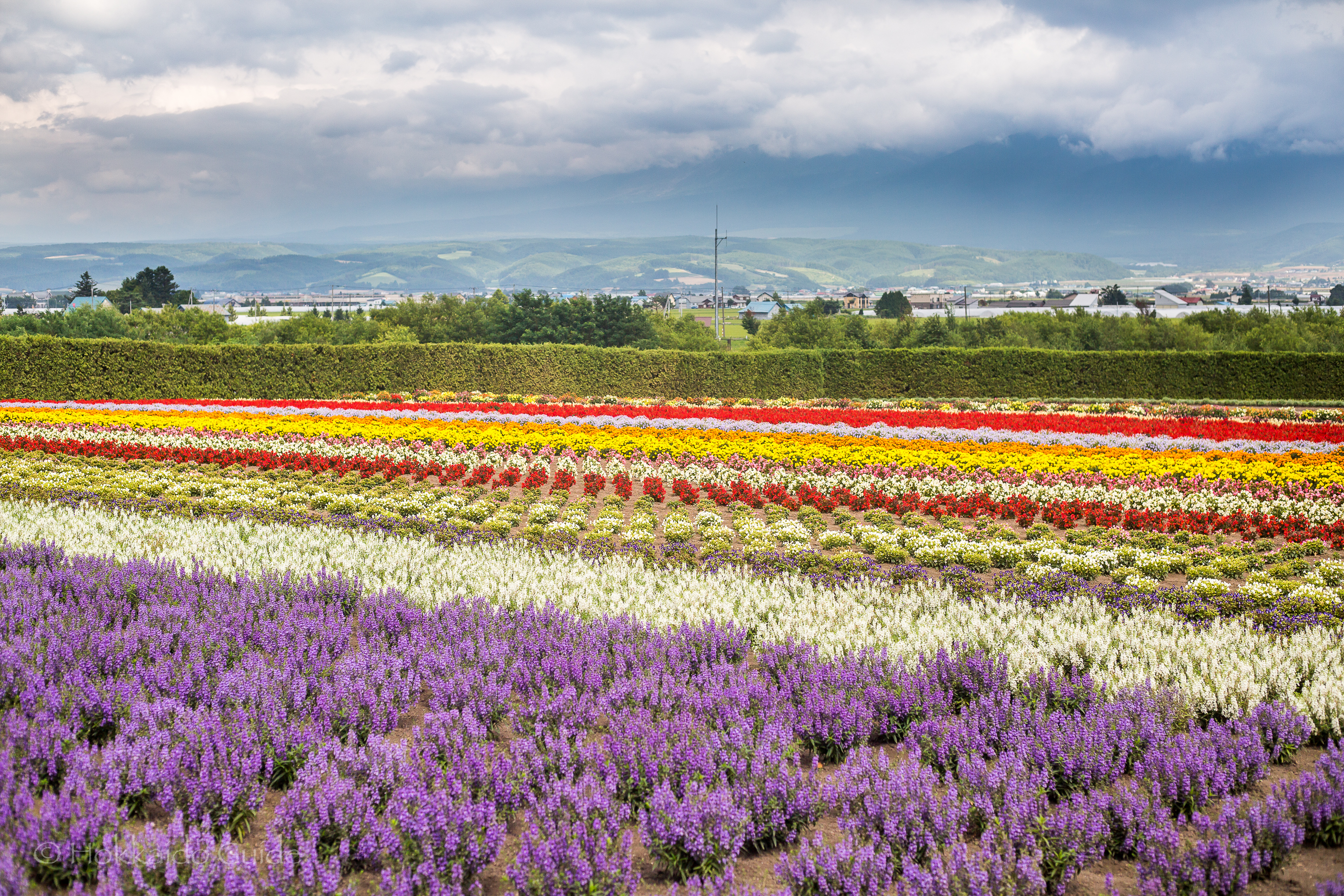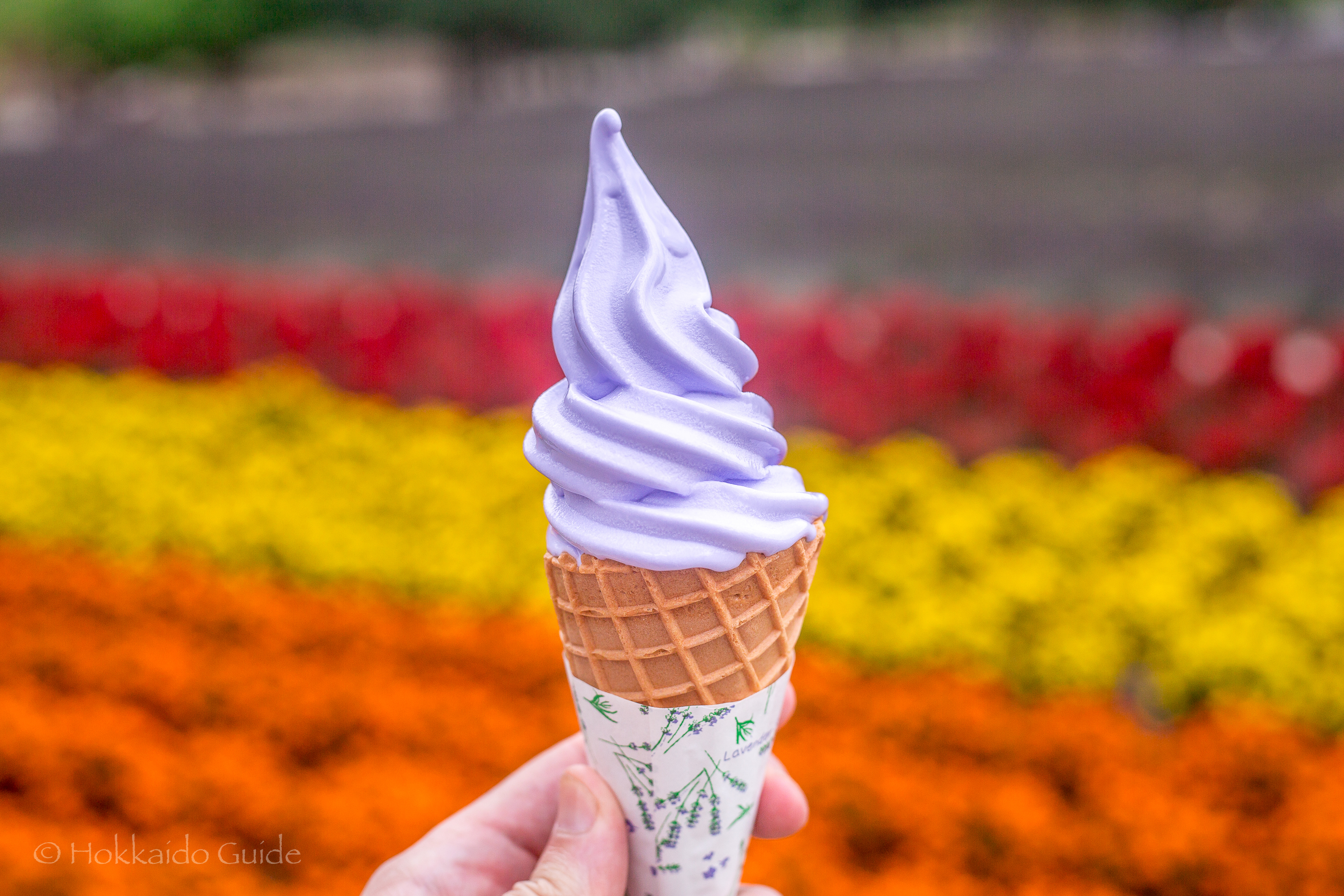 The local station is “Lavender Hata Station” which is a 7 minute walk from Farm Tomita, or its a 25 minute walk from “Nakafurano Station”.