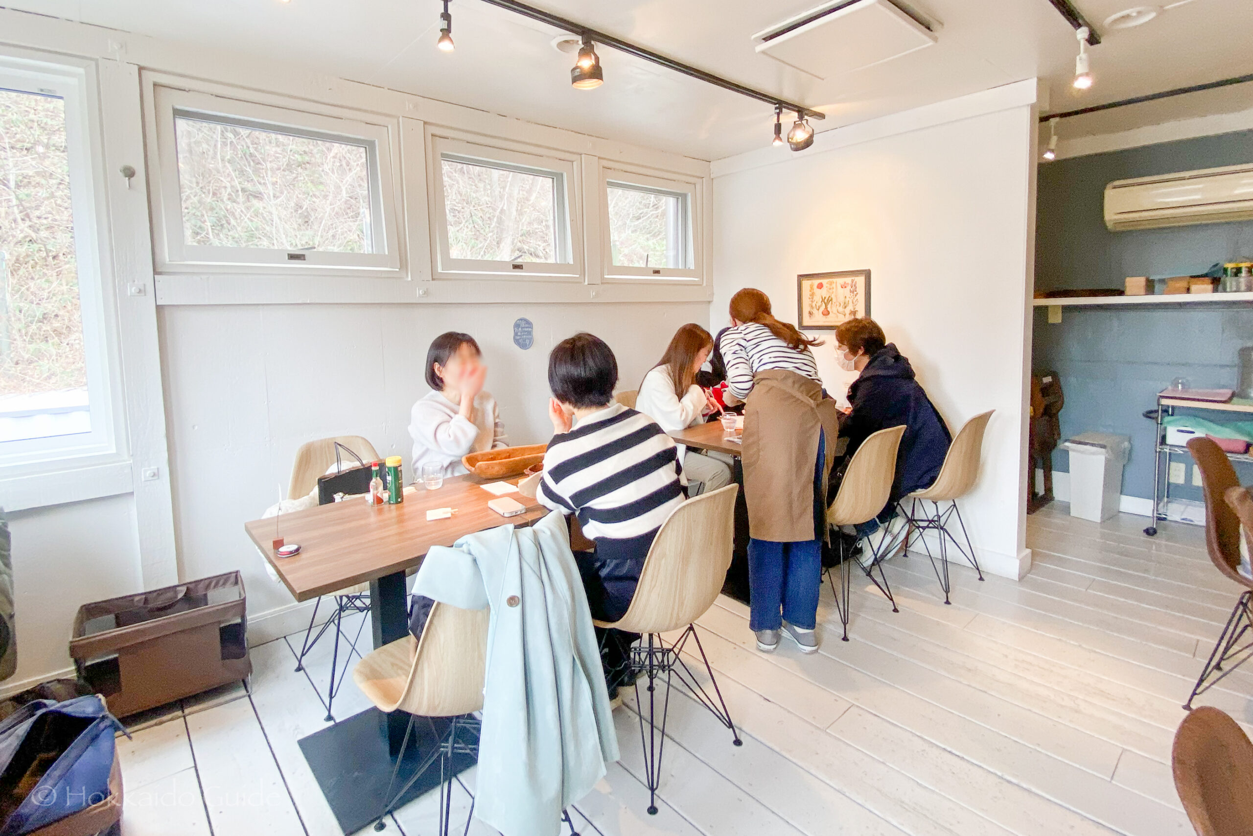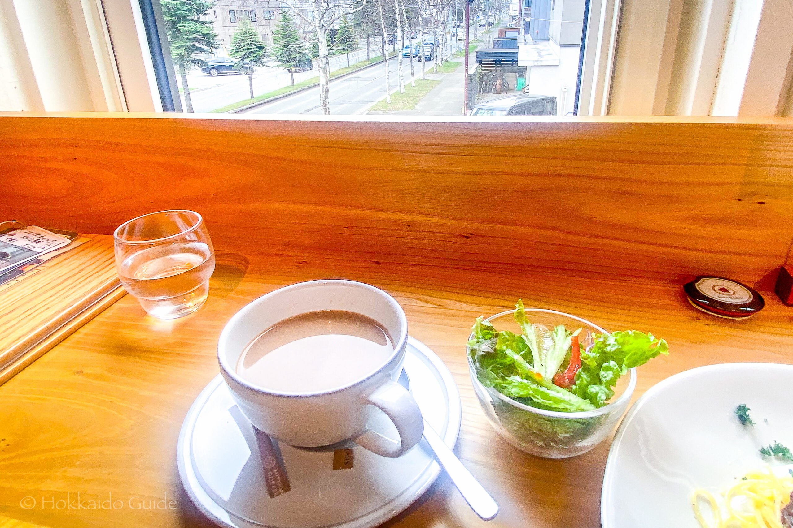 LocationThis cafe is in northern Sapporo. It is a 6 minute walk from North 24 subway station. After exiting the station at exit 1, walk north 4 blocks and 3 blocks west. It is just by the main street that runs north to south.