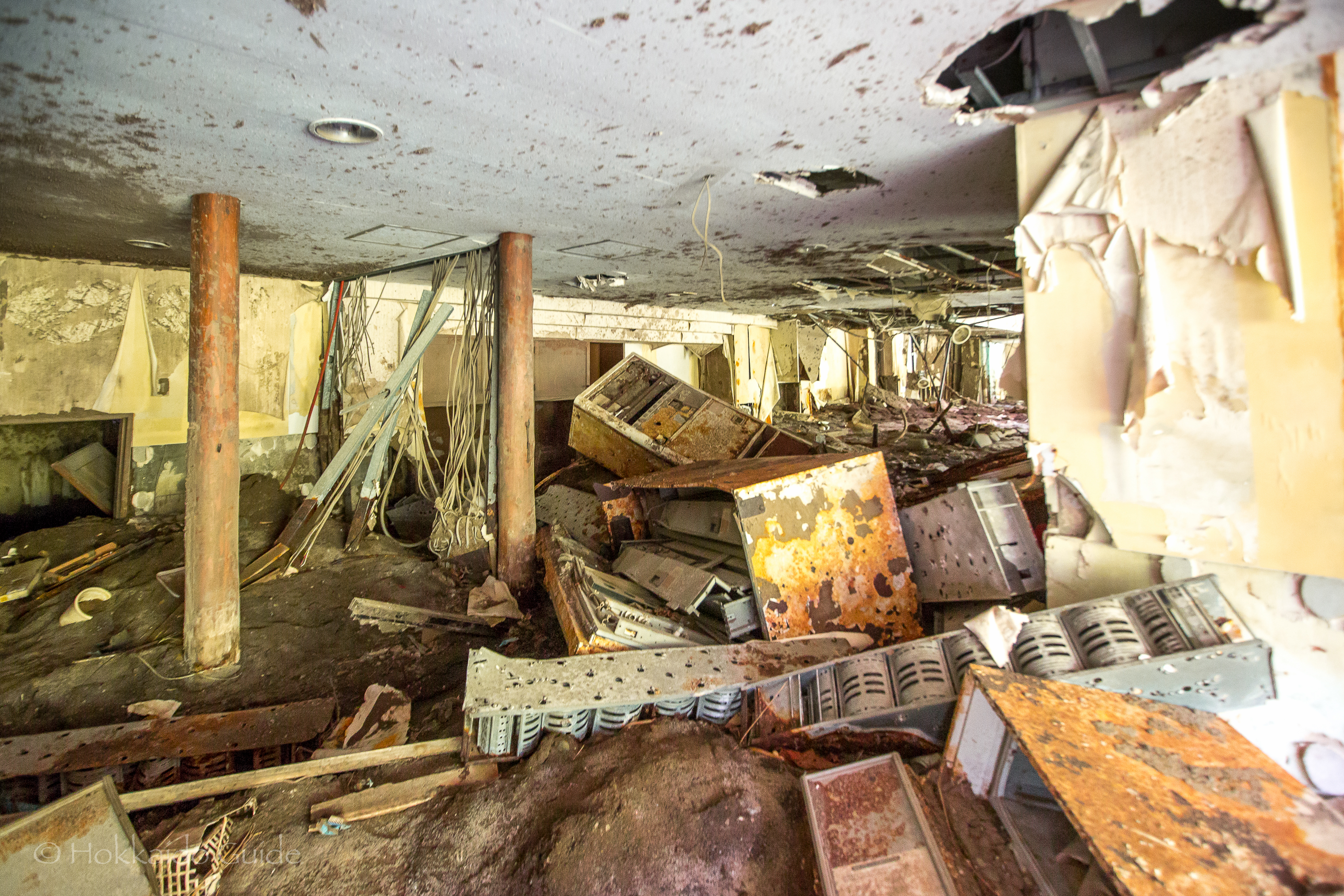 On March 27, 2000 Lake Toya was hit by volcanic activity and a number of large earthquakes causing some fault lines and the evacuation of the local residents. 4 days later, Mt. Usu erupted for the first time in 23 years. This followed with the eruption of Mt. Konpira which spewed forth volcanic rock and steaming mud towards the Toya Hot Spring district. This deadly mudslide swallowed bridges and houses in its wake. Now, a few of these buildings known as the Sakuragaoka Housing Ruins can be visited and you can get a first hand look at the destruction that was caused.