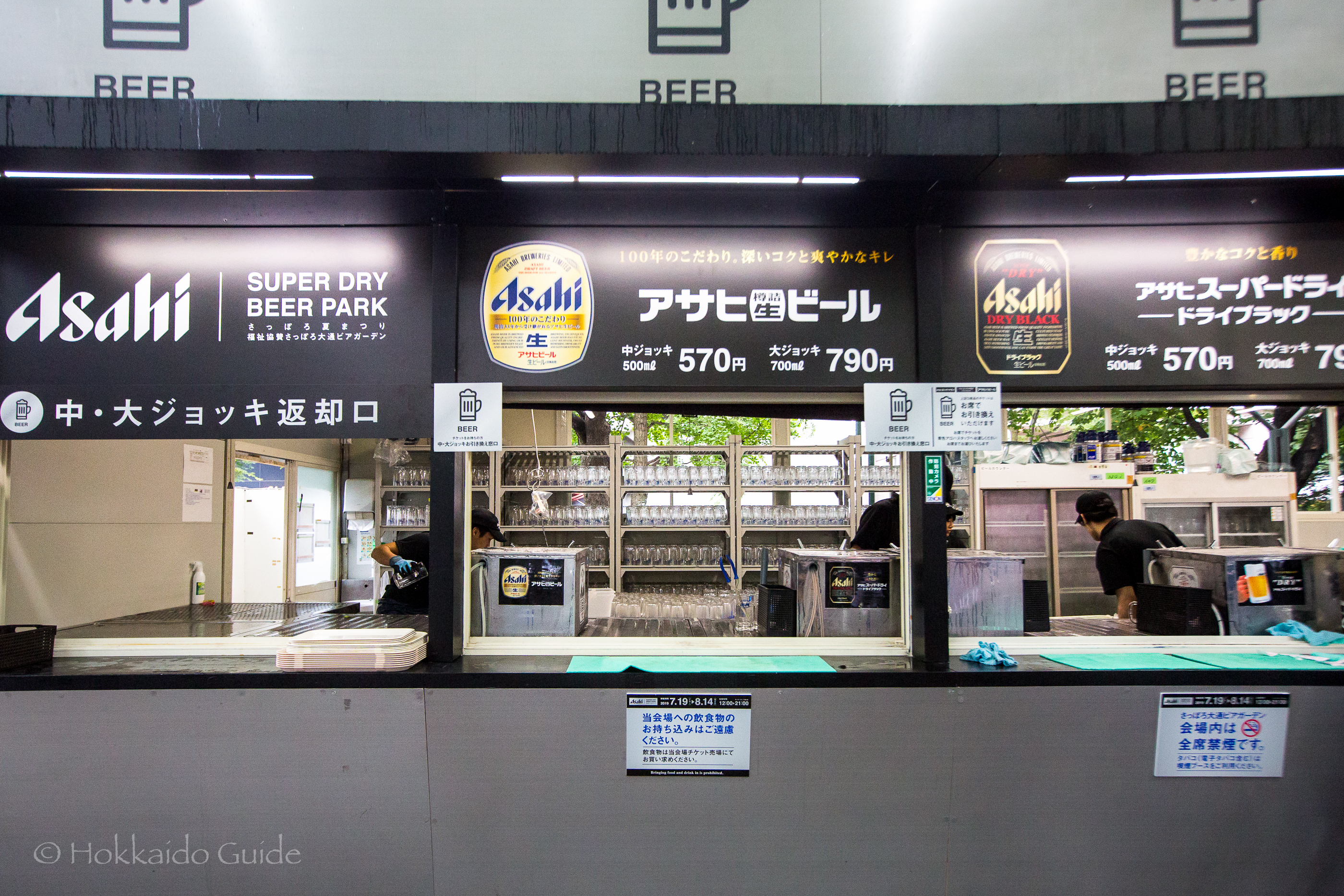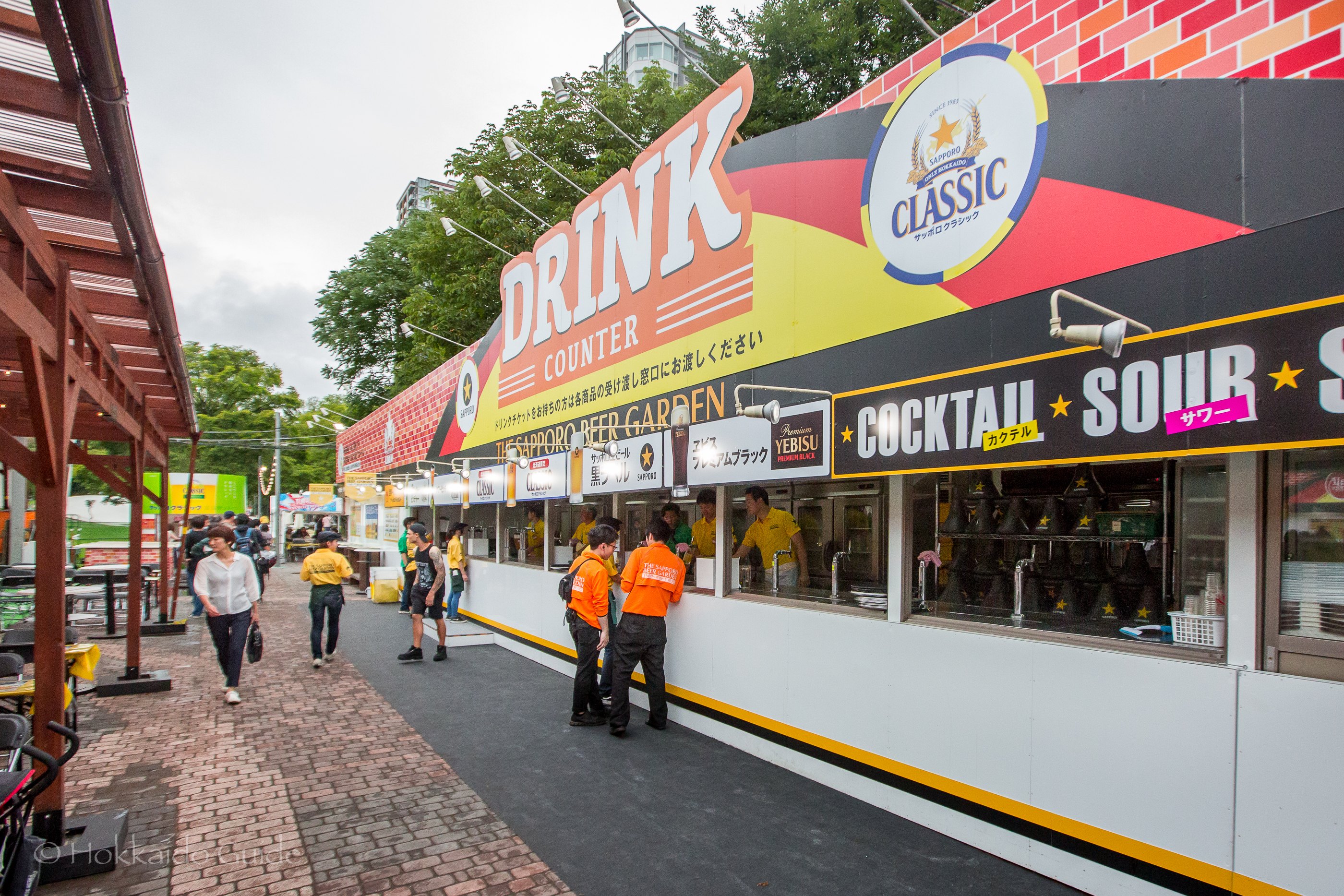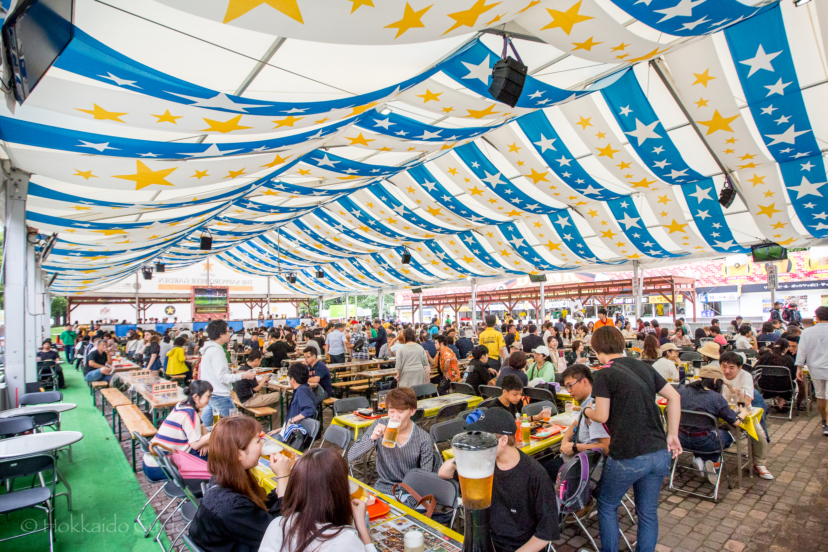 Each venue is run by each of Japans leading brewers, so you can enjoy your favorite beer! Each venue offers seating with tables, standing-only spaces, as well as tables under a roof cover, it gets busy so be sure to get there early! Reserved seats are possible. Food is also available to buy. To buy a beer, you need to purchase a ticket then give the ticket to one of the friendly staff. Enjoy! The Odori Sapporo Beer Garden is broken up into the following venues: