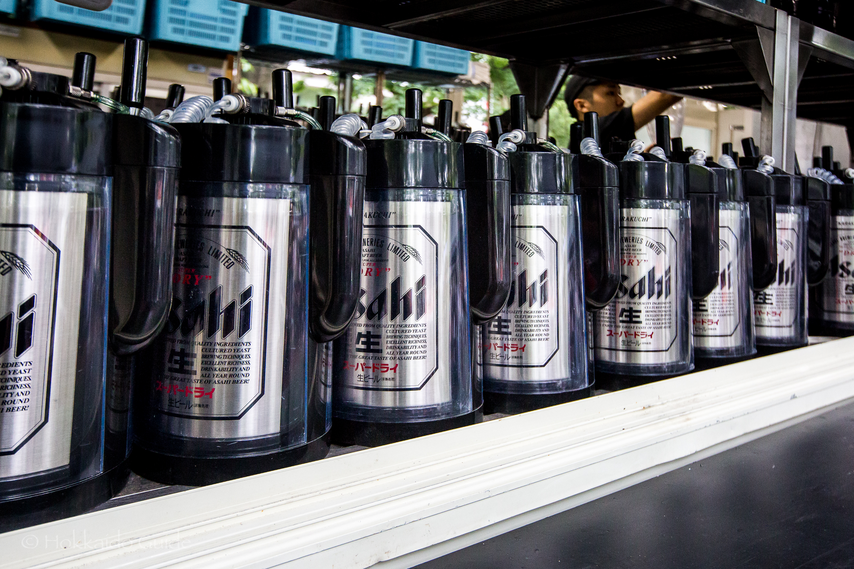 6th block west, at Asahi you can enjoy sitting under the overhanging trees and enjoy your beer. Asahi has an English menu and as with Suntory, it has plenty of seating. Asahi also has Super Dry chilled to below zero degree at the popular Extra Cold bar.