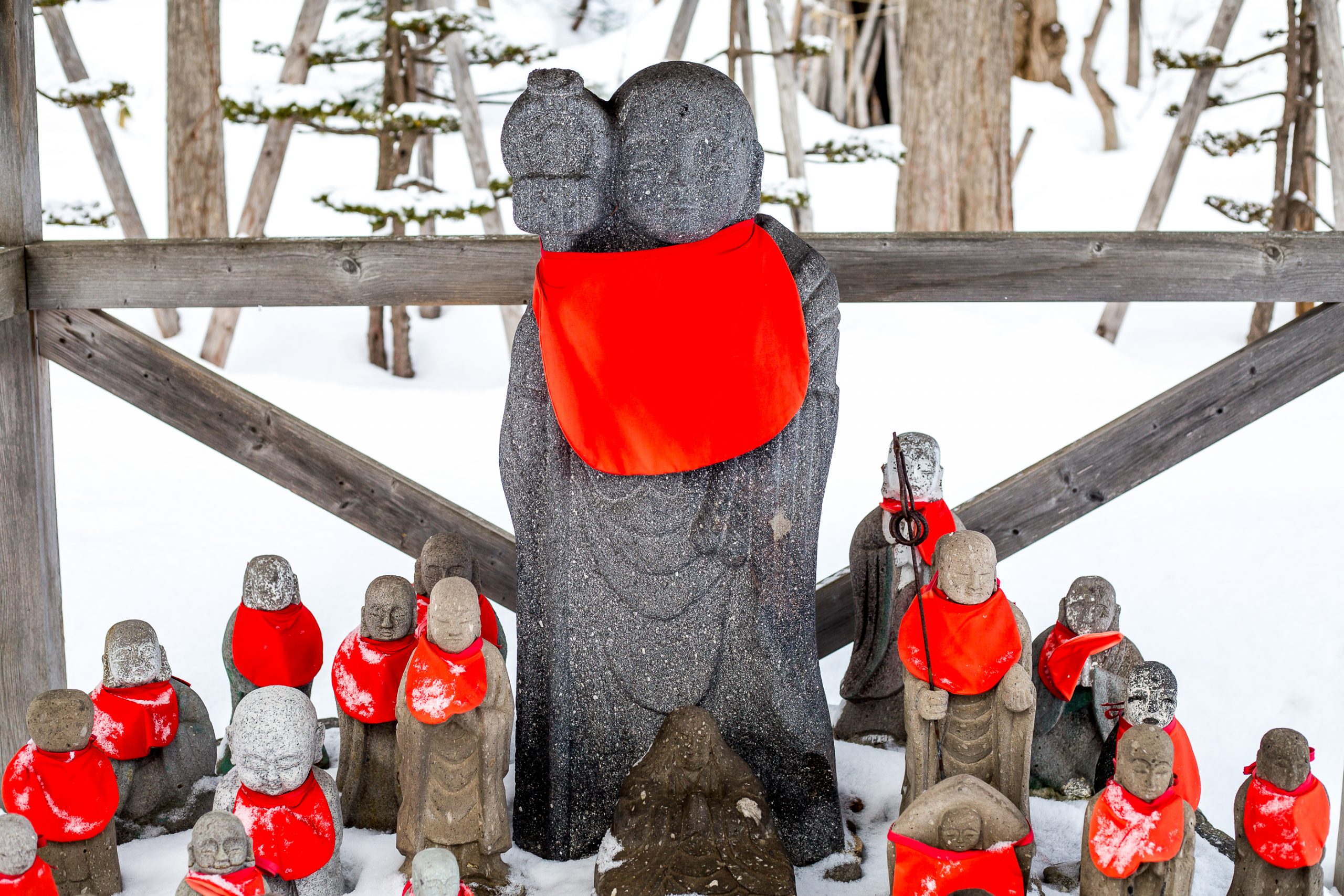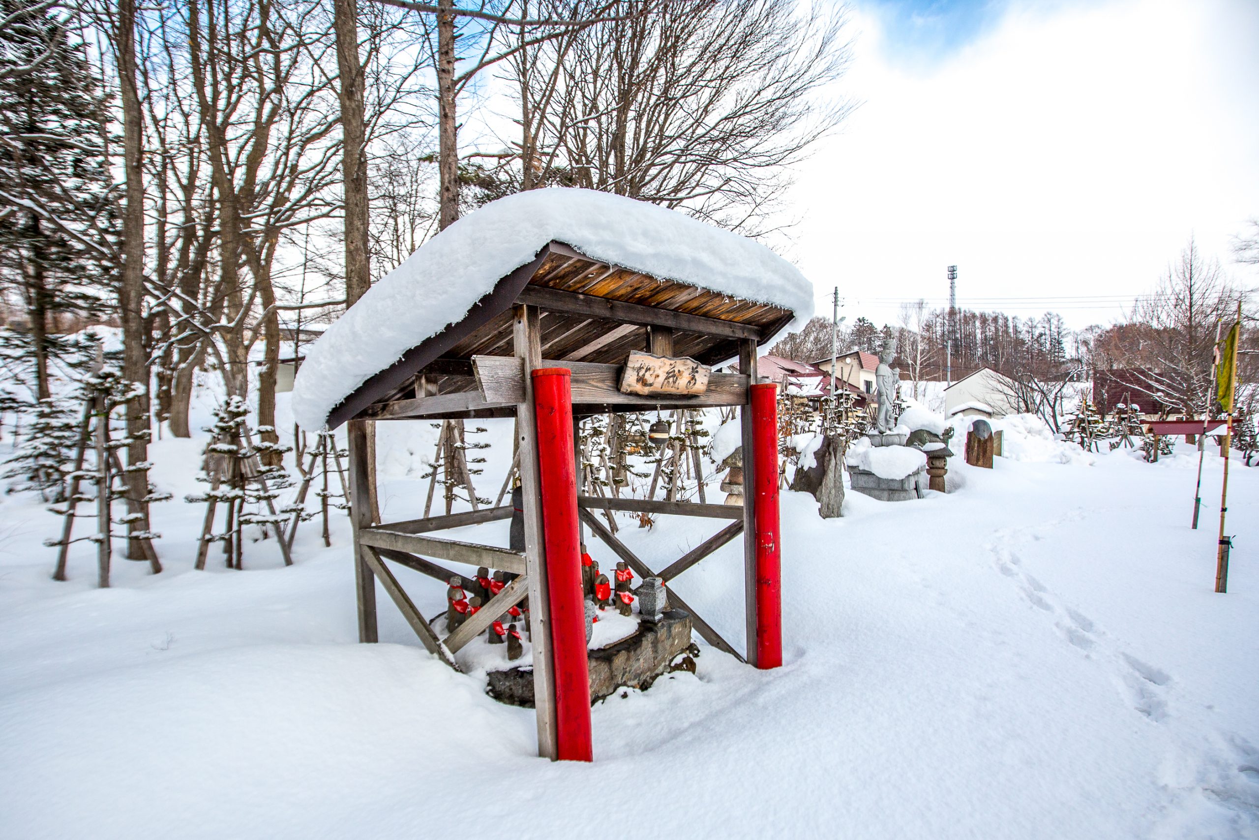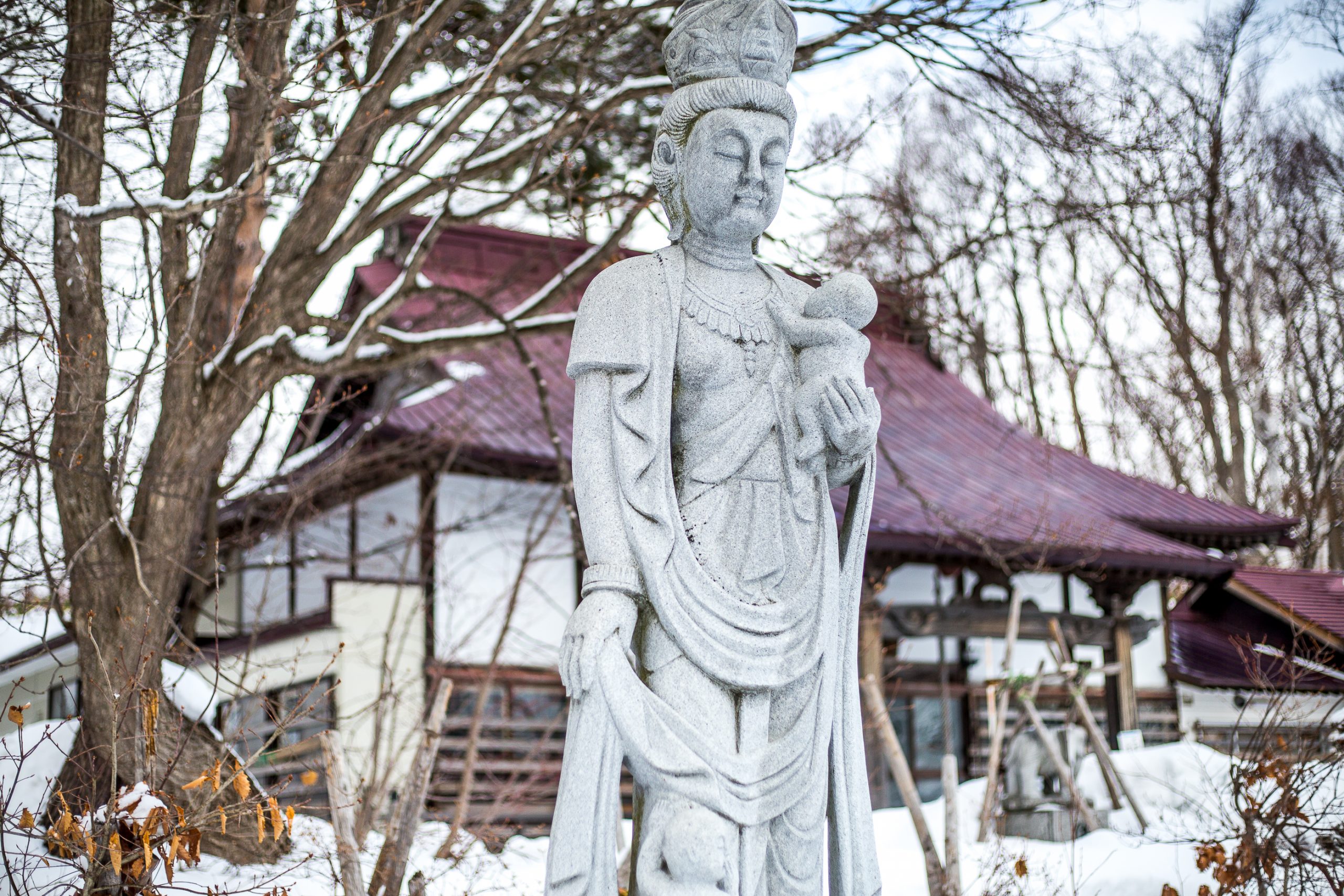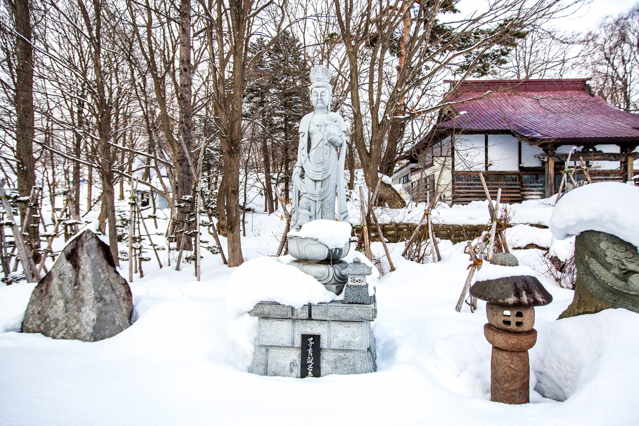 Being a buddhist temple, they have many statues around the grounds. The most common being the Ojizo-sama. These are usually small statues that have a child like appearance. They are often dressed in a red bib. This practice is believed to have begun when grieving parents who had lost a child put the deceased child’s bib on a Jizo statue in the hope their child would be protected in the other world. To get to the temple it is a fifteen minute walk from centre of Kutchan, or a five minute drive.It is located just to the north of central Kutchan. It is easily accessed as it lies at the end of the main street that runs through the town.