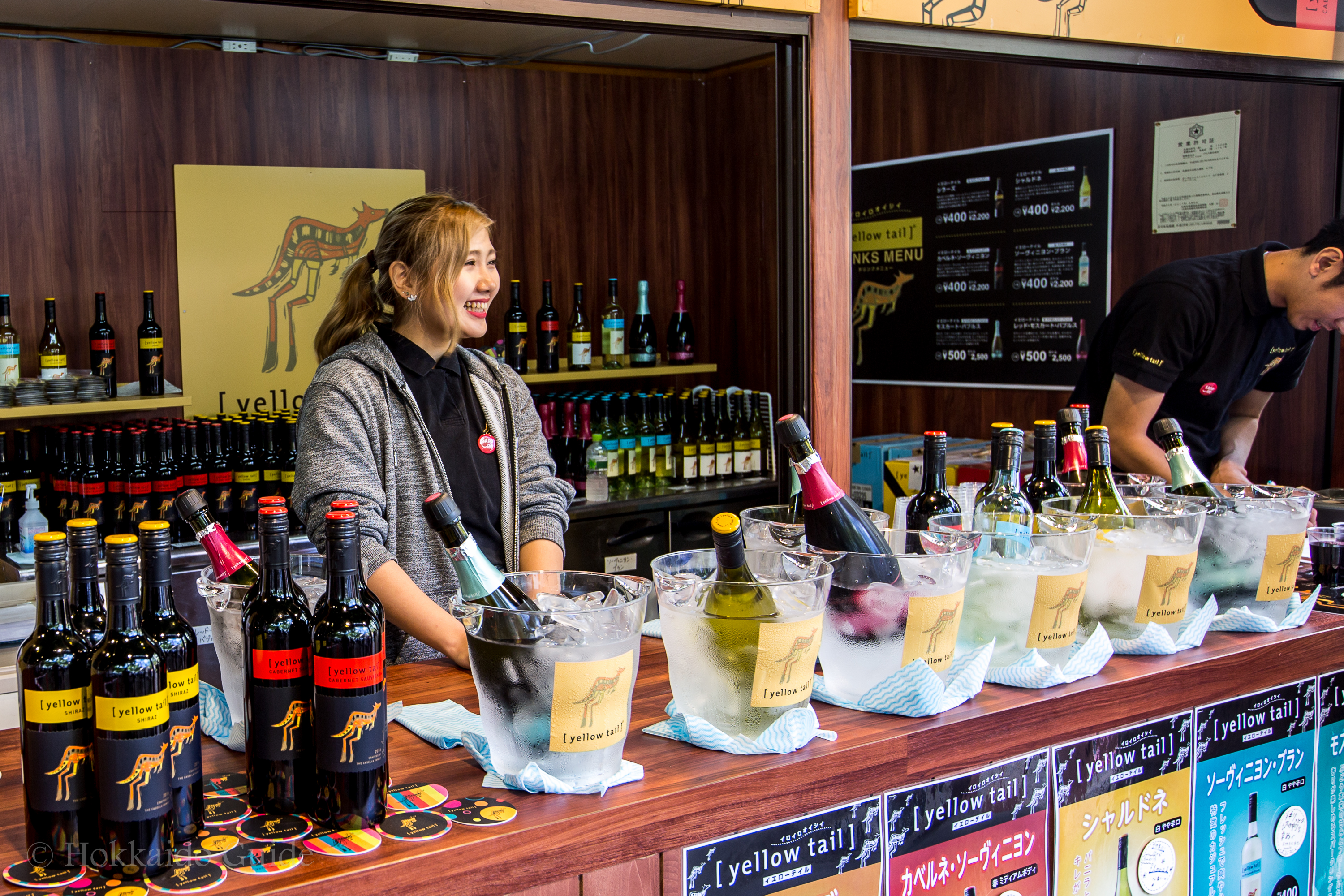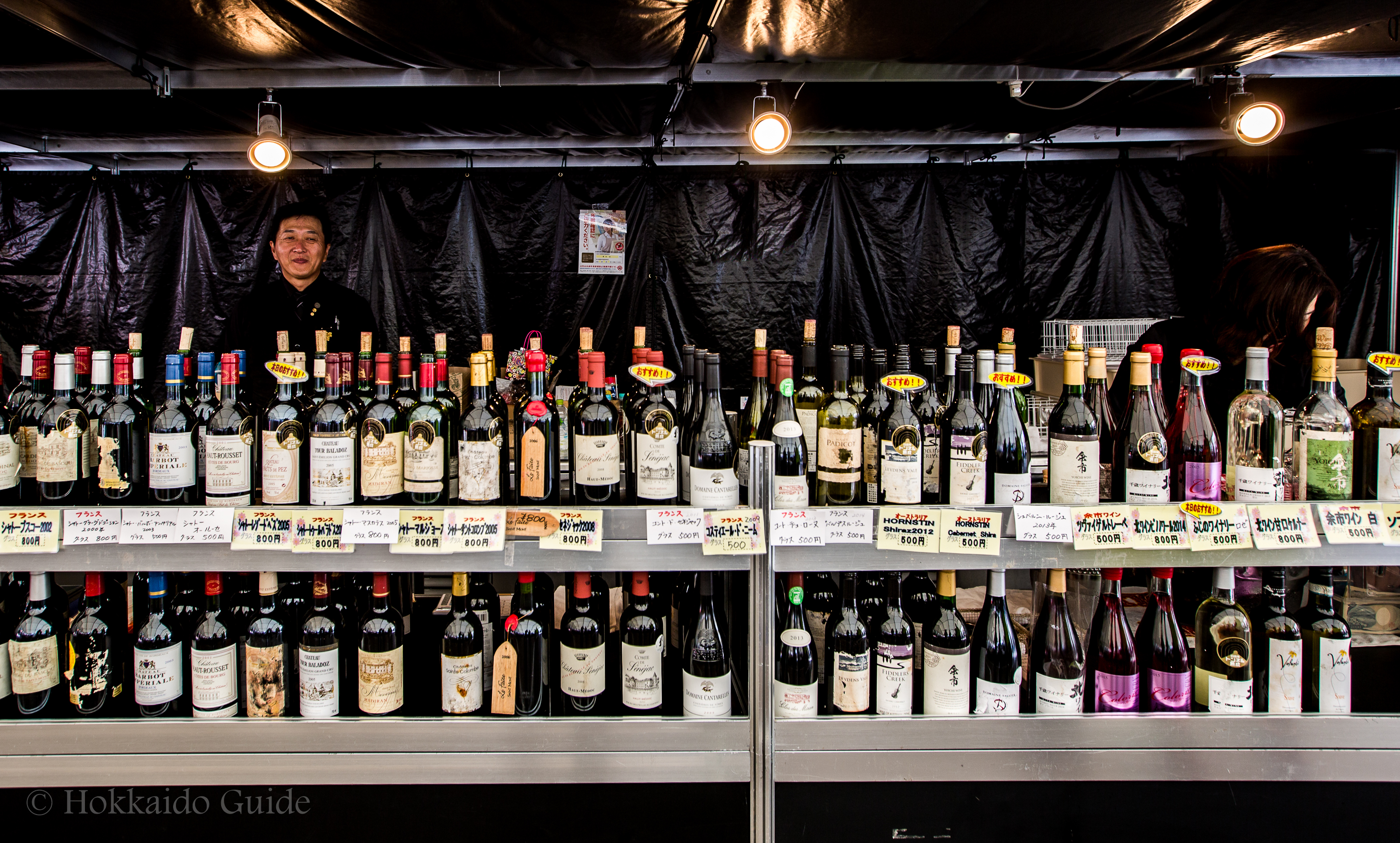 Smack in the middle of this festival is the very popular 7 chome site. Recognizable by the myriad of black tents circling the middle of the block, this site is where the wine flows! Hokkaido’s wineries are set up here so you can sample not only local wines, but also overseas wines which are very popular. In addition to the wine stalls, shochu and whiskey stores are also here. This block also gives you the opportunity to partake of some delicious cheeses, or grilled oysters. A perfect compliment to the wine…or whiskey!