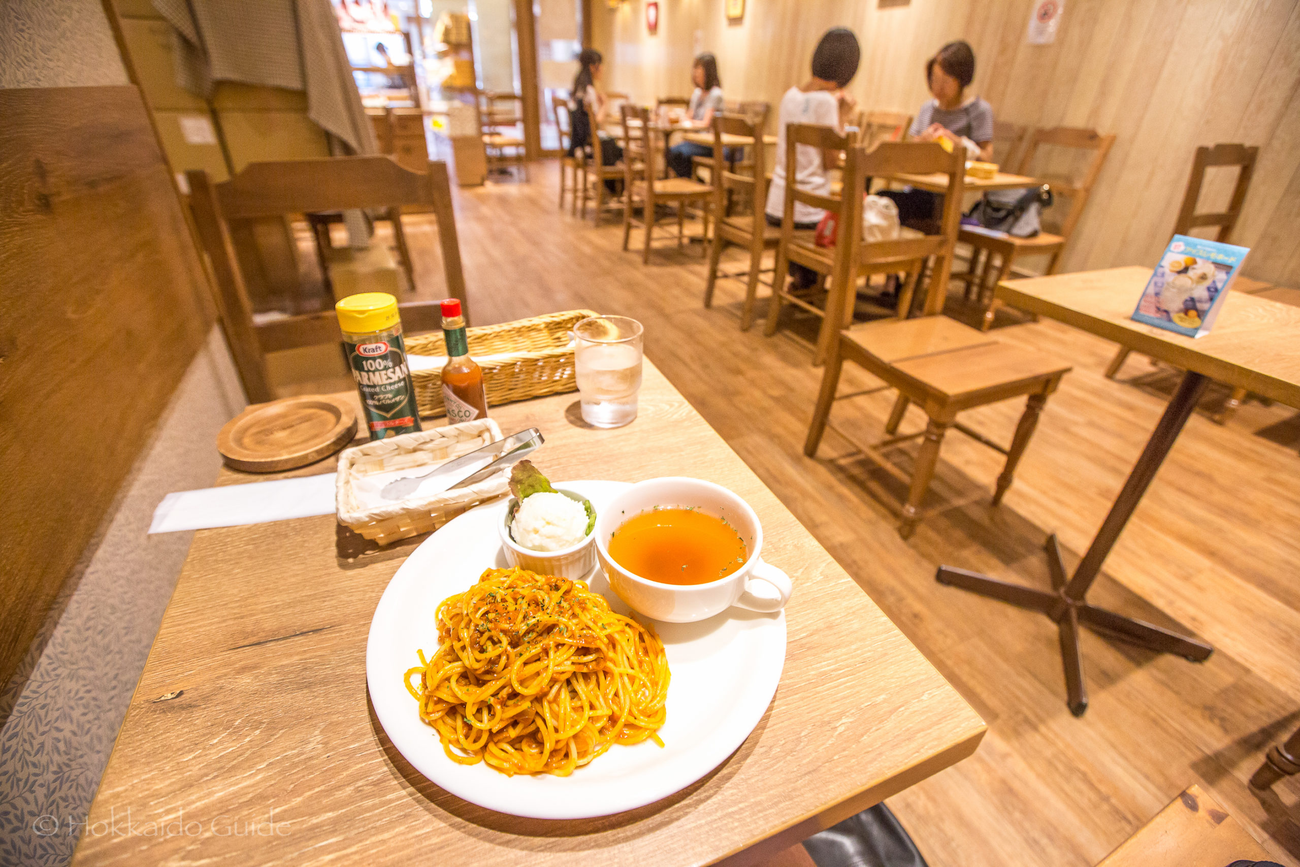 Aunt Stella’s has an impressive chain of sixty stores around Japan. There is only one in Hokkaido and that happens to be right by Sapporo station. Here you can get a nice lunch or an equally good cookie! At this restaurant they have some very nice pasta lunch dishes. You can get a coffee and a cookie of your choice as part of the set. But the main attraction at this store is of course the cookies. There are over a dozen handmade cookies that can be eaten in store or taken home. Simply take your pick and then you can order a beverage to sit down and enjoy a nice coffee or tea with a friend.