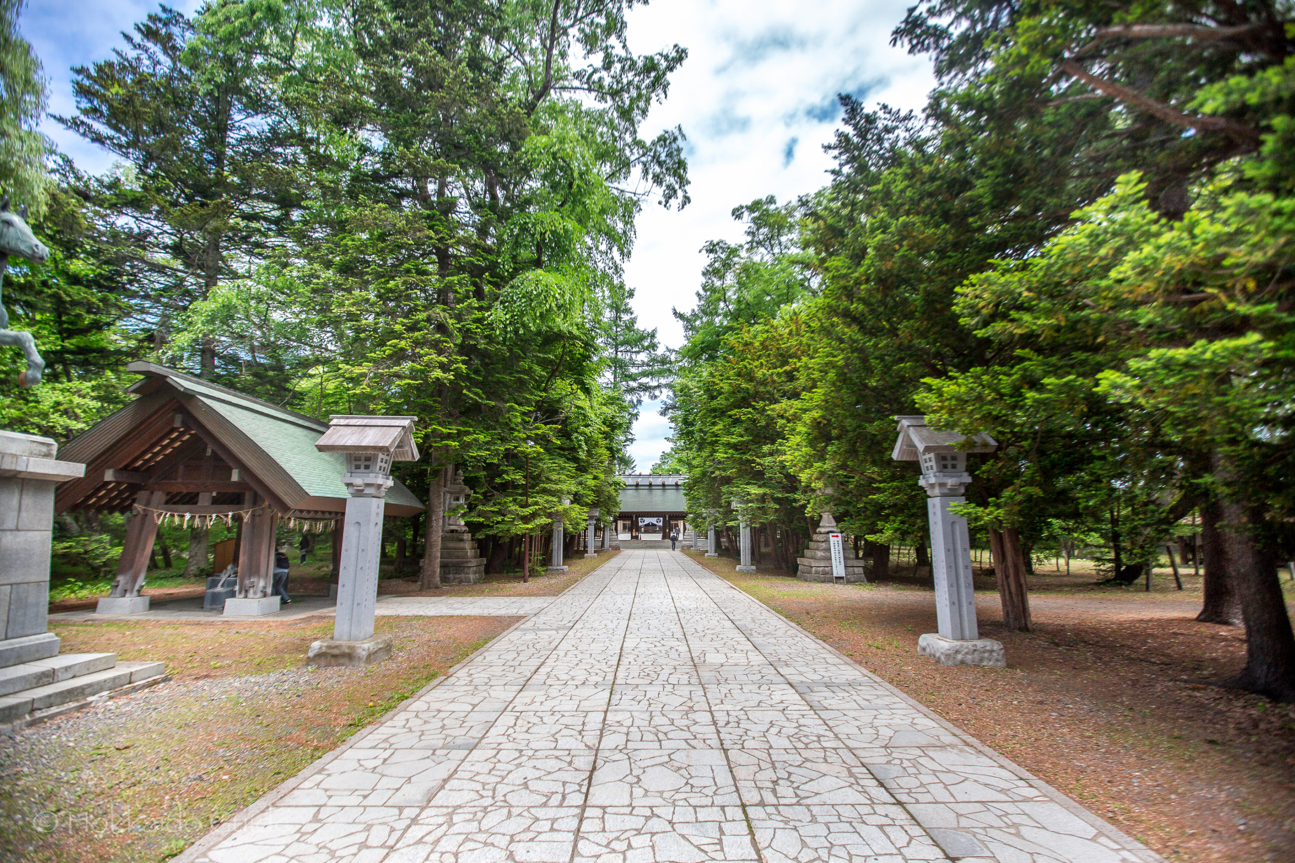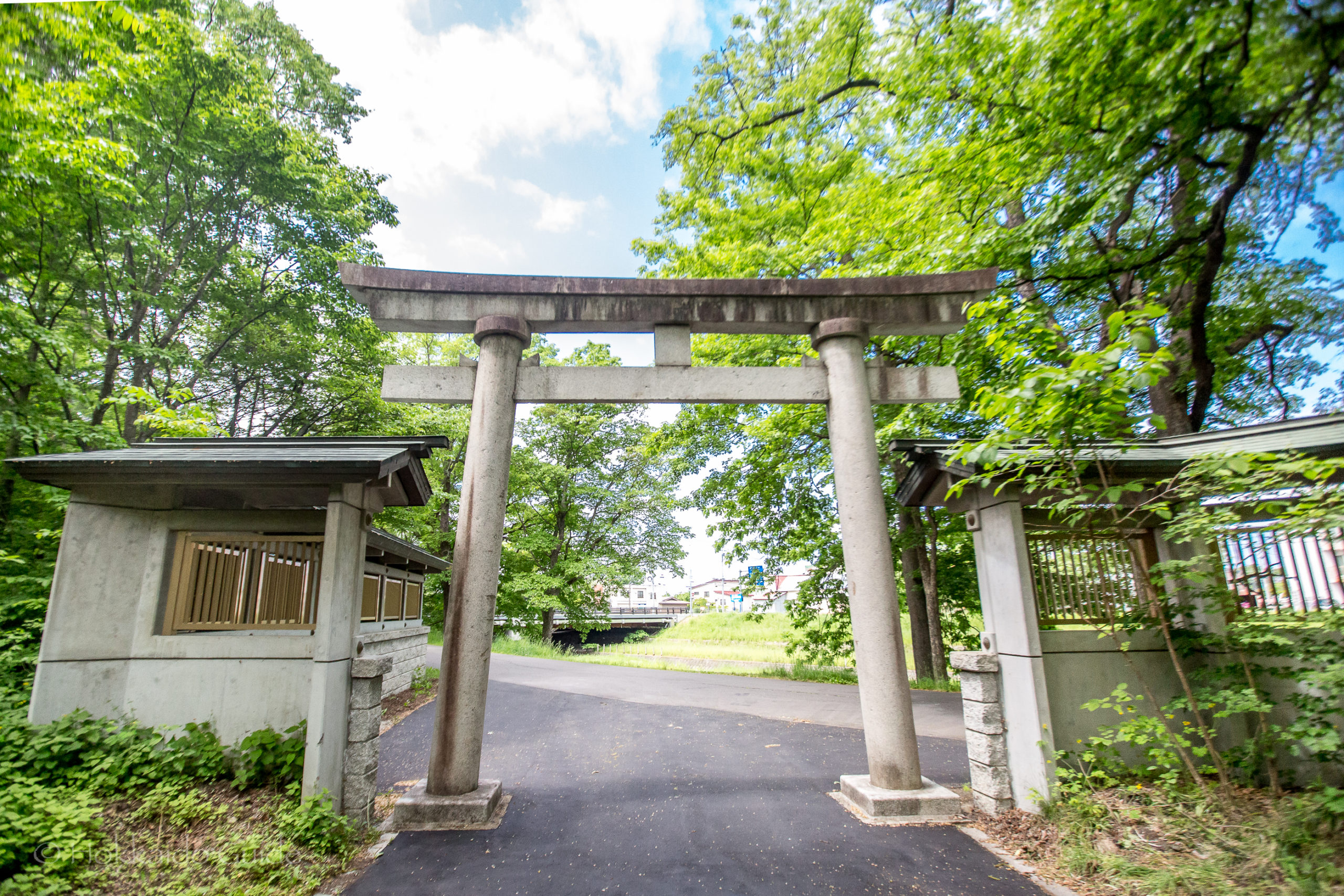 The shrine is a 24 minute walk north from Obihiro station, or a 7 minute drive by car. Obihiro Shrine is right by Obihiro river, and is accessed via route 38. East 2 South 2.