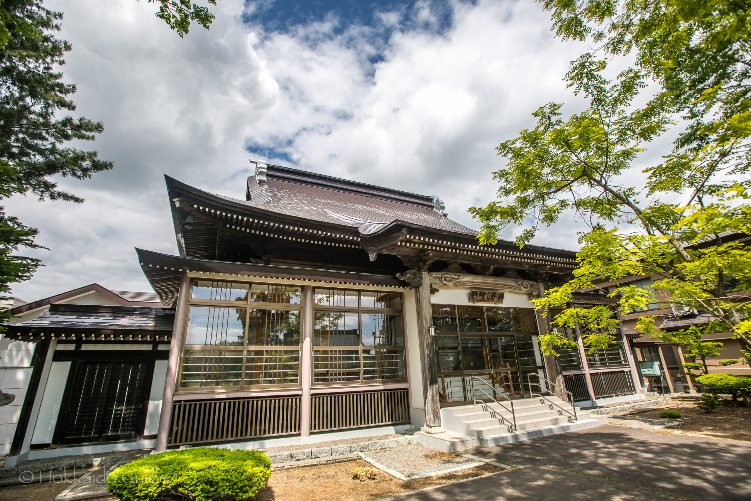 Shohoji Temple is a quite a large Buddhist temple in a small town in the Shinhidaka area. It has a large main shrine with a few outer buildings creating a nice courtyard. It is in this courtyard there are numerous small gardens. These gardens and rock gardens are well cared for and have a distinct Japanese quality to them. There are some beautiful flowers that are in bloom throughout the warmer months. It is also in this courtyard you can find a small parking area.