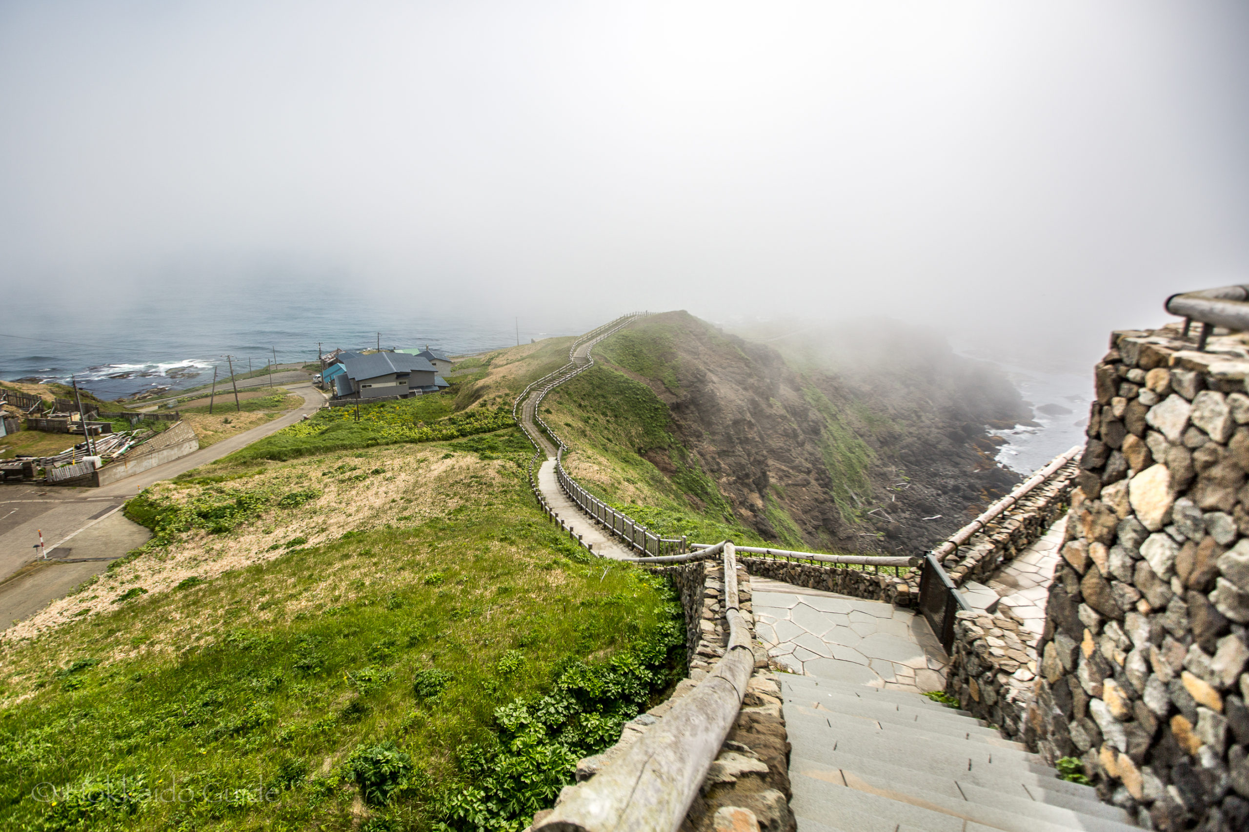 There is a walking trail down to the bottom of the cliffs. Here you can see Erimo Shrine which was built in 1814 to enshrine the god of food and safety. Also, down by the shrine you can observe the fisherman who collect seaweed from the beautiful, deep blue waters. It is possible to take a tour on one of the boats. Other points of interest include the Cape Erimo Lighthouse plus the observation deck and wind museum. Near the large parking area, you can find a souvenir store and a seafood restaurant. This is a fantastic place to wander the paths and enjoy the mist and sea air.