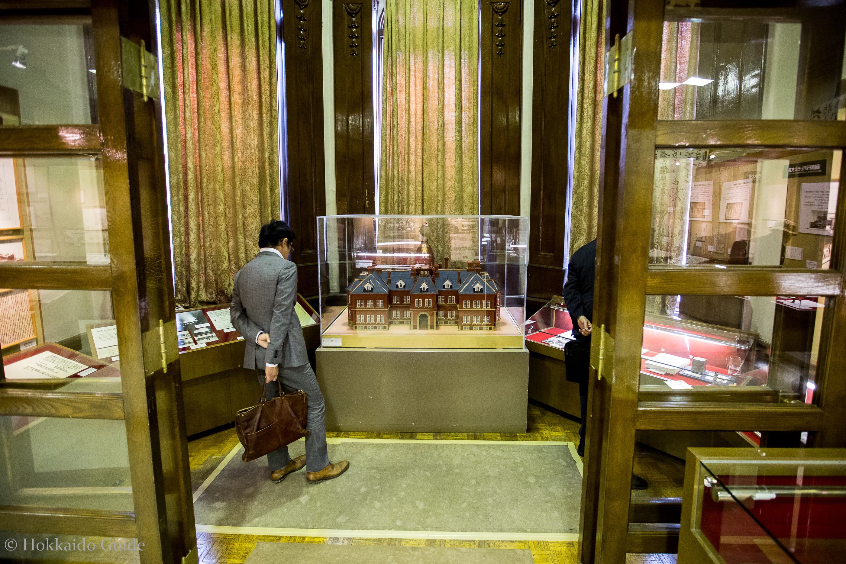 Throughout the building there are 20 paintings inside, which depict historically important scenes in the history of Hokkaido. The paintings are hung in the corridors and exhibition rooms. Most of the windows are double-paned, to keep out the freezing climate of Sapporo. A souvenir shop is also located on the 2nd floor.