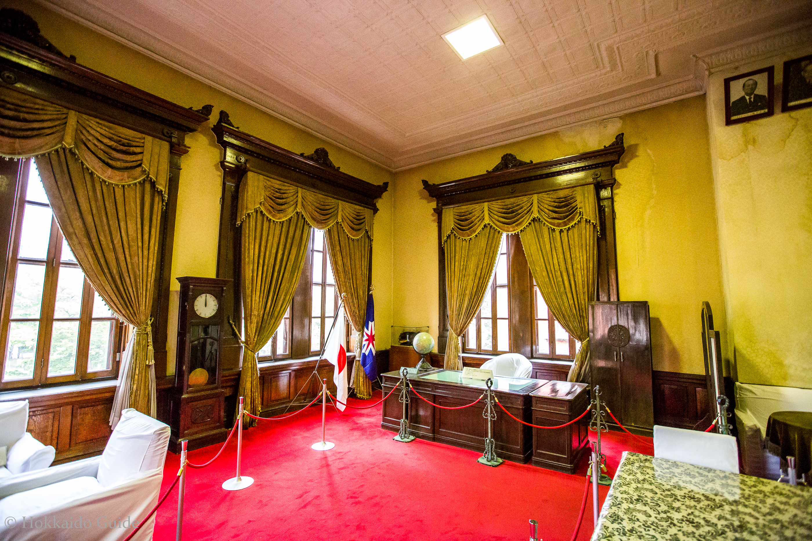 The three-section arch, which is decorated with engravings in Western architecture, is installed in the entrance hall. This is a popular spot for tourists to take photos. The Governor’s former office room is open to the public, and it displays restored room facilities as well as pictures of the successive governors in Hokkaidō. Other rooms are occasionally designated as conference rooms, and many companies and organizations have used these rooms for their meetings.