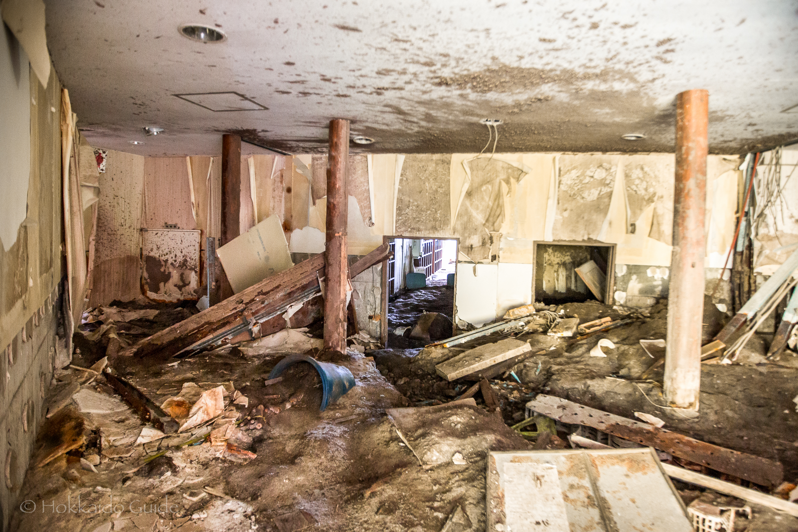 The outcome included the destruction of 234 homes and damage to a further 217. Fortunately, due to the evacuations there were no casualties. These buildings are fascinating to walk around and to peer into past events. In the quiet of the countryside, they serve as a spooky reminder to the power of mother nature. The path to the building ruins is easy to follow and it is recommended to follow it further up to the Ari-kun crater. Since the eruption, safeguards have been put in place to help protect the Toya Hot Spring district, including sandbanks plus steel barriers. These can be seen along the way.