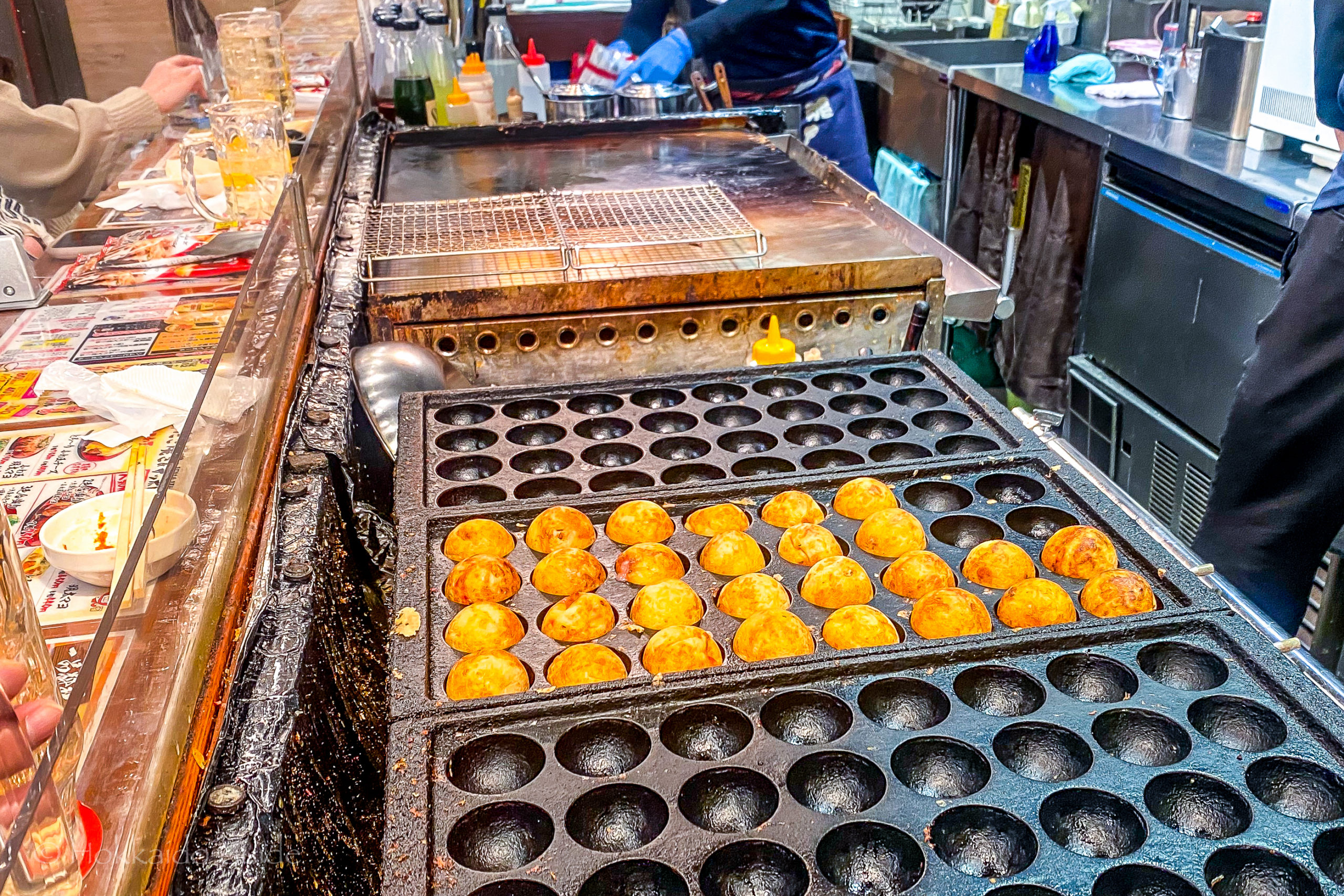 Tako Highball comprises of two very popular dining experiences in Japan. The first is the delicious takoyaki dish. Takoyaki is a ball shaped dish made from batter and filled with minced or diced octopus, tempura, ginger, and green onion. These dishes are served with highballs. A highball is a hugely popular drink in Hokkaido. It is whiskey and soda served on ice in a large pint glass. So, hence the name Tako Highball, this is a great restaurant to find both. The takoyaki dishes are so delicious here!