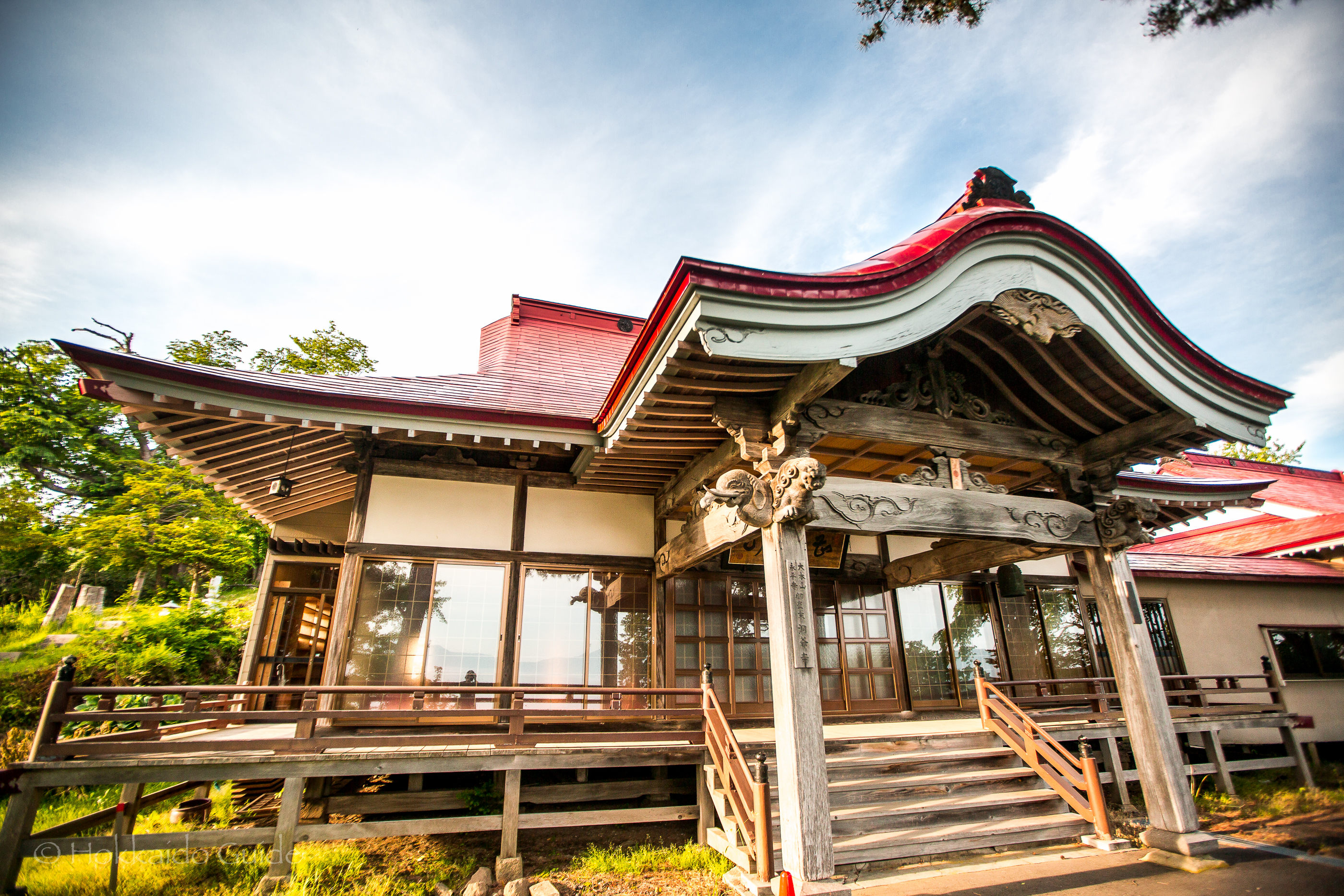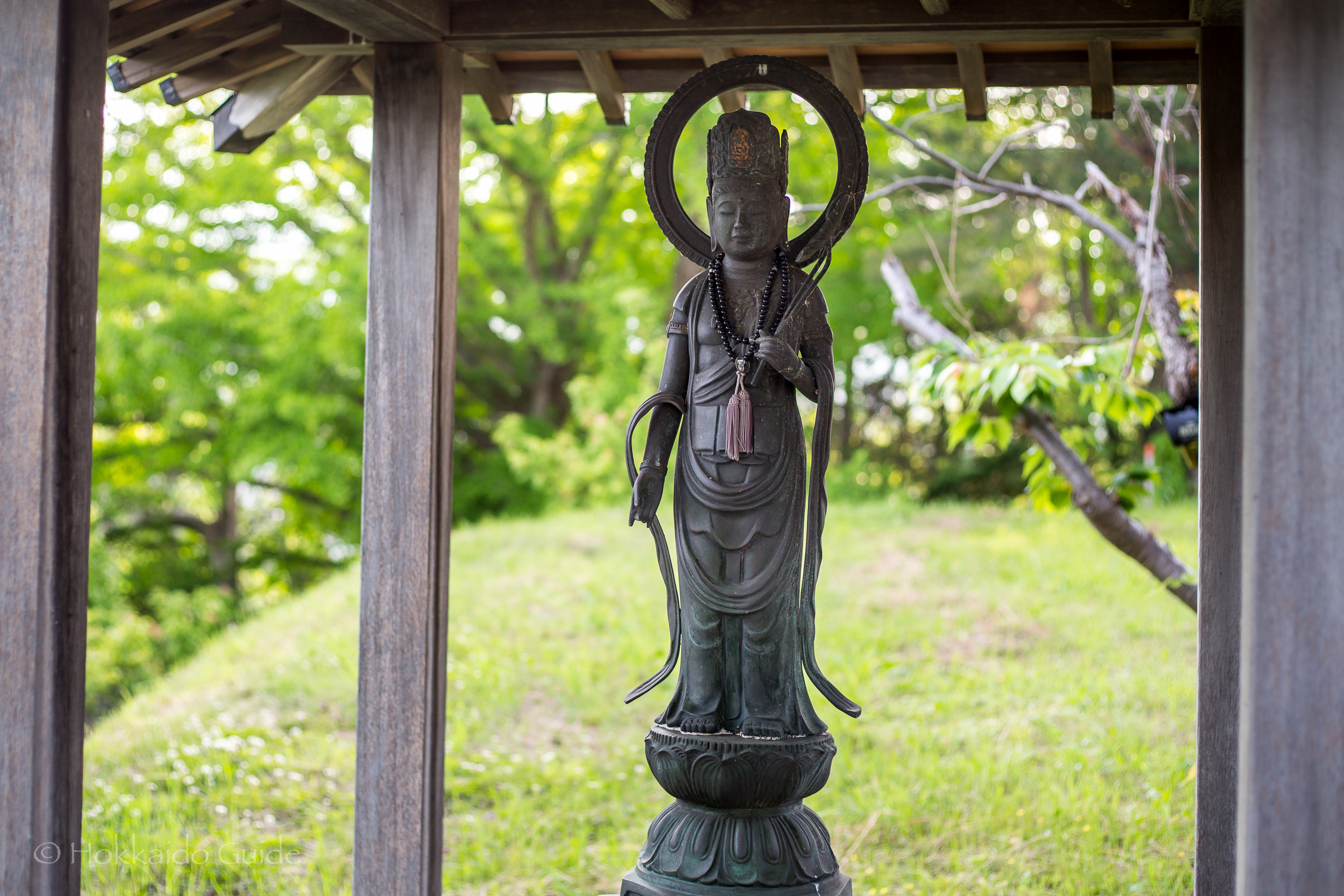 On the northern shore of Lake Toya you can find Toya Temple and a scenic monument of Hokkaido. They are both just off route 132 and there is a road leading up where you can find parking. Toya Temple is a Shinto shrine that offers scenic views over the lake. The public are welcome to walk around the small grounds here where you can appreciate the statues, architecture, and wooden carvings that surround the temple. The doors to the temple itself are often closed but it’s still a nice area to check out. The temple makes for a nice look in if you are taking a stroll around the path that follows the shore.