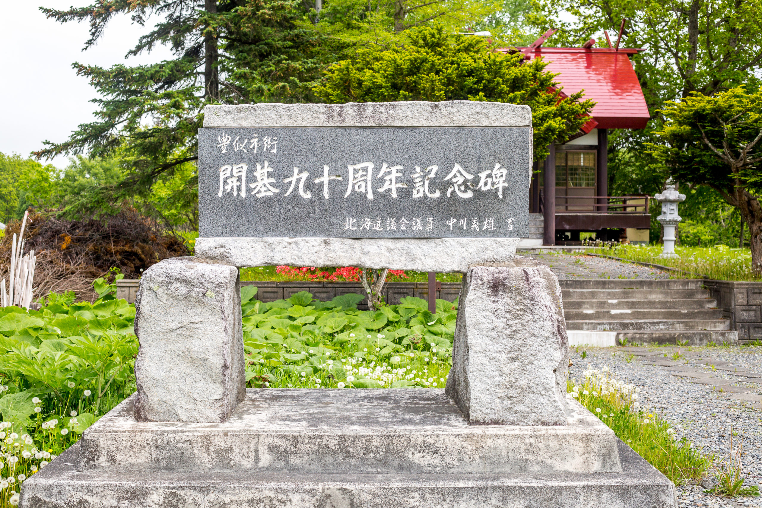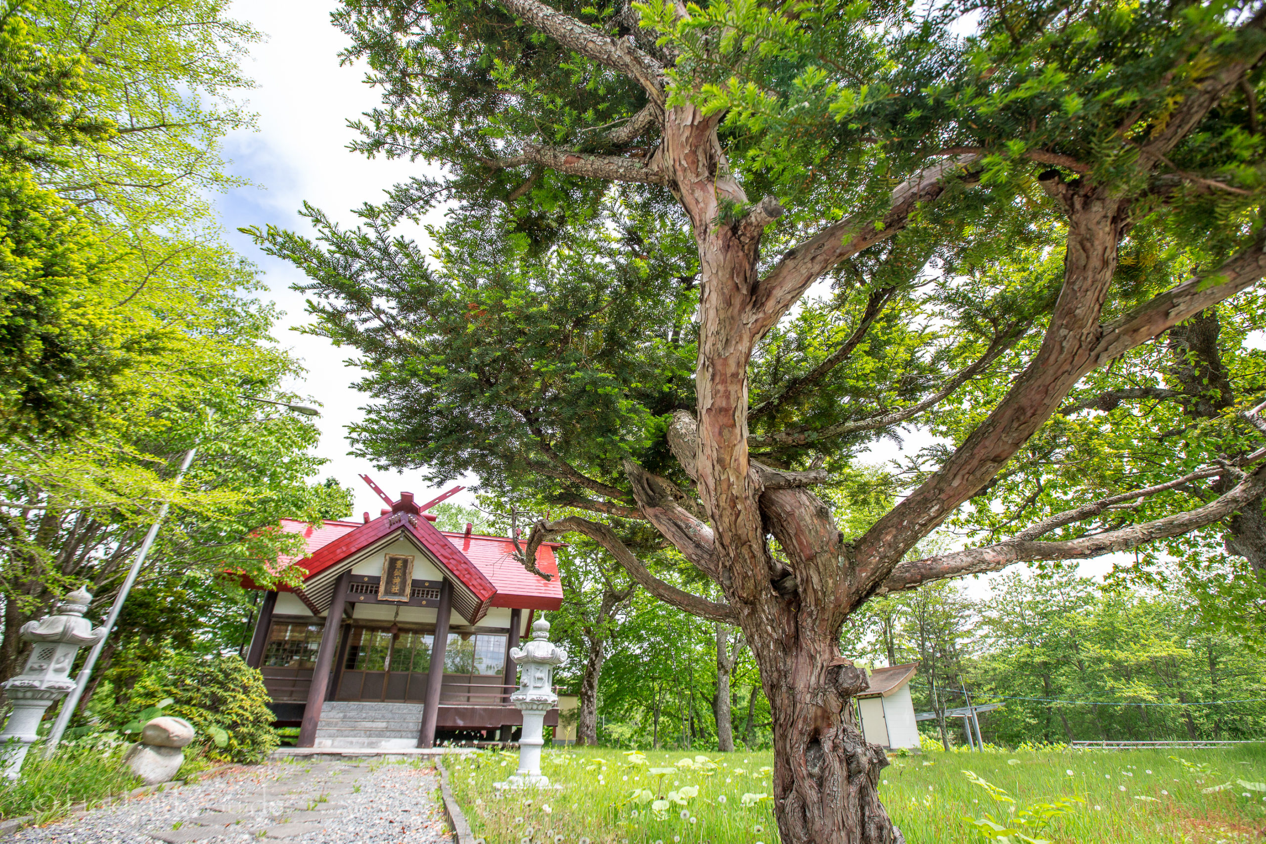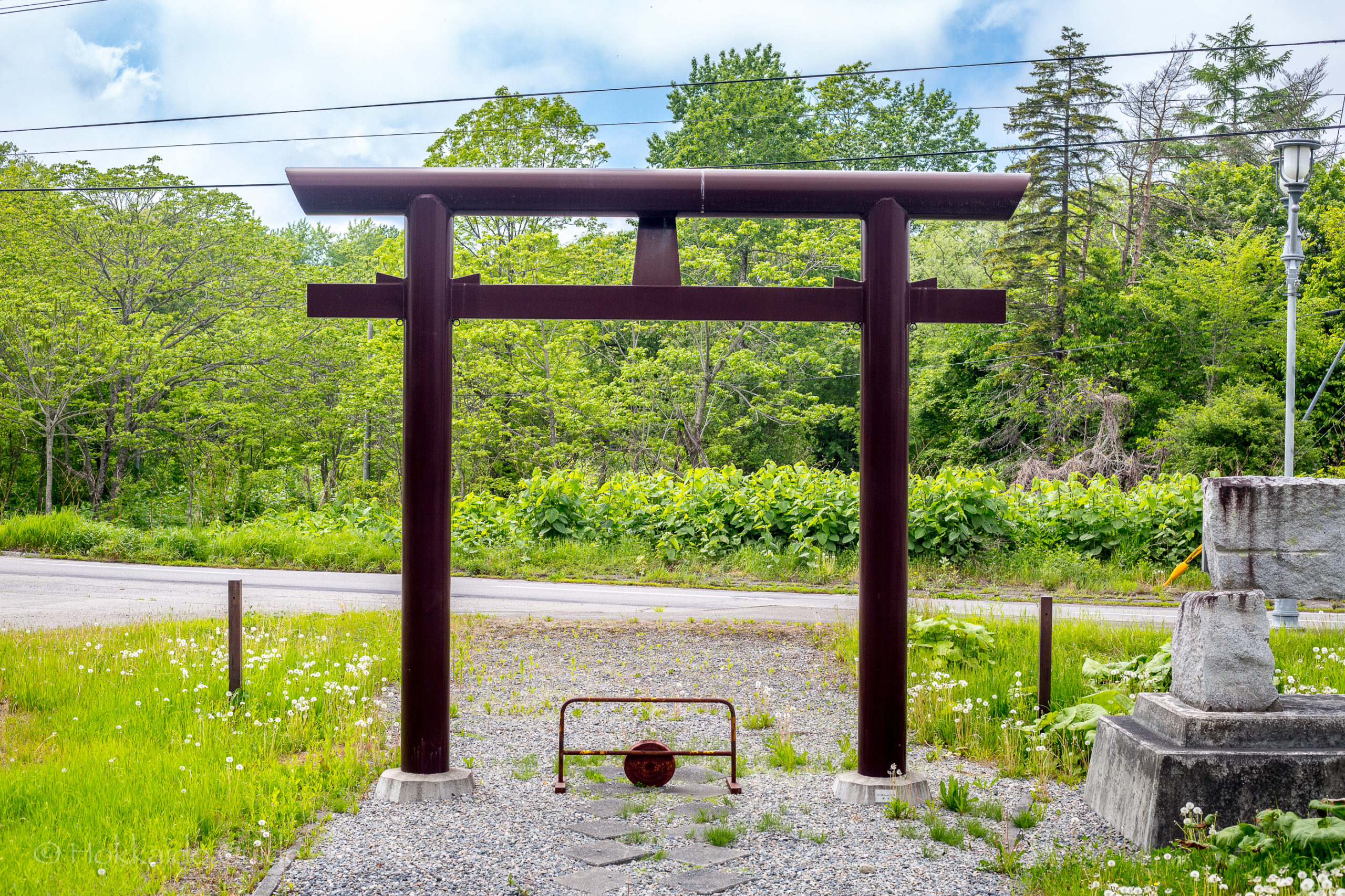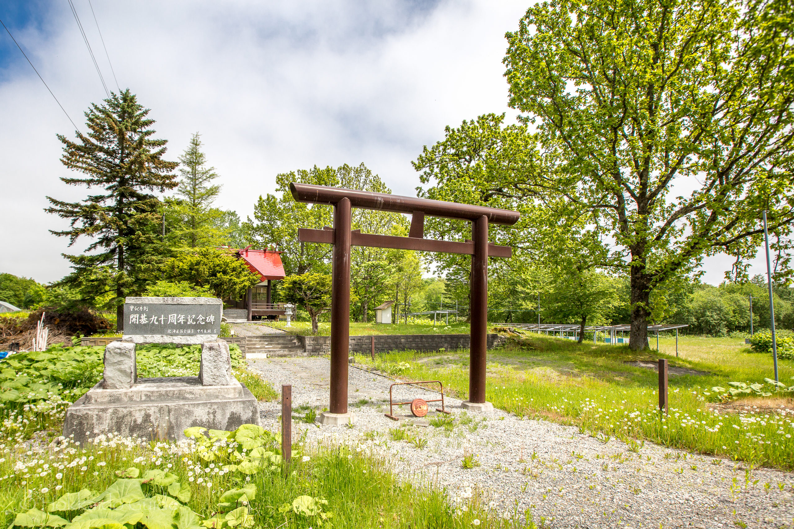 The shrine is just off route 336, and it can easily be seen from this road, especially if you are driving from Hiroo to Obihiro. Obihiro being an hour drive away from the coast. It is just before the small town of Toyoni. There isn’t any parking but there is a drive way and grassland where you can stop. The grounds are quite nice in the summer months, and there are gardens and wild flowers growing around the area. This is a small shrine with 125 households as parishioners. The shrine is 11.5 tsubo.