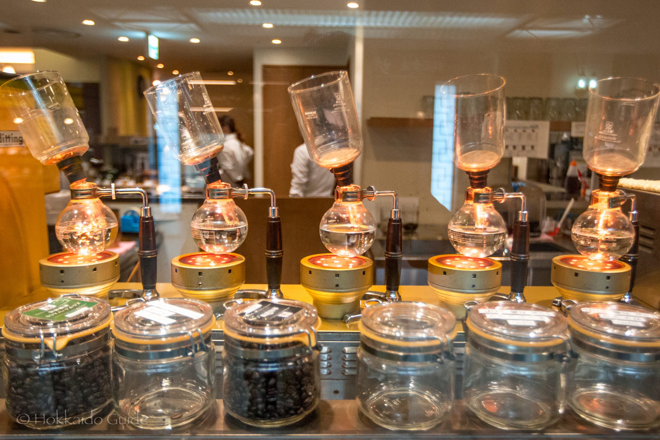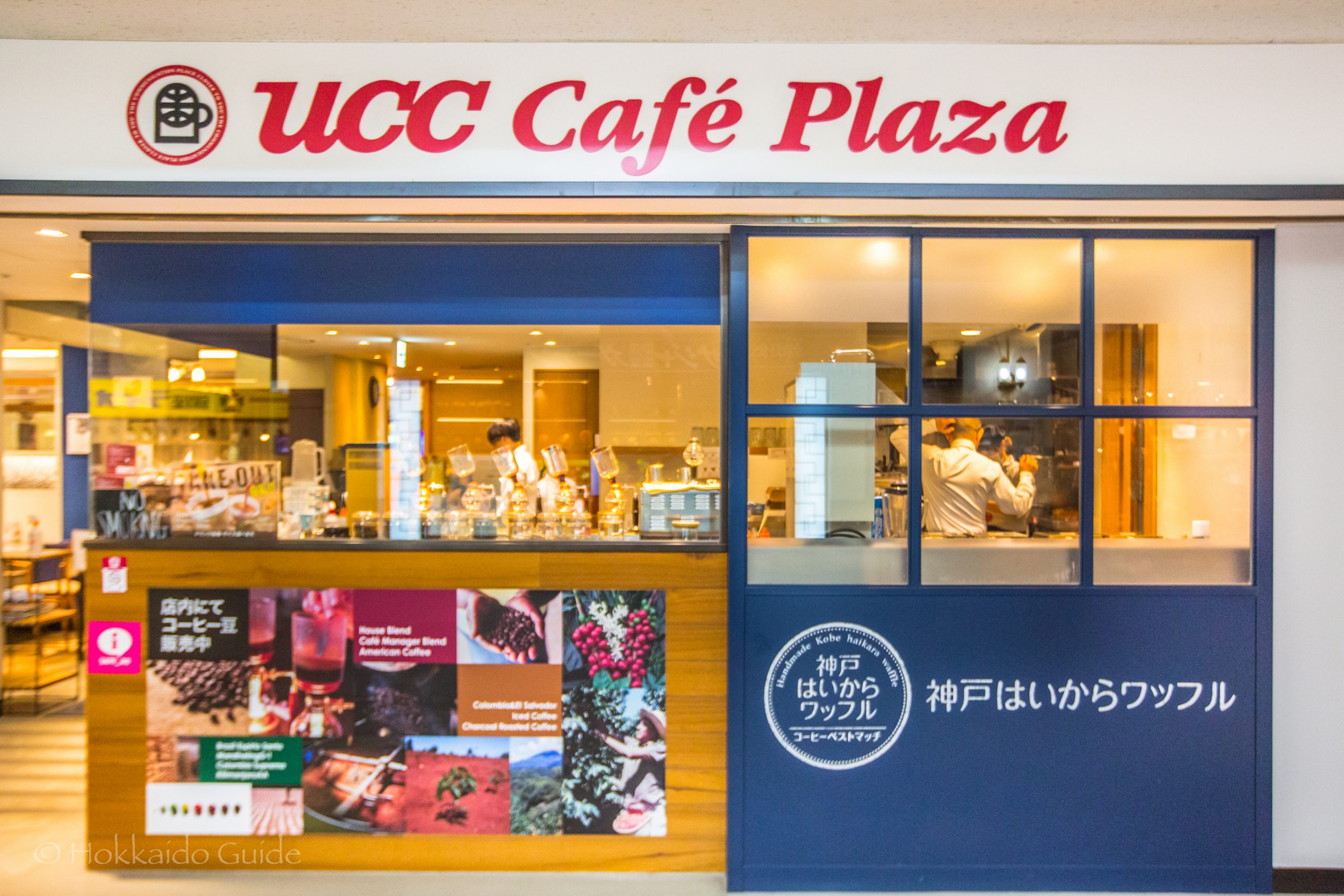 The UCC Cafe Plaza is a pleasant ding & cafe restaurant in Sapporo. It is one of many restaurants that line the underground shopping walkway, Aurora Town. Aurora Town can be found running directly underneath Odori Park in the middle of town. The cafe is a good spot to enjoy a fresh coffee, or a very affordable lunch, or both! They also have some delicious desserts as well. Why not try one of their signature waffles. UCC Cafe Plaza uses the siphon method for brewing their coffee, which delivers an aromatic and flavorful cup of coffee. Their drip method can be seen as you enter the cafe.